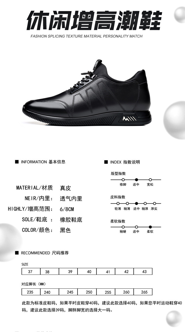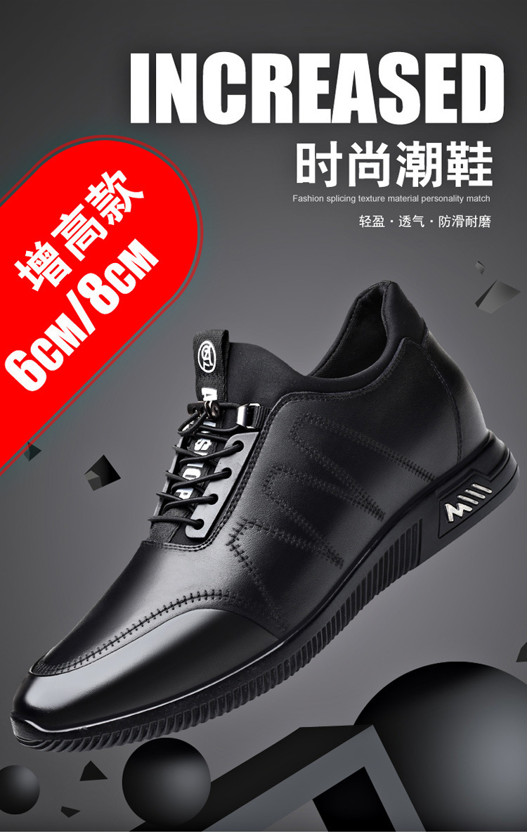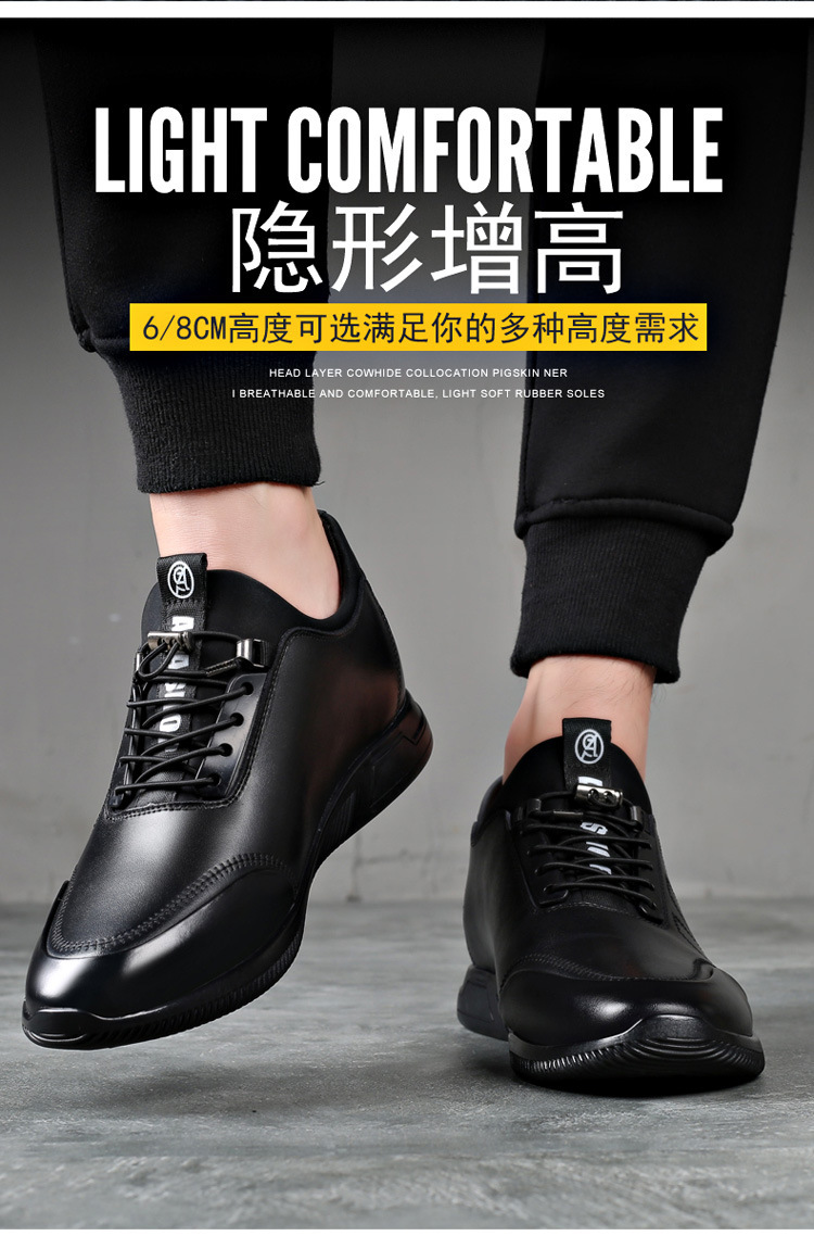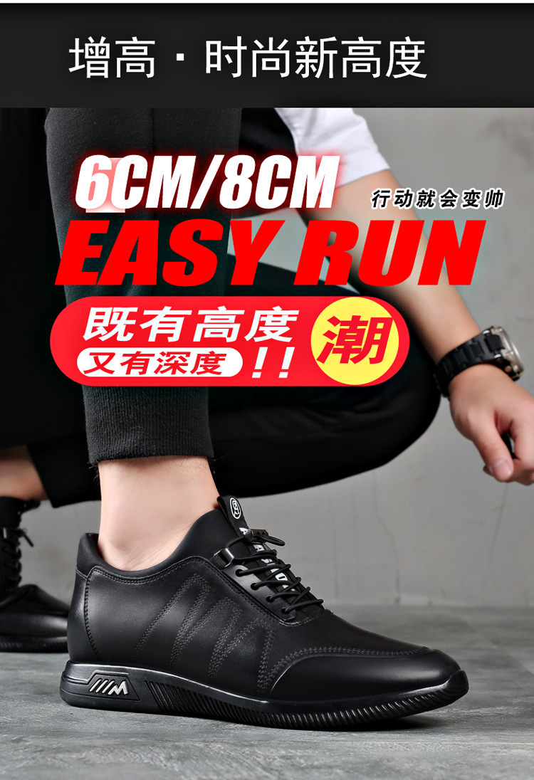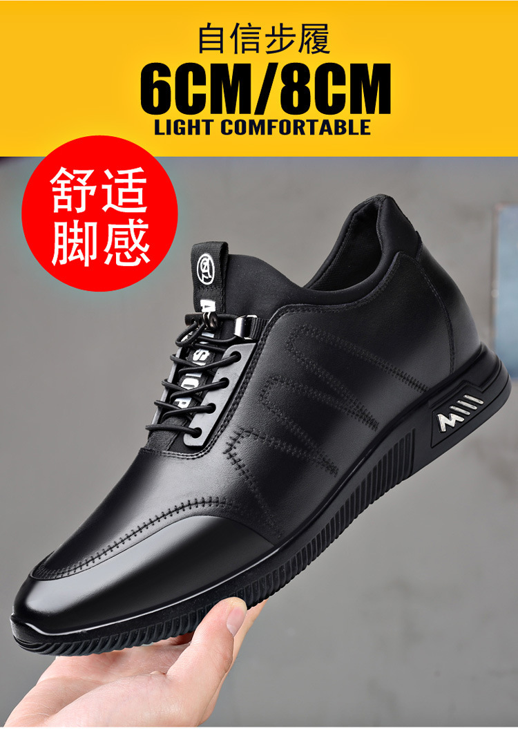 男鞋2024新款男休闲8cm隐形内增高男鞋韩版潮流鞋子增高6厘米皮鞋