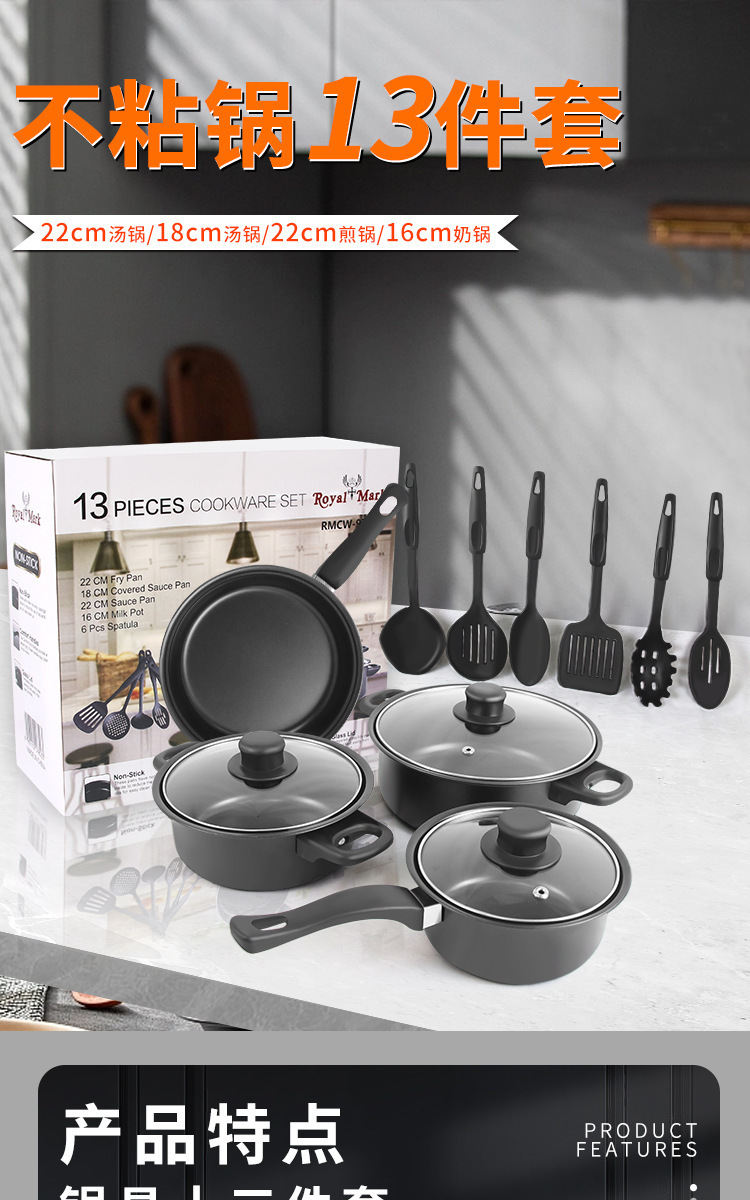 대외 무역 13 조각 세트 냄비 다기능 수프 냄비 우유 팬 프라이팬 멀티 피스 세트 조합 냄비 멀티 피스 세트 대외 무역 냄비