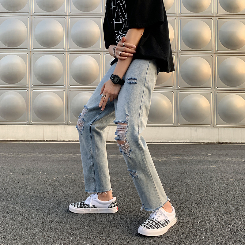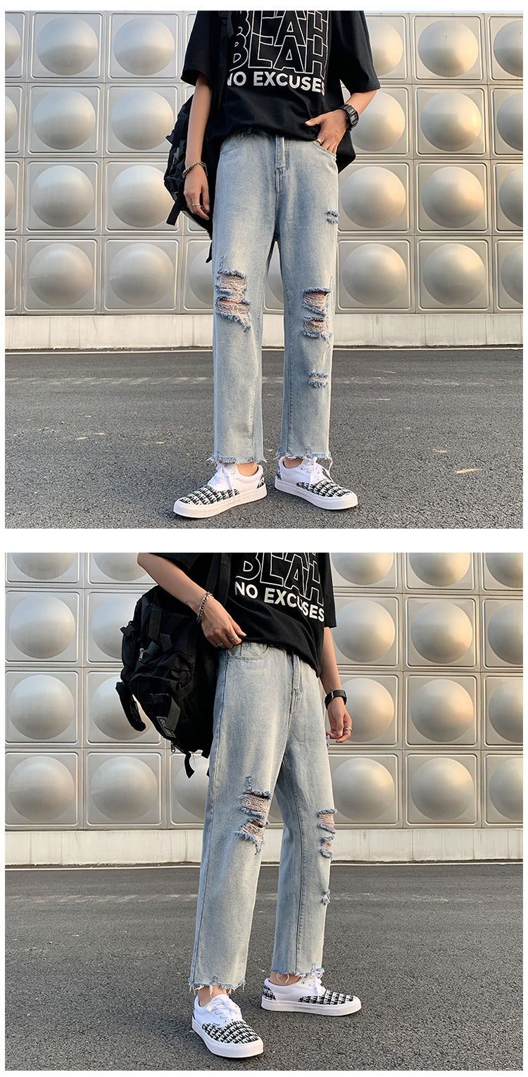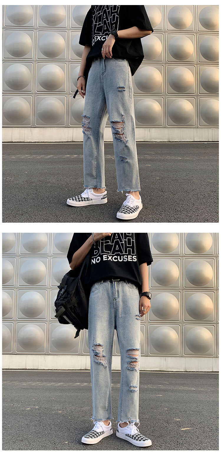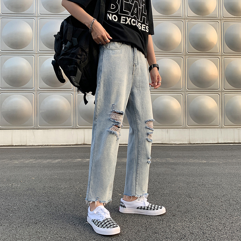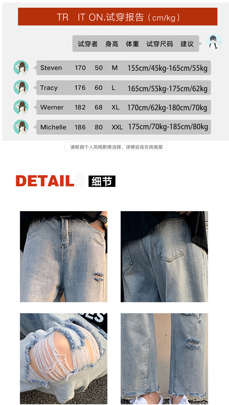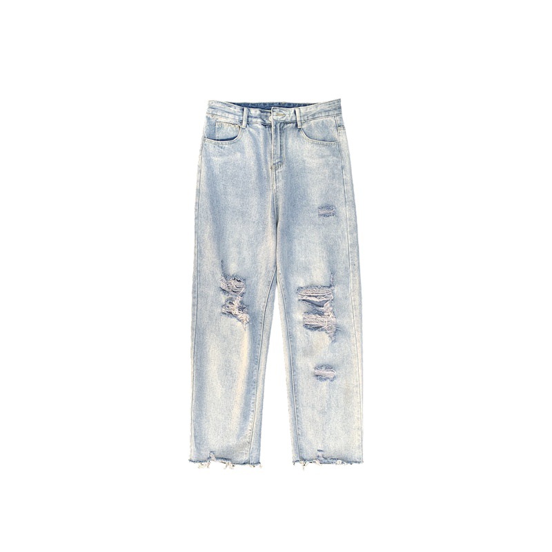 레트로 찢어진 루즈 청바지 남성용 루즈 스트레이트 와이드 레그 2024 여름 프라이드 스트리트 디자인 킵 거지 바지