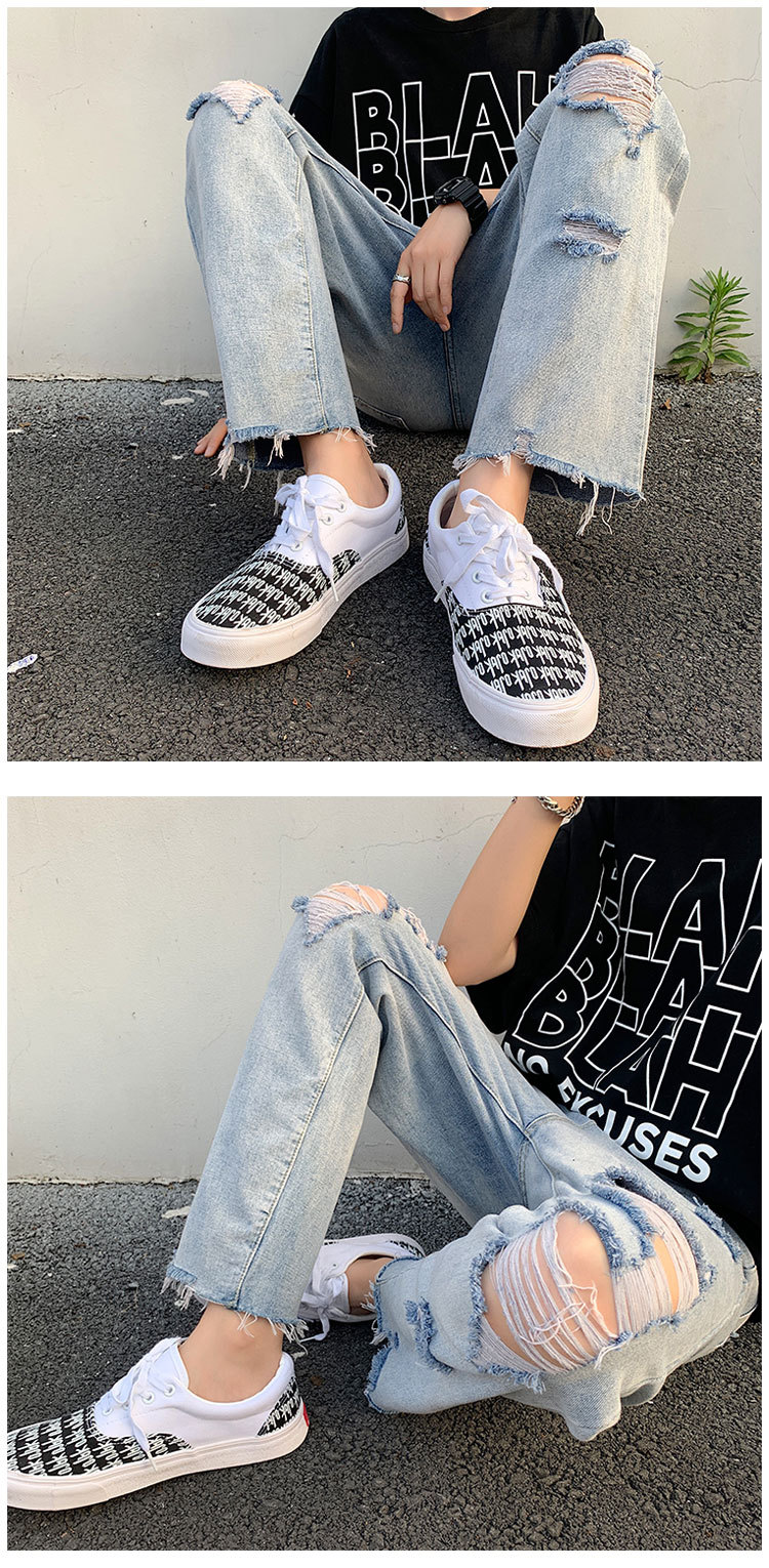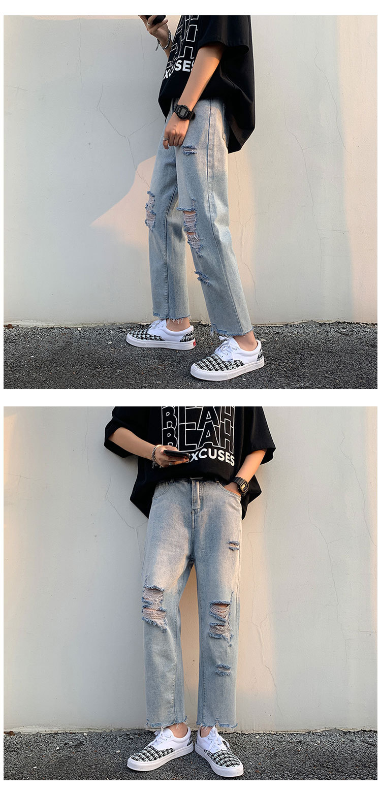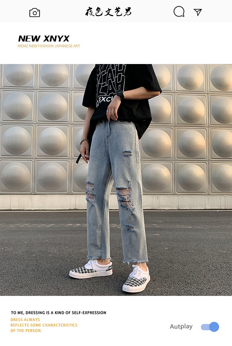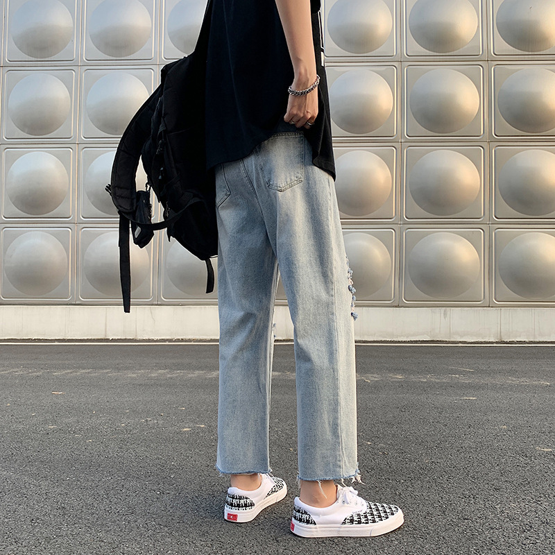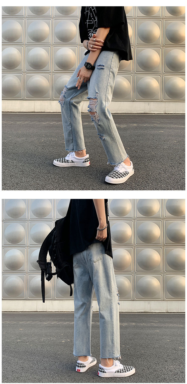 레트로 찢어진 루즈 청바지 남성용 루즈 스트레이트 와이드 레그 2024 여름 프라이드 스트리트 디자인 킵 거지 바지