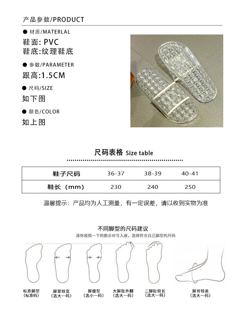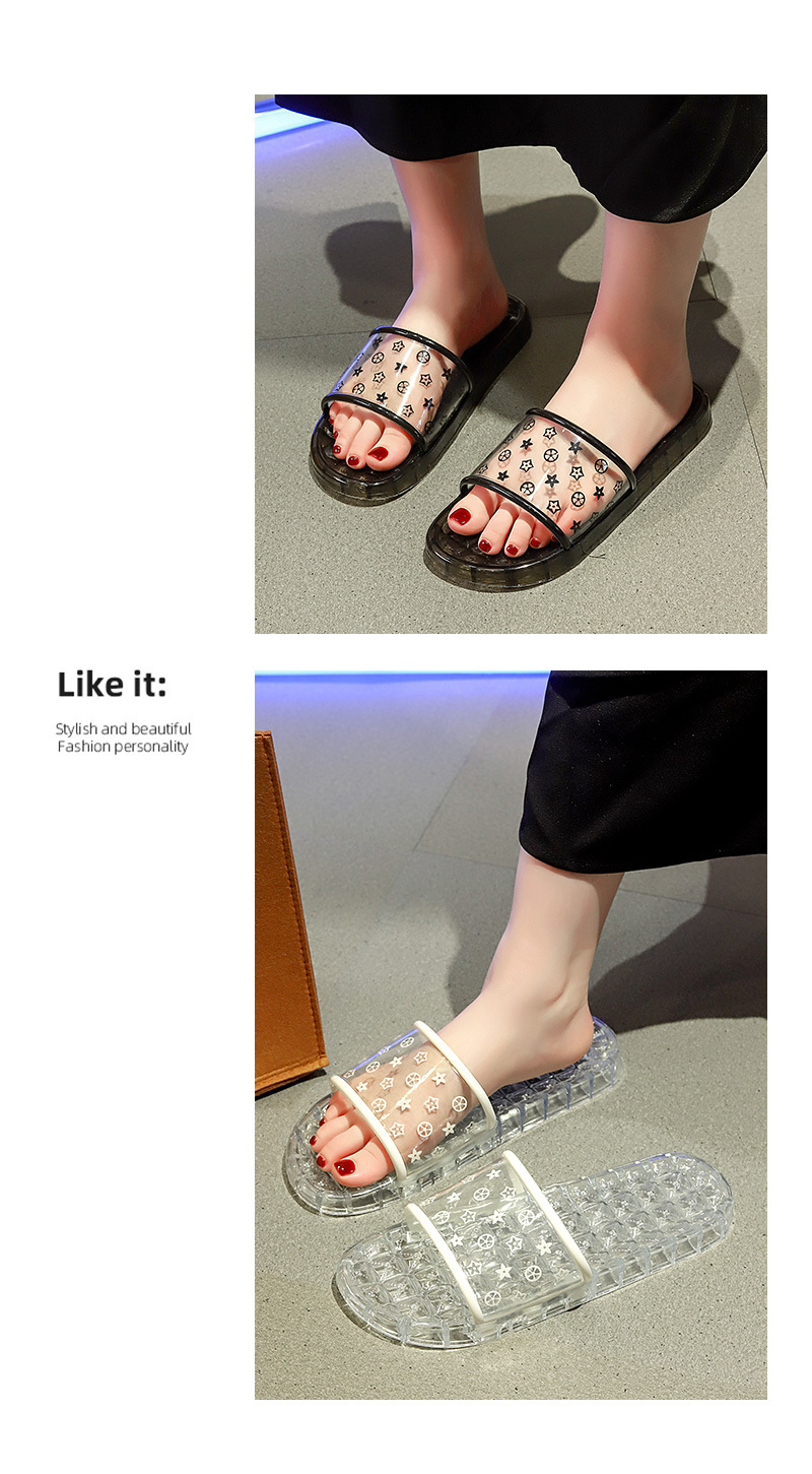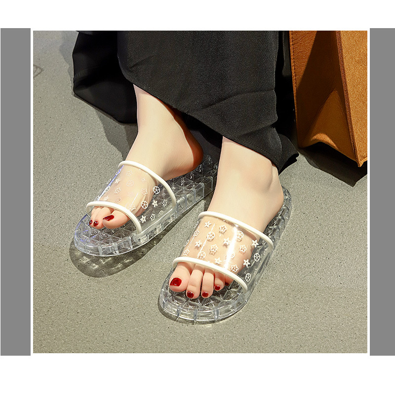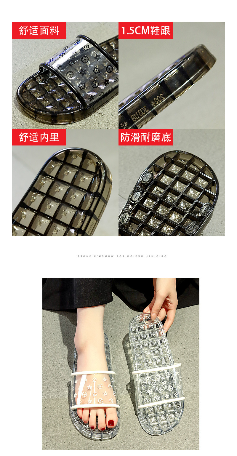 2024 새로운 여성 투명 크리스탈 슬리퍼 여름 패션 한국 미끄럼 방지 홈 슬리퍼 도매