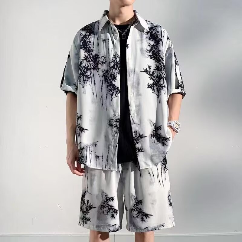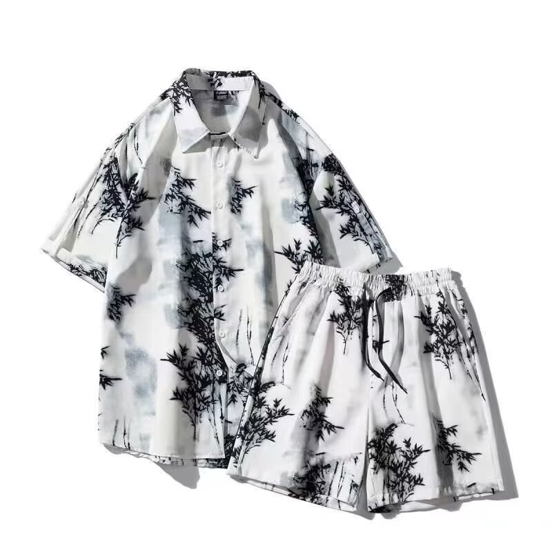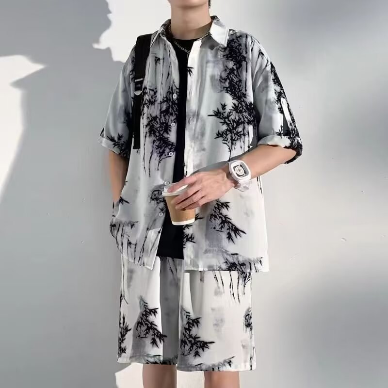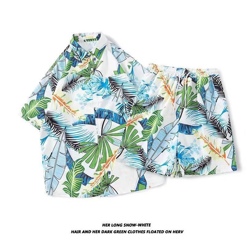 여름 해변 세트 남자의 반팔 남자의 빠른 건조 옷 해변 여행 커플 여름 얇은 반바지 착용
