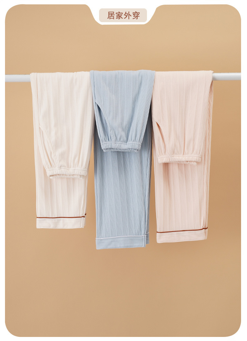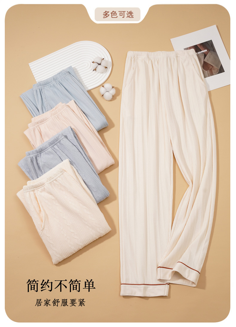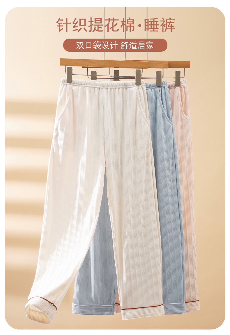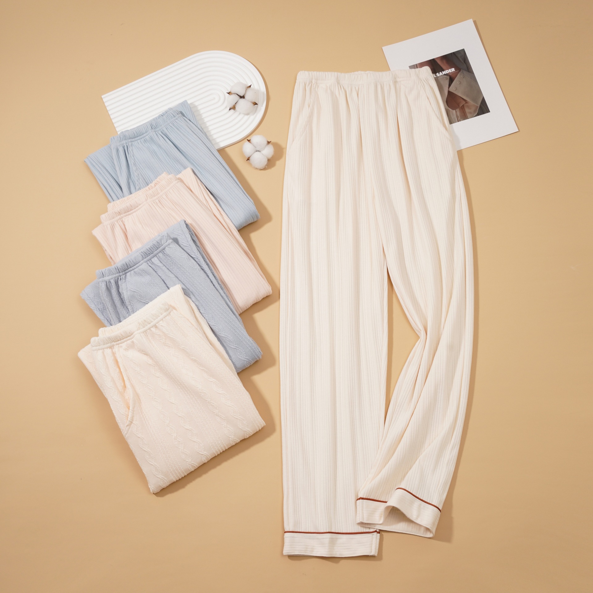 더블 포켓 파자마 바지 여성 바지 봄과 가을 홈 바지 외부에 착용 가능한 새로운 여름 얇은 간단한 자카드 코튼 워킹 바지