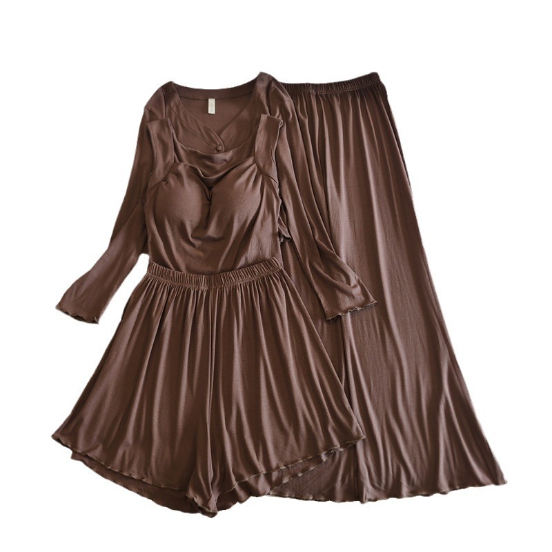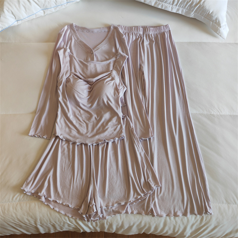 가슴 패드와 여성 잠옷 사계절 얇은 인터넷 인기 달콤한 순수한 바람 봄 여름 가을 겨울 모달 슬링 홈 옷