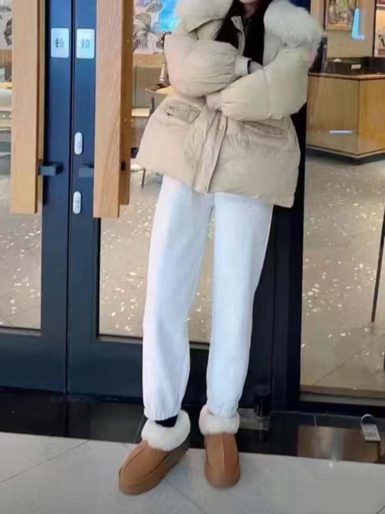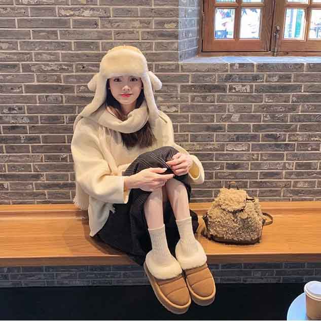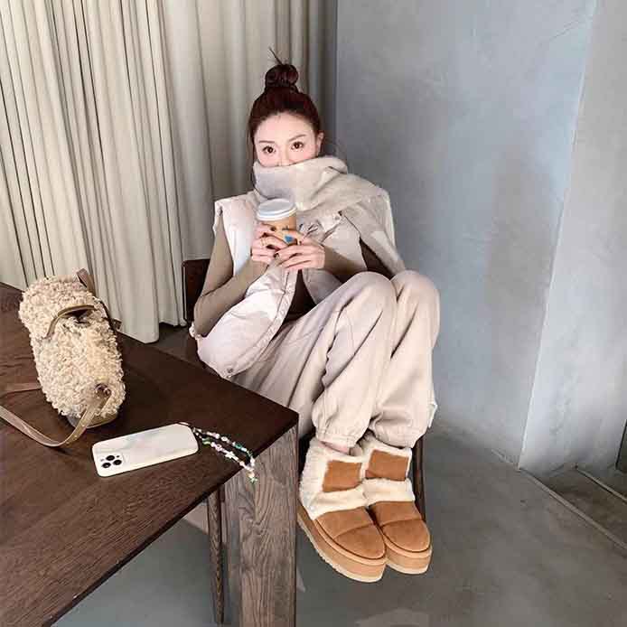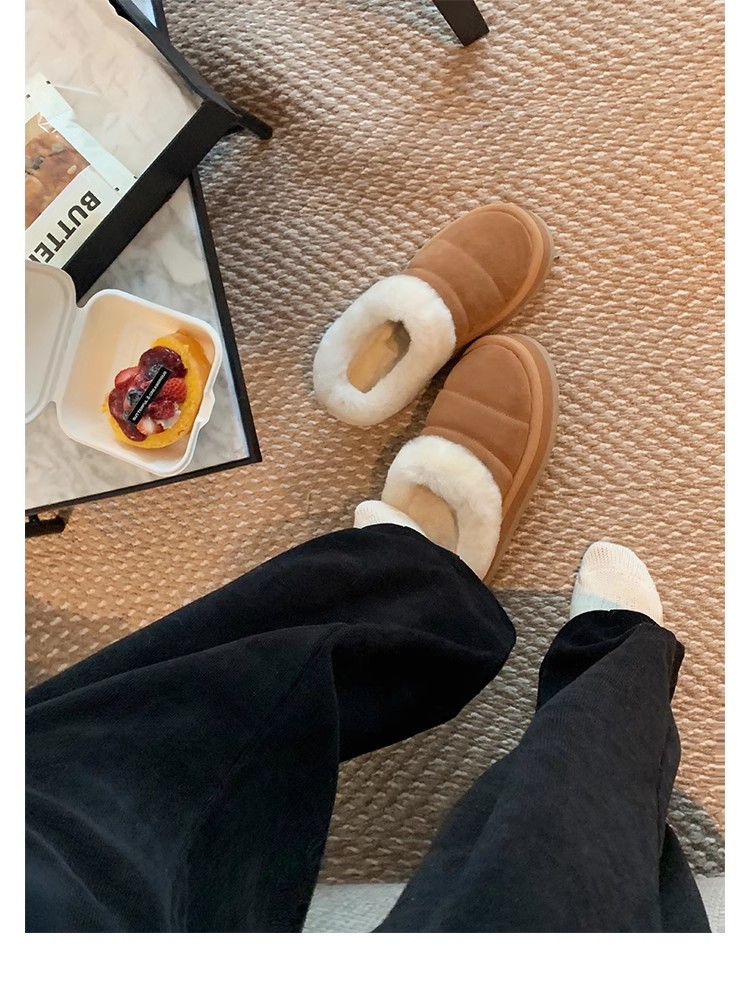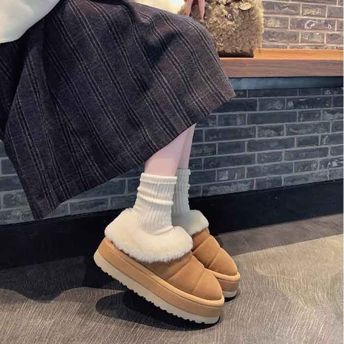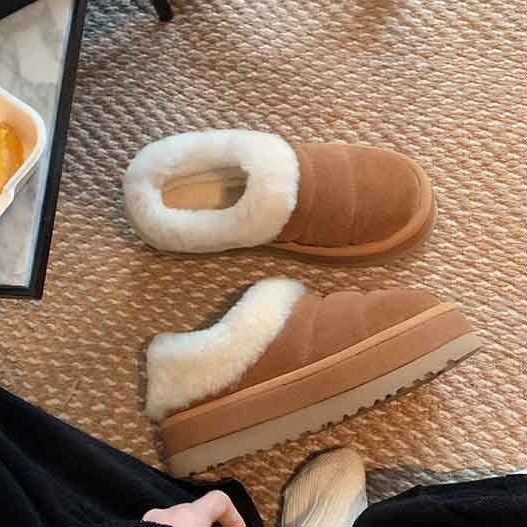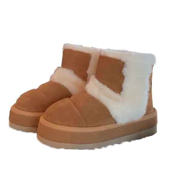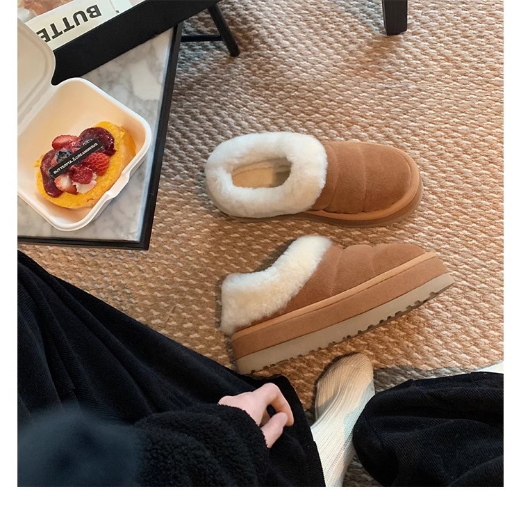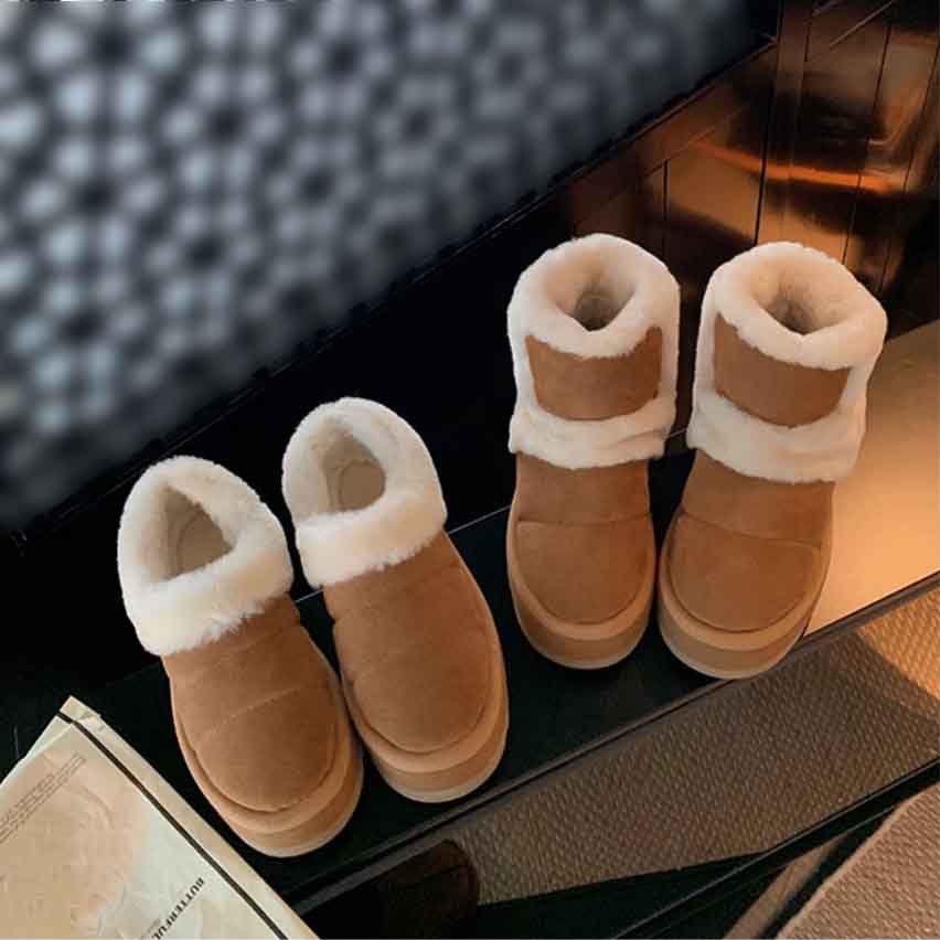 2025년 신상 천연 가죽 두꺼운 밑창 플리스 보온 양모 여성화, 다용도 가죽과 모피 일체형 스노우 부츠, 빵신발