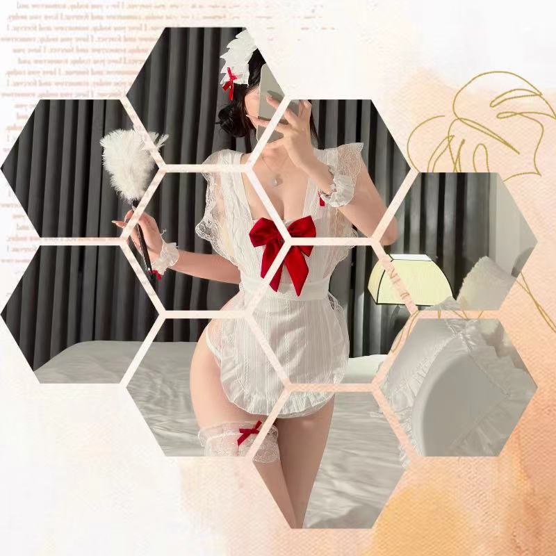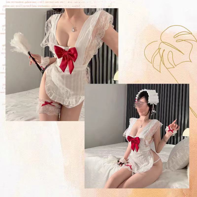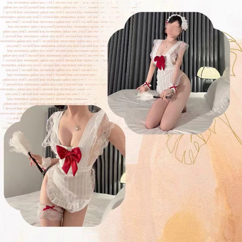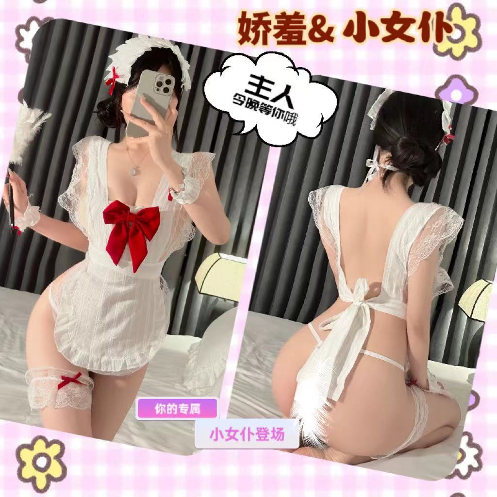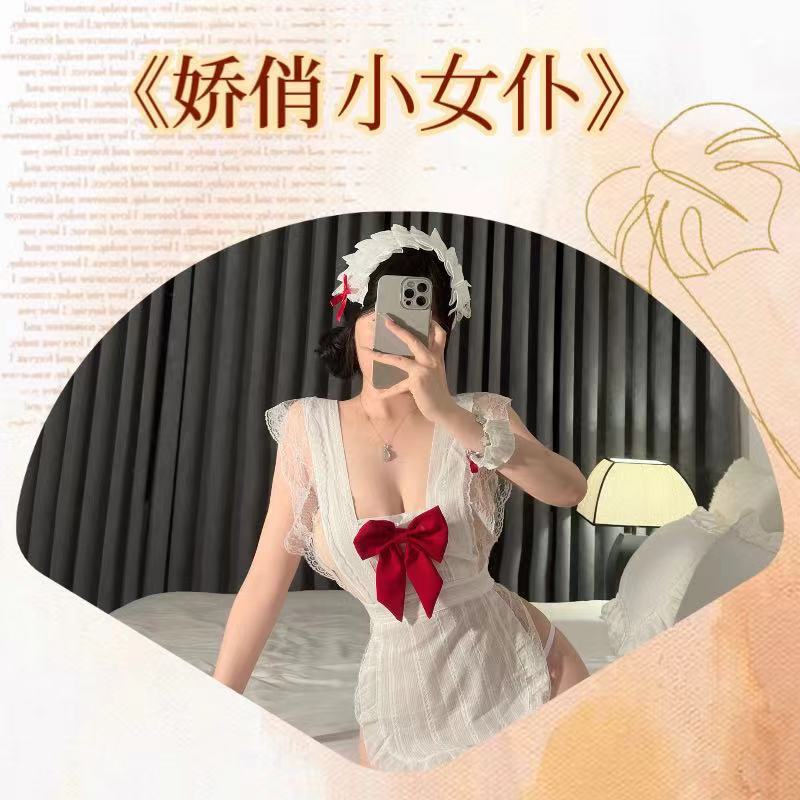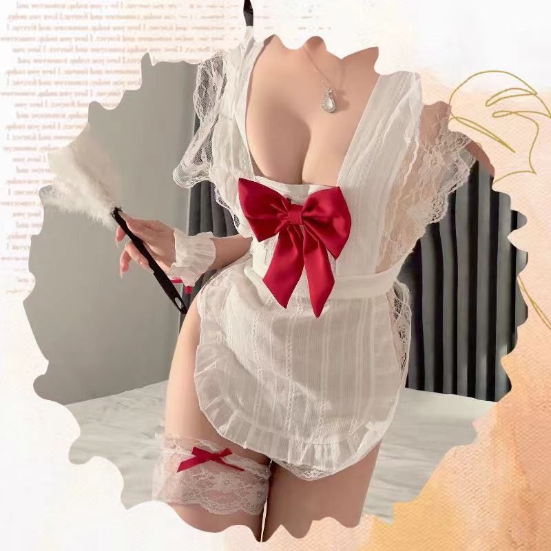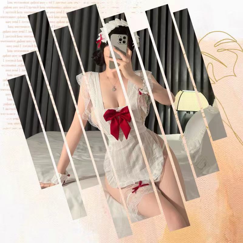 예쁜 활 예쁜 메이드 앞치마 섹시한 파자마 여성의 섹시한 속옷 유니폼 유혹 순수한 욕망 세트 무료