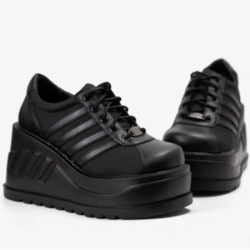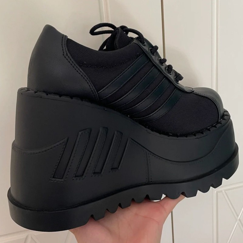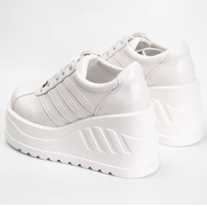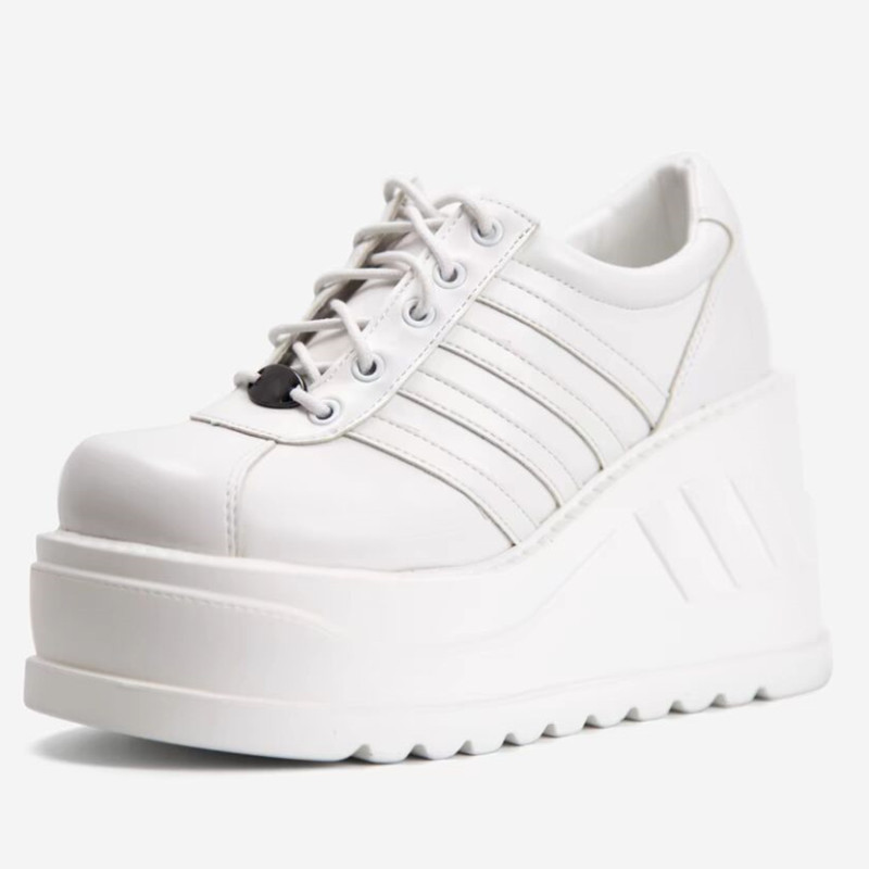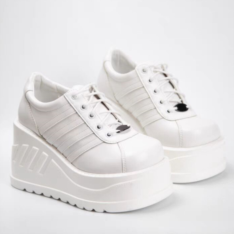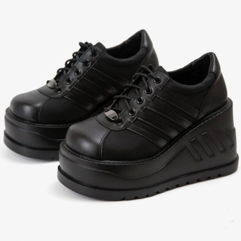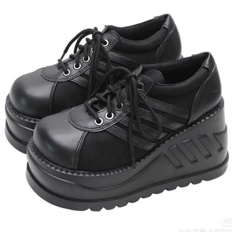 높이 증가 슈퍼 두꺼운 단독 신발 여성 고딕 펑크 스타일 레이스 업 신발 플랫폼 단독 줄무늬 하위 문화 가죽 신발