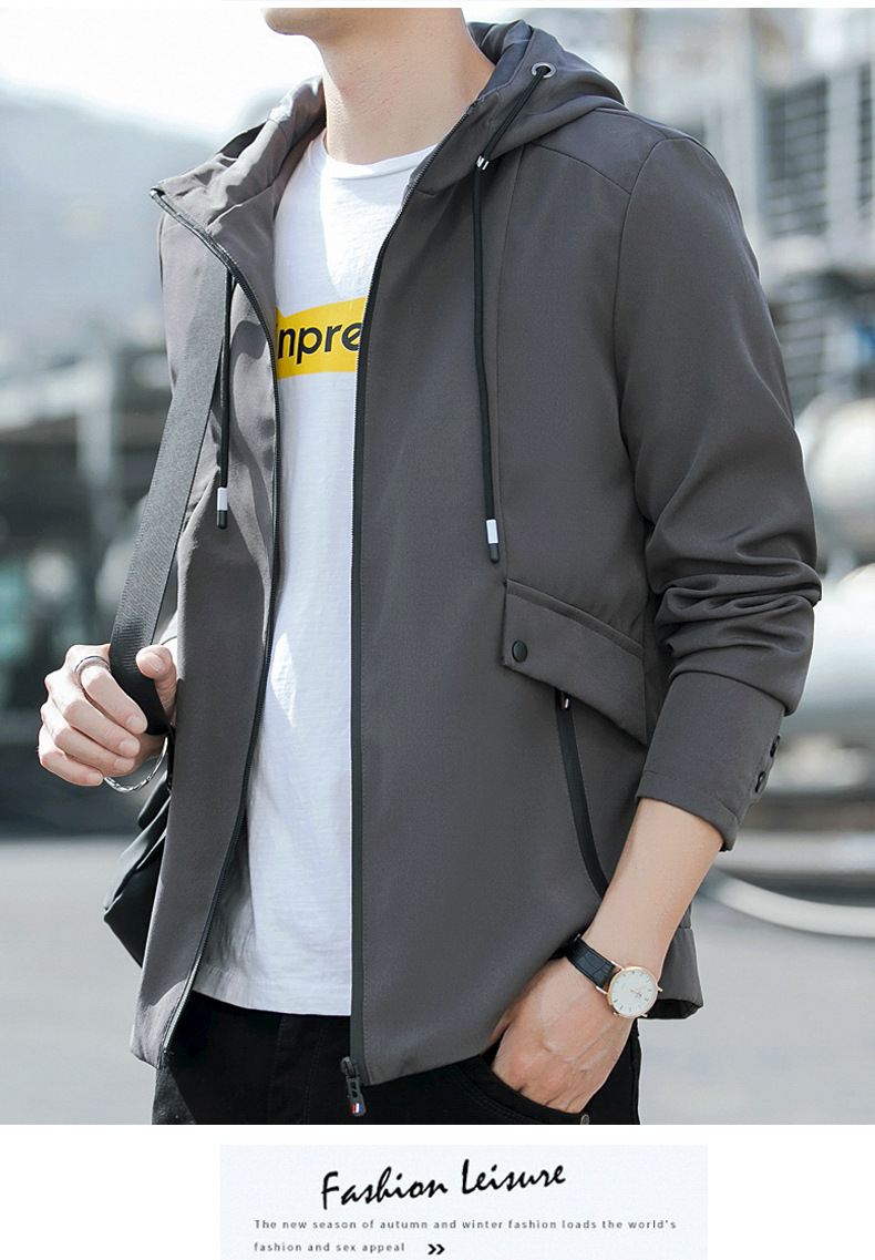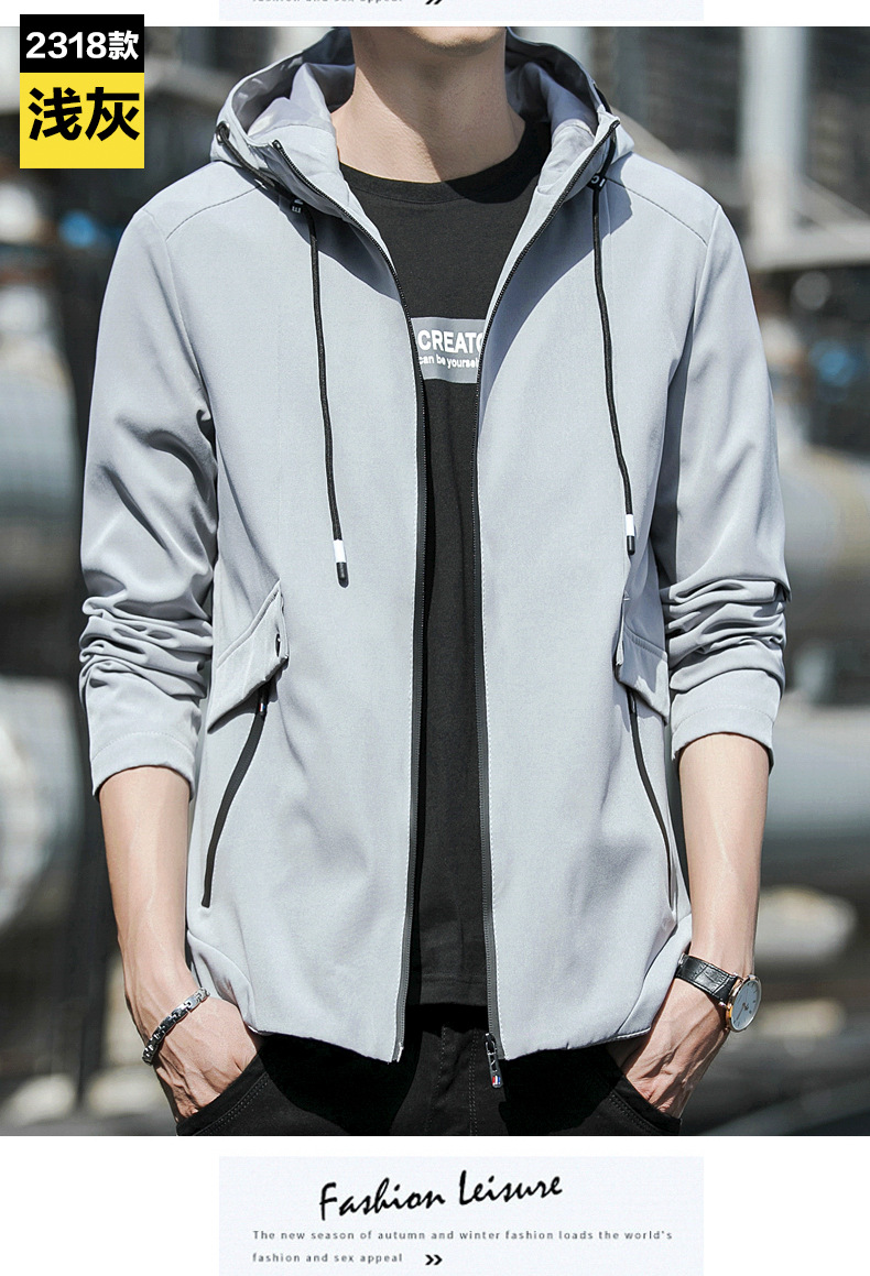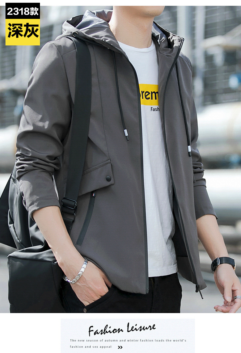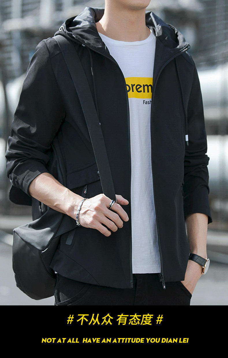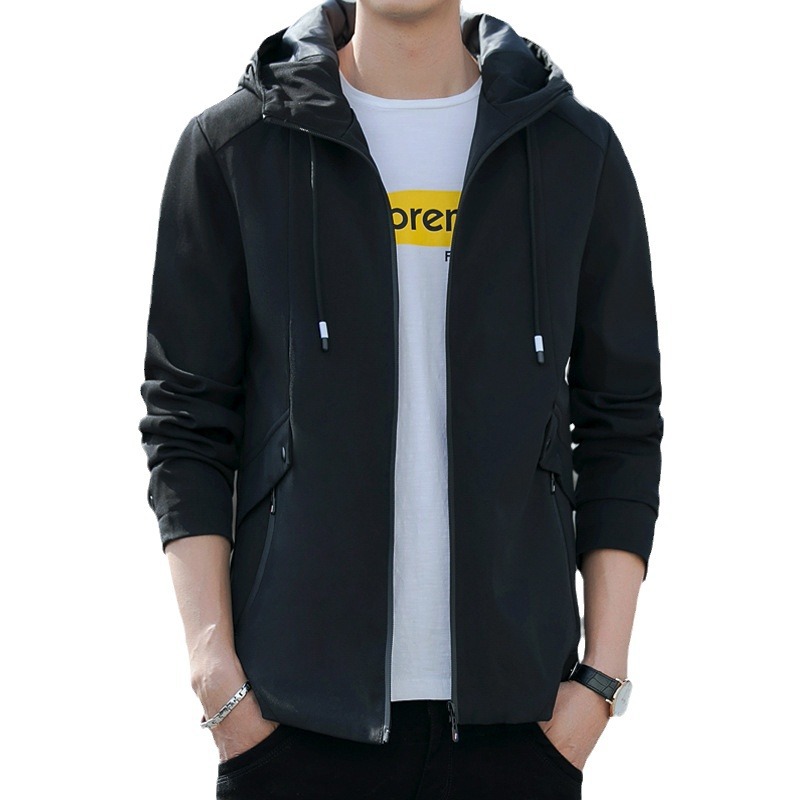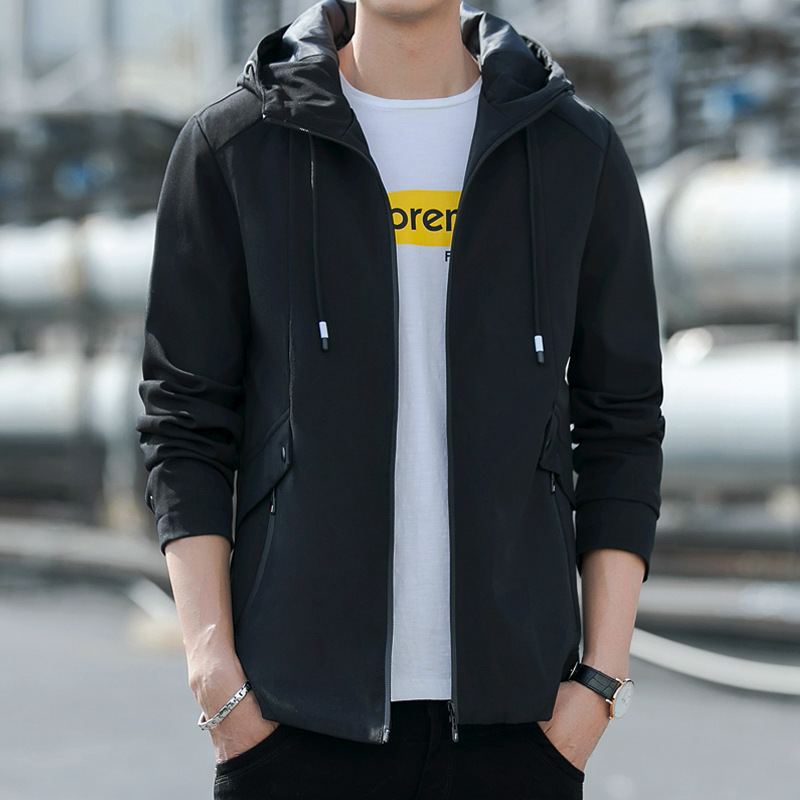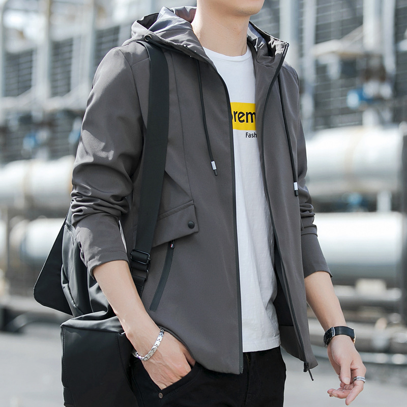 재킷 남자의 겉옷 2024 봄과 가을 새로운 느슨한 후드 작업 코트 남자의 가을 얇은 상단 옷
