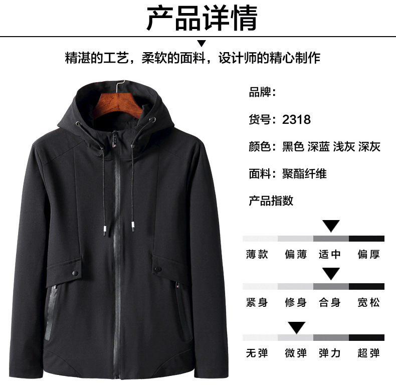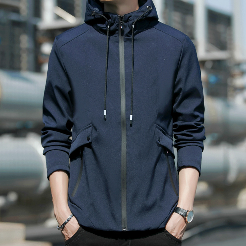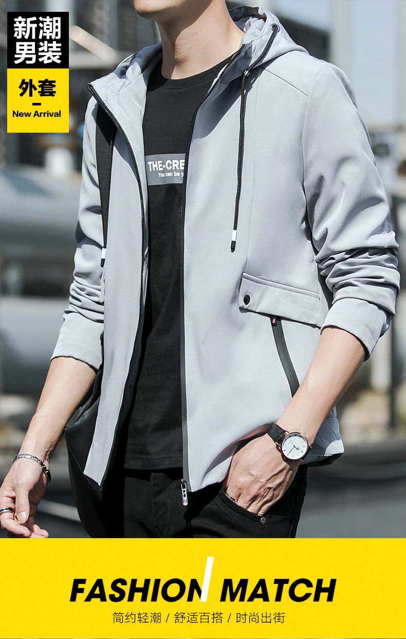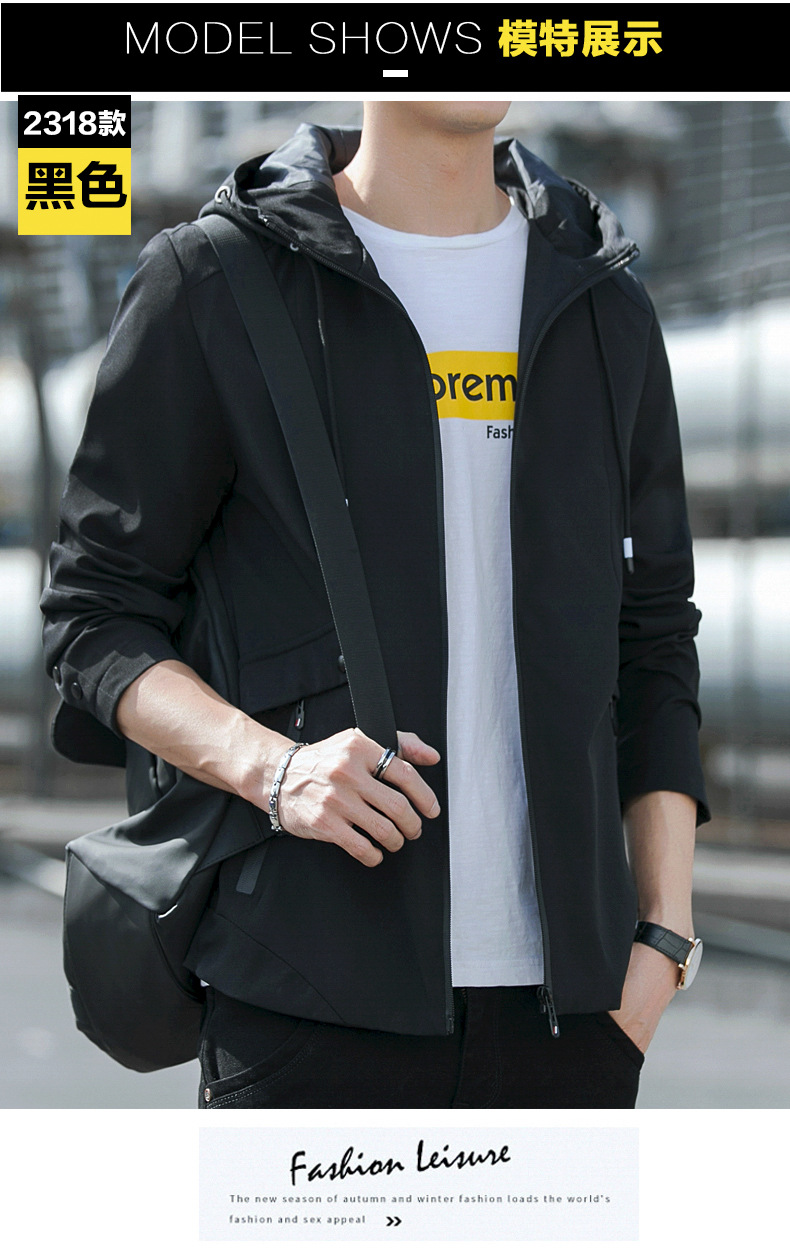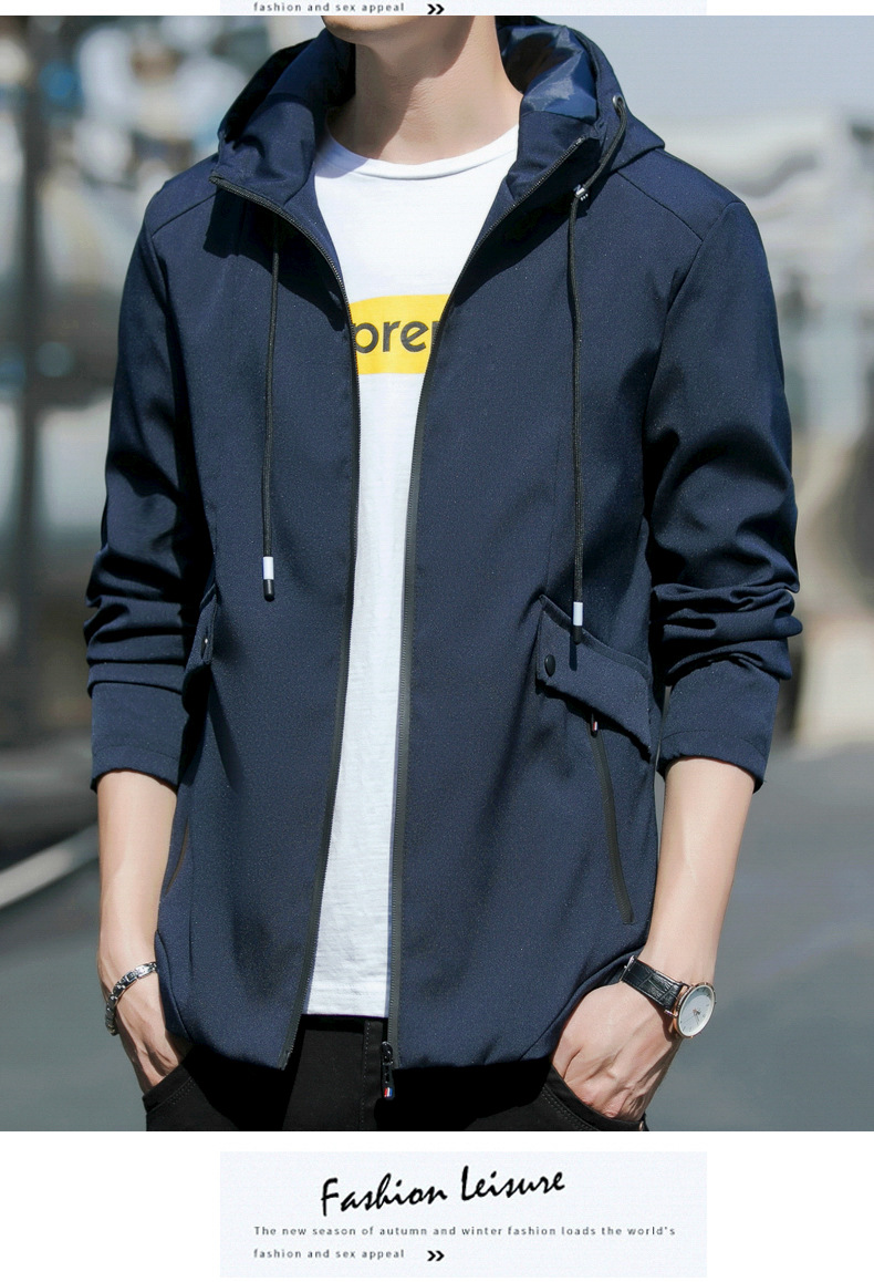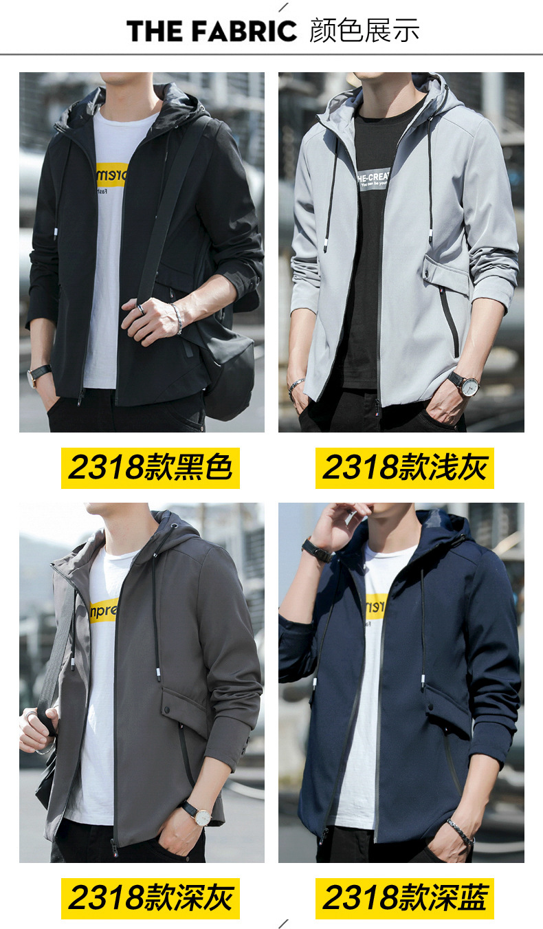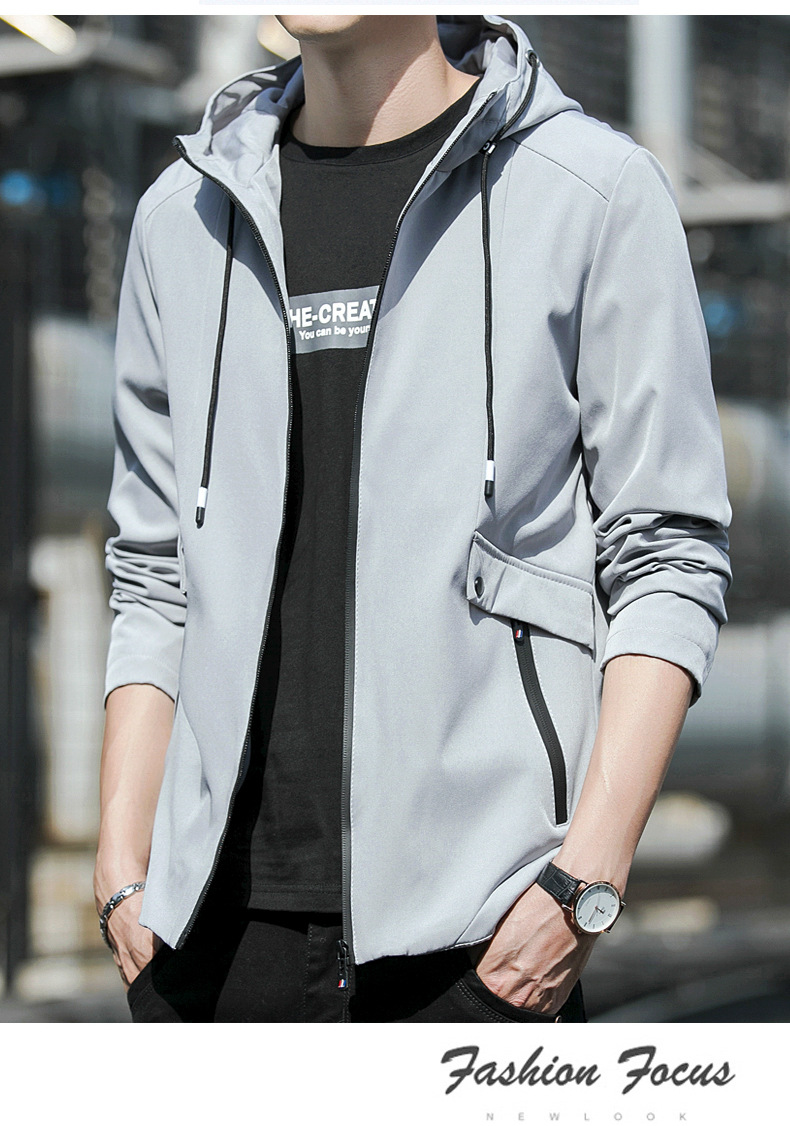 재킷 남자의 겉옷 2024 봄과 가을 새로운 느슨한 후드 작업 코트 남자의 가을 얇은 상단 옷