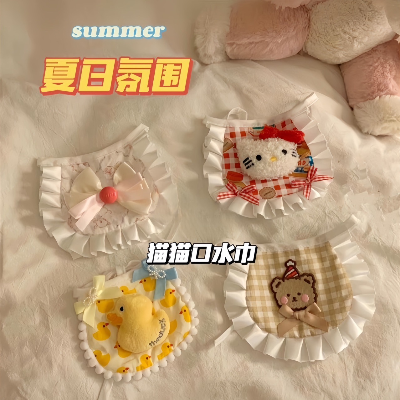 애완 동물 타액 수건 고양이 턱받이 개 레이스 스카프 수제 장식 패브릭 칼라 귀여운 사진 인형