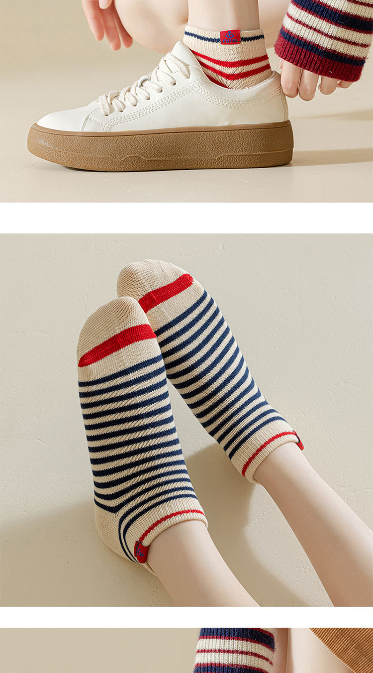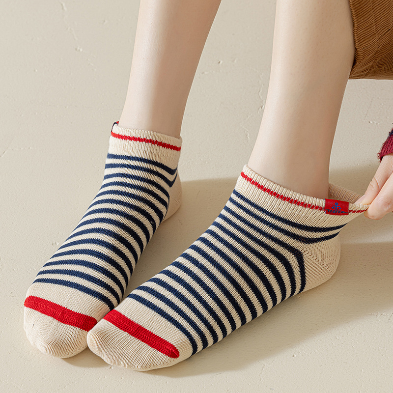 양말 여성용 쇼트 양말 로우 탑 양말 순수 코튼 스트라이프 안티 냄새 땀 봄과 가을 한국 스타일 여성 보트 양말 충격 입 하라주쿠 대학 스타일 흡수