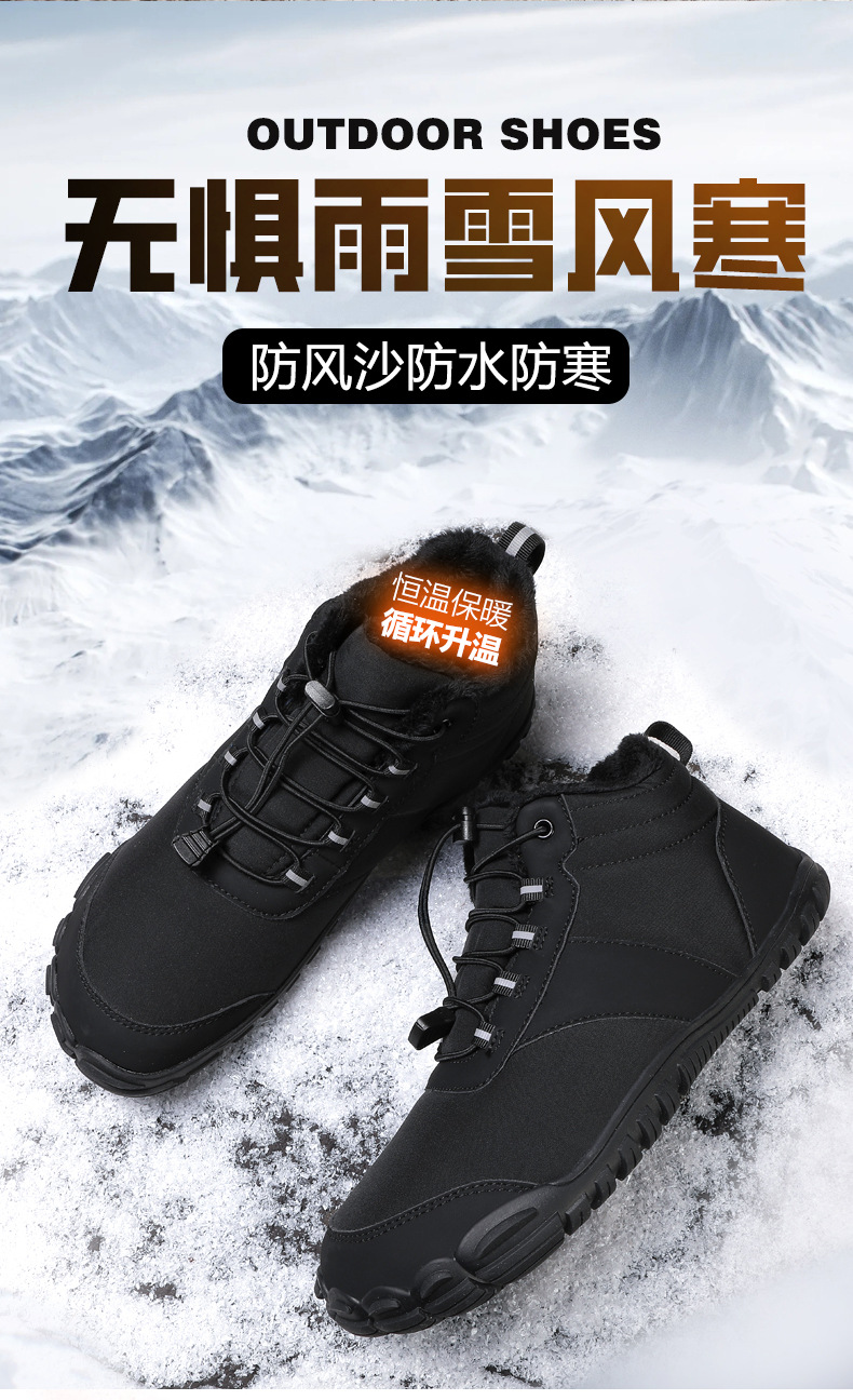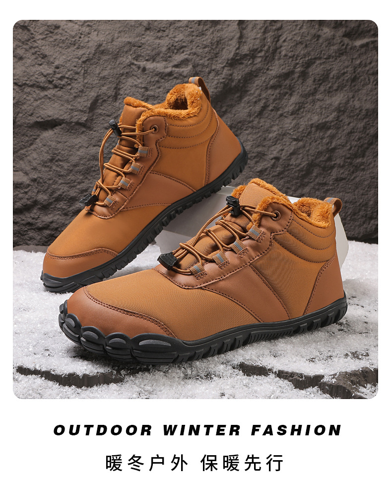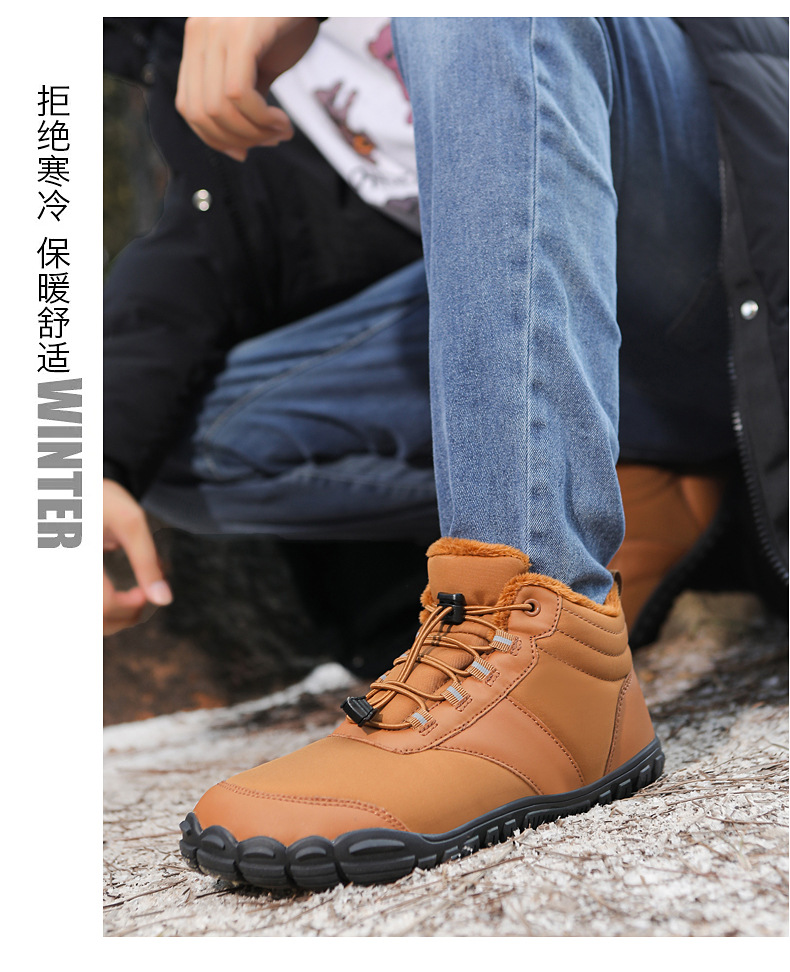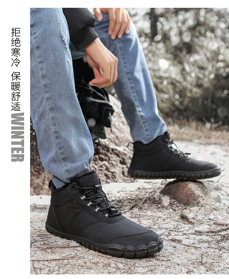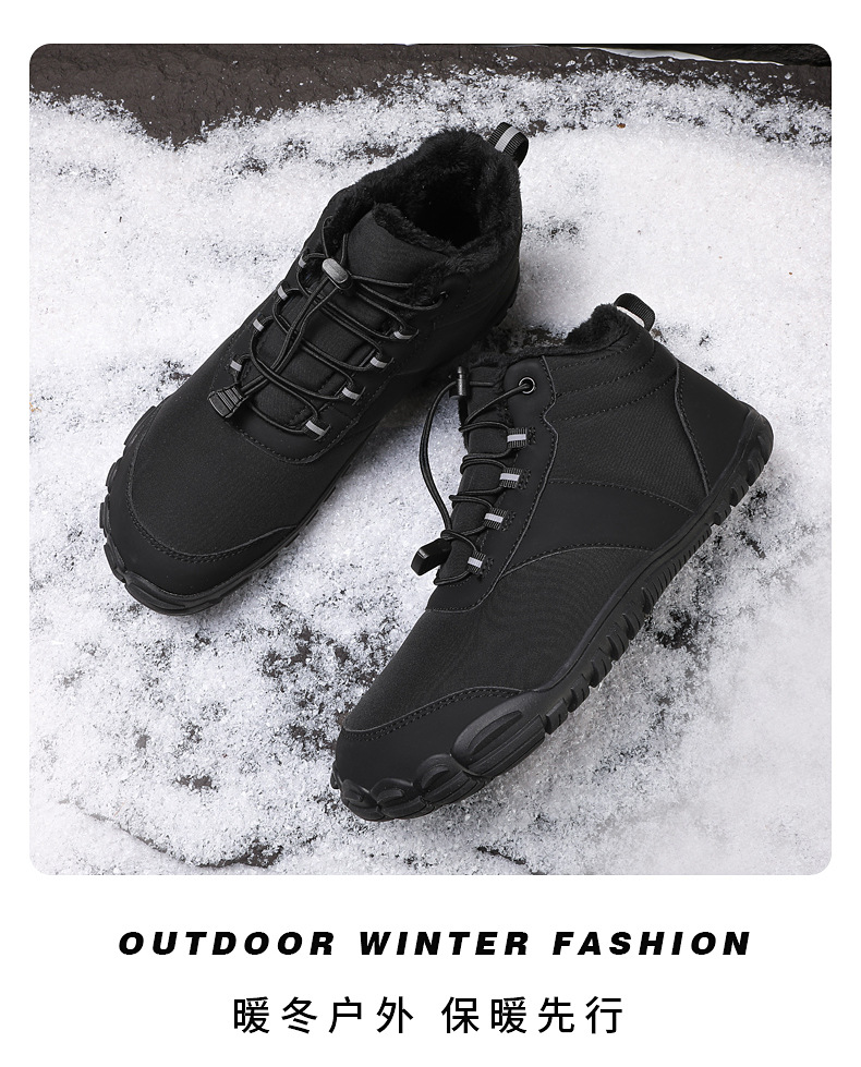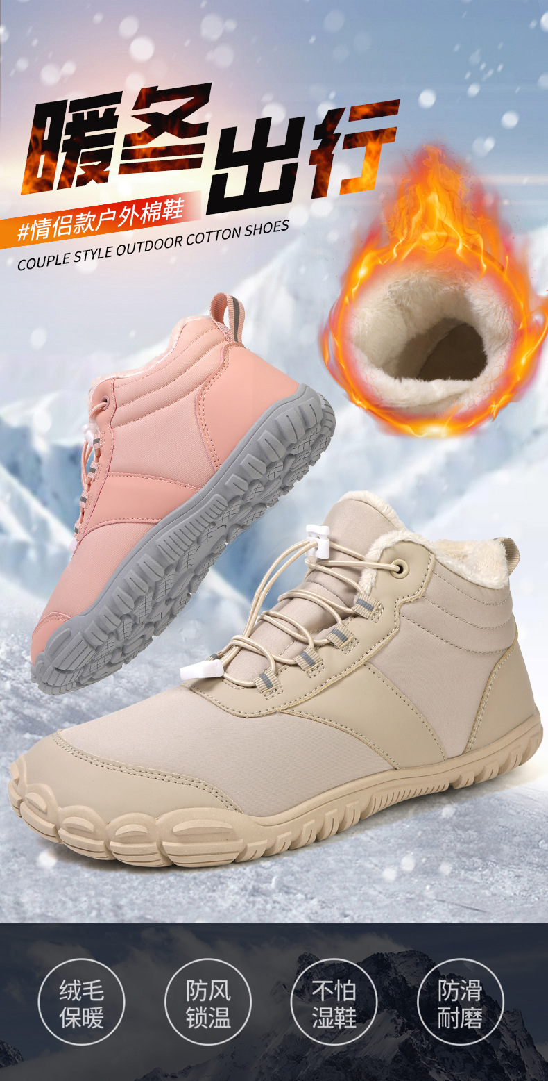 야외 스노우 부츠 남성 국경 겨울 새로운 미끄럼 방지 방수 기모 따뜻한 면화 신발 여성의 두꺼운 밑창 맨발 다섯 손가락 신발