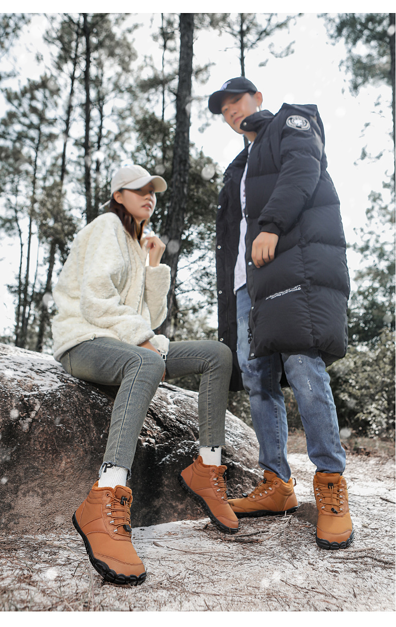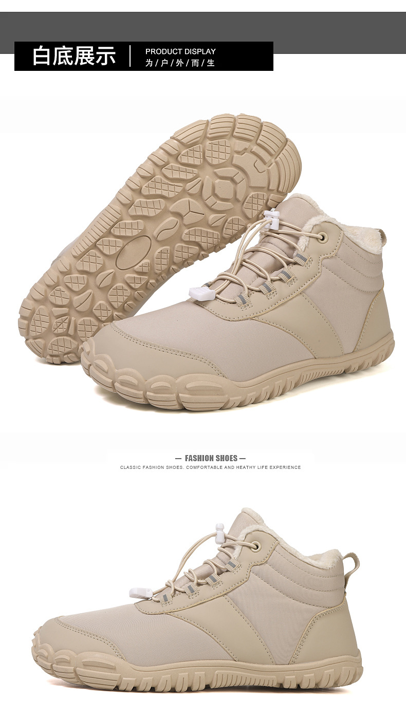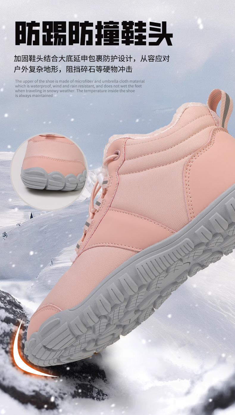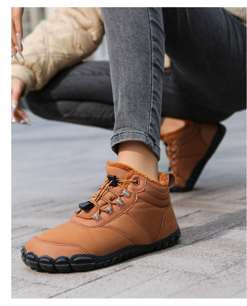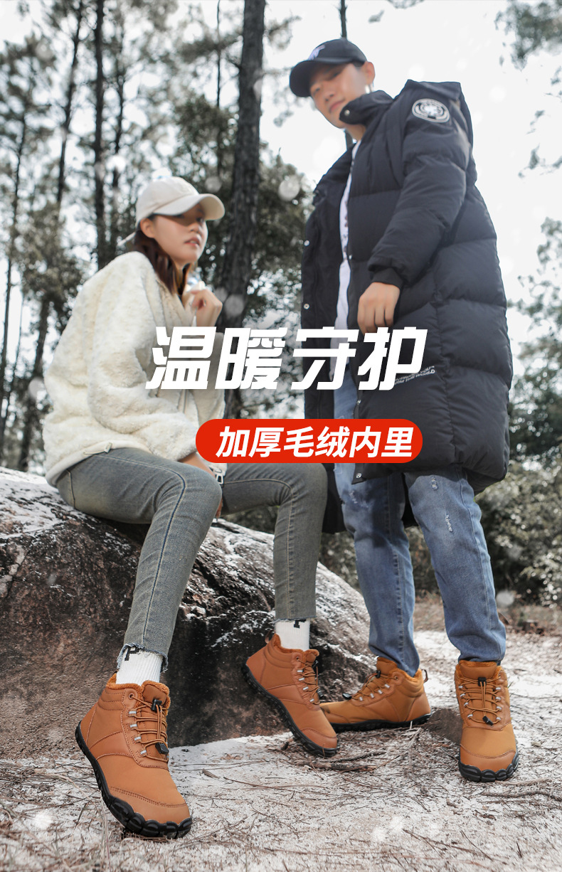야외 스노우 부츠 남성 국경 겨울 새로운 미끄럼 방지 방수 기모 따뜻한 면화 신발 여성의 두꺼운 밑창 맨발 다섯 손가락 신발