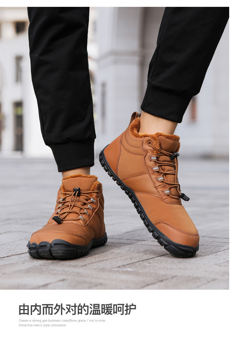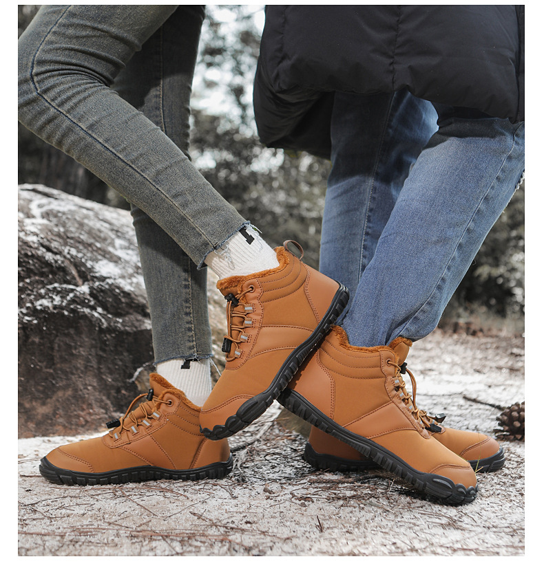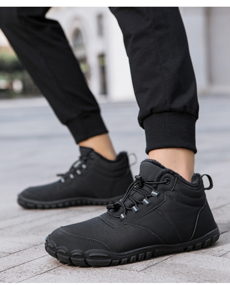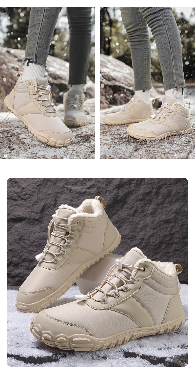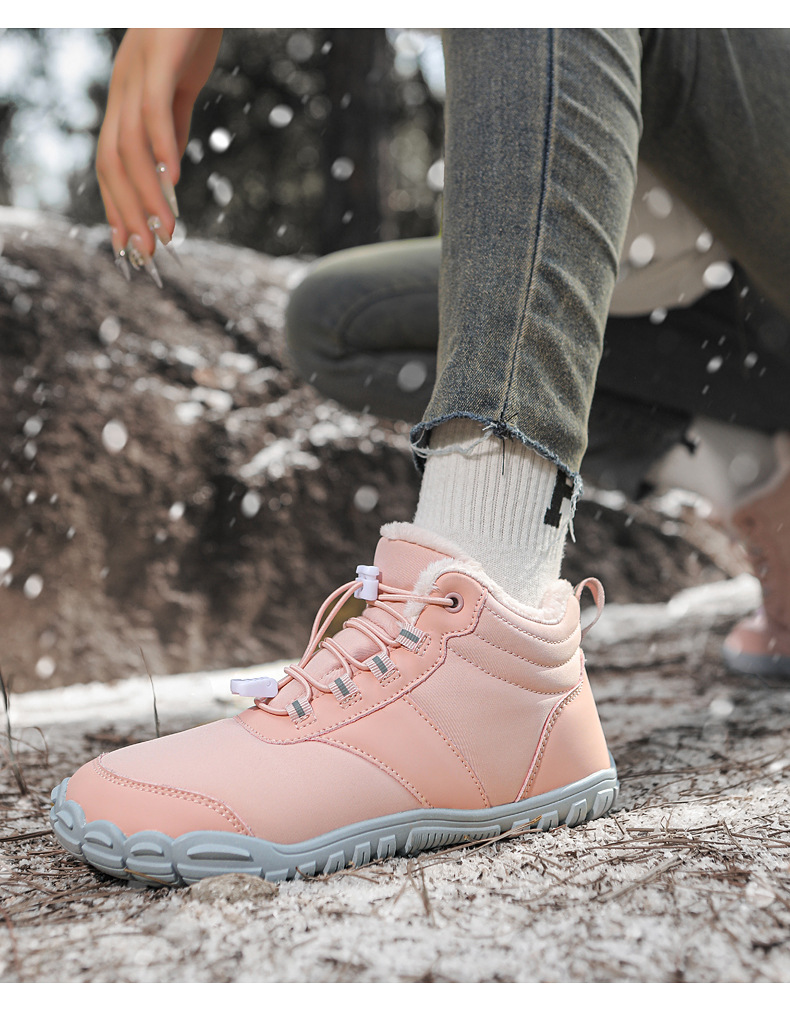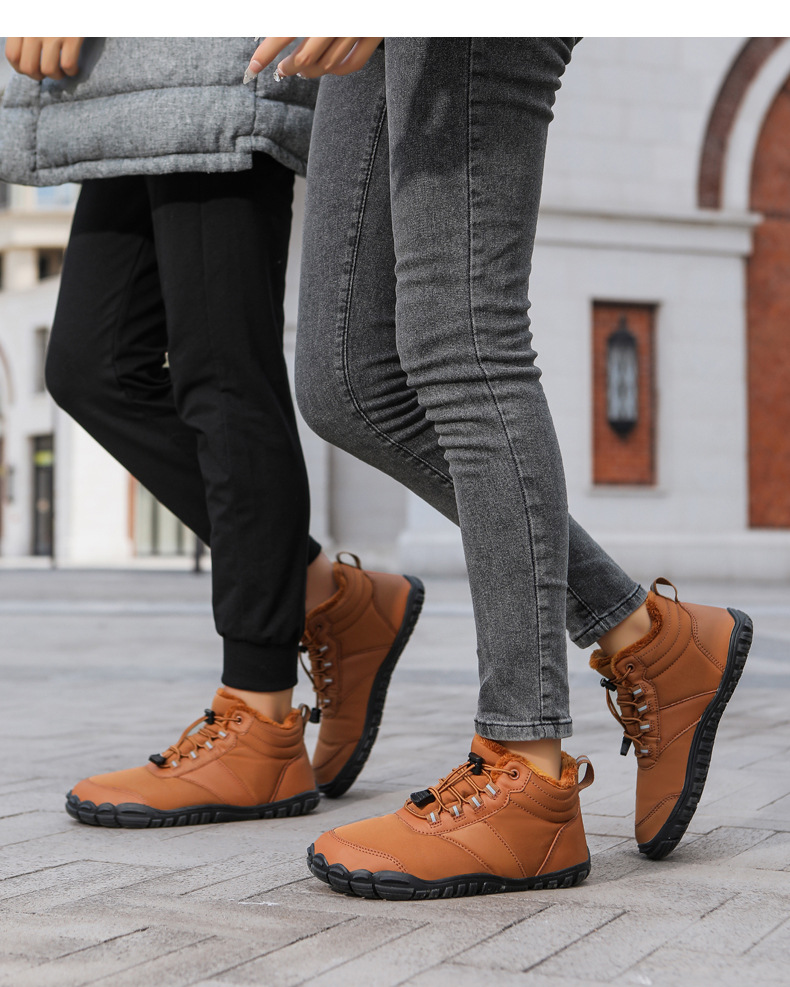 야외 스노우 부츠 남성 국경 겨울 새로운 미끄럼 방지 방수 기모 따뜻한 면화 신발 여성의 두꺼운 밑창 맨발 다섯 손가락 신발