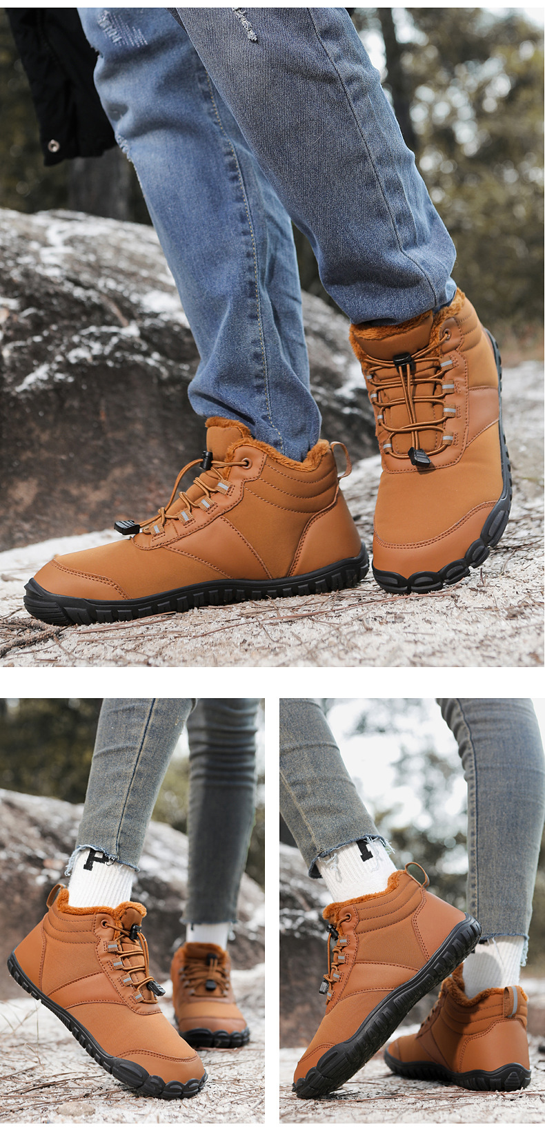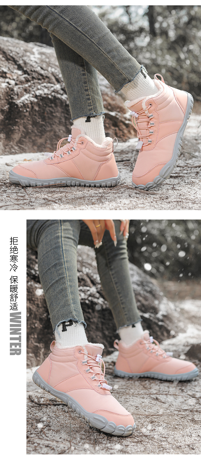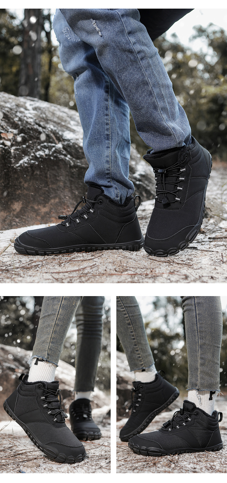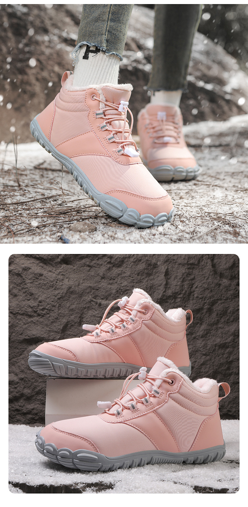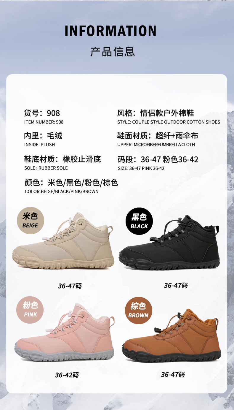 야외 스노우 부츠 남성 국경 겨울 새로운 미끄럼 방지 방수 기모 따뜻한 면화 신발 여성의 두꺼운 밑창 맨발 다섯 손가락 신발