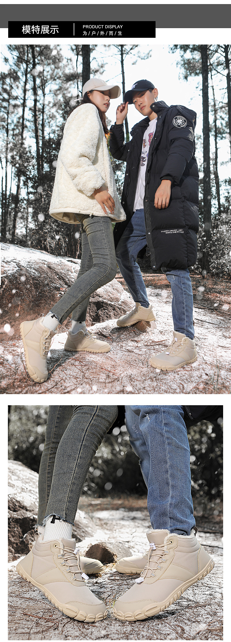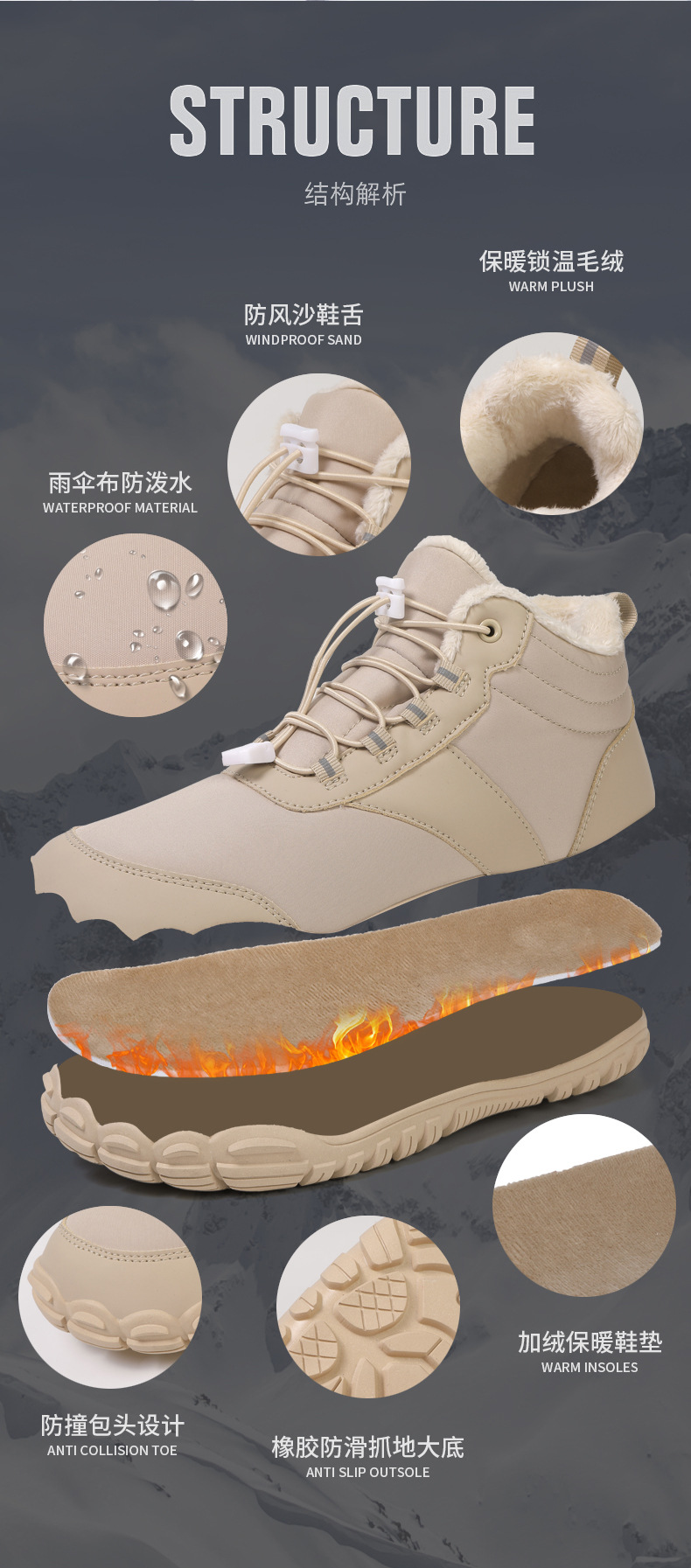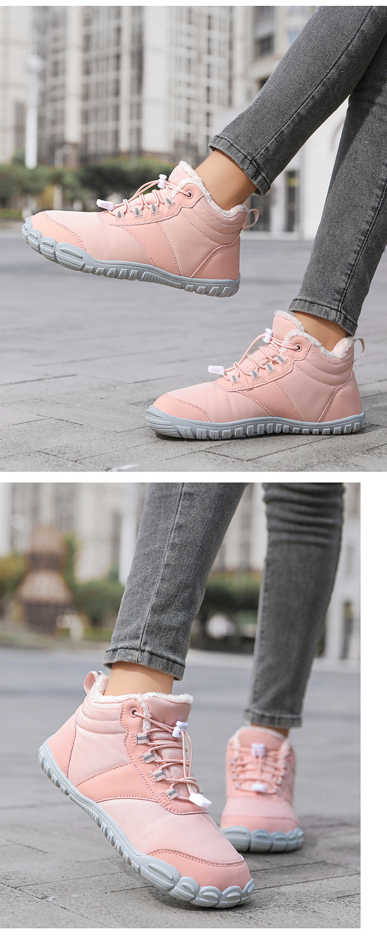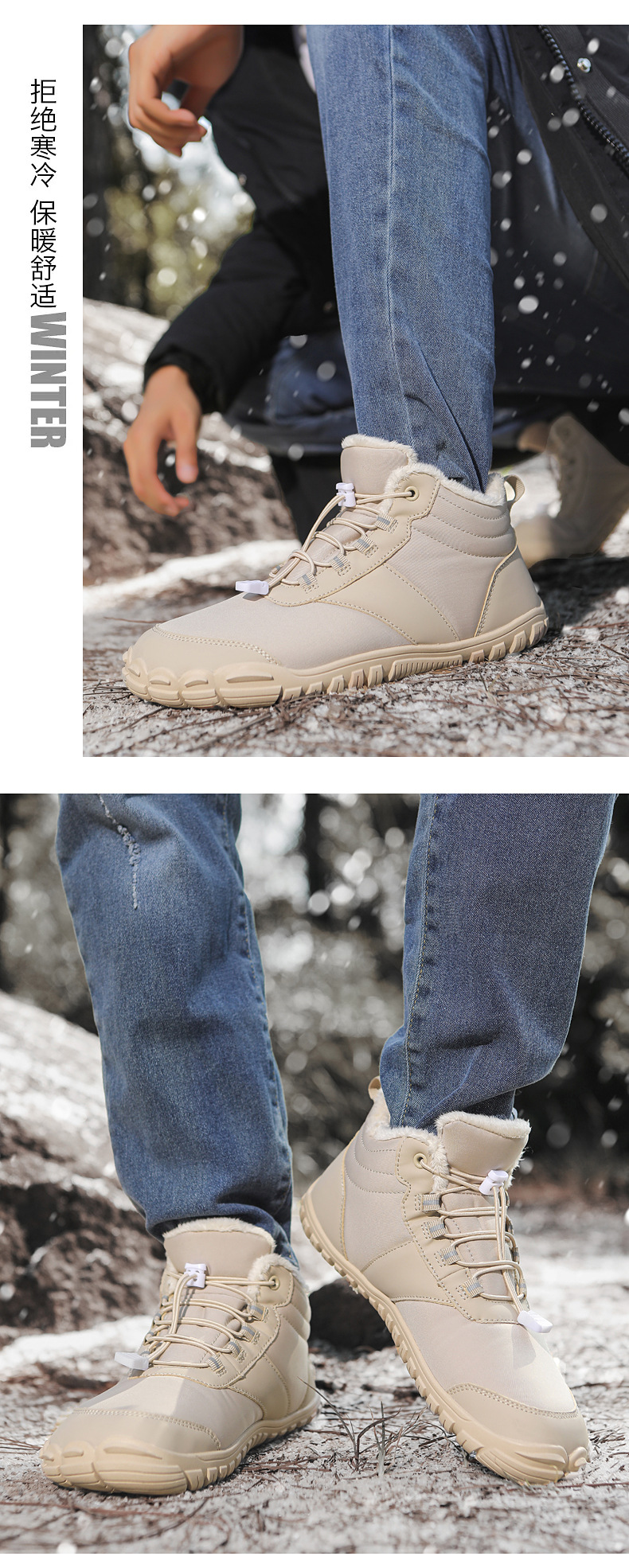 야외 스노우 부츠 남성 국경 겨울 새로운 미끄럼 방지 방수 기모 따뜻한 면화 신발 여성의 두꺼운 밑창 맨발 다섯 손가락 신발