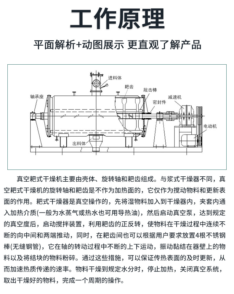 저온 진공 갈퀴 건조기 니켈 코발트 리튬 망간 산화물 건조기 내부 가열 갈퀴 건조기 비료 건조기