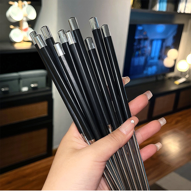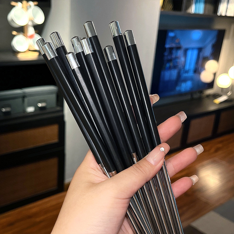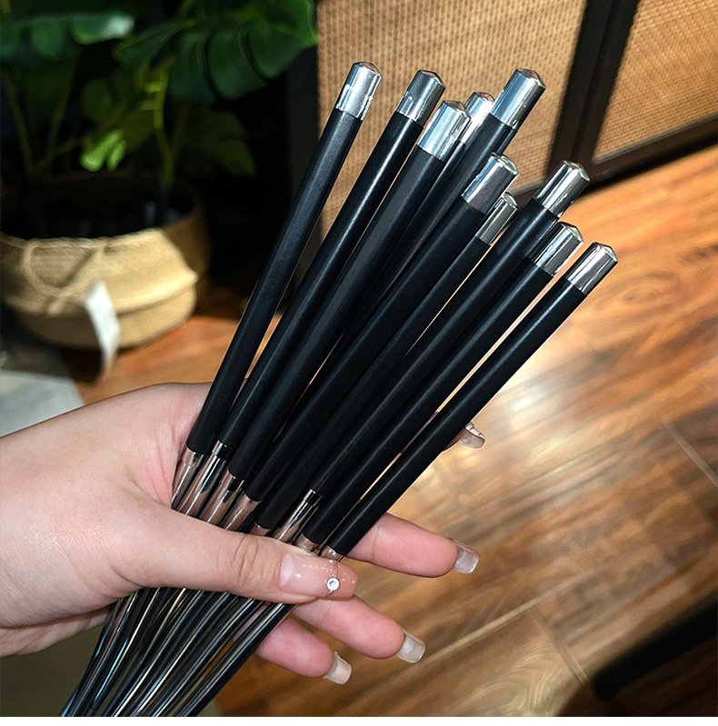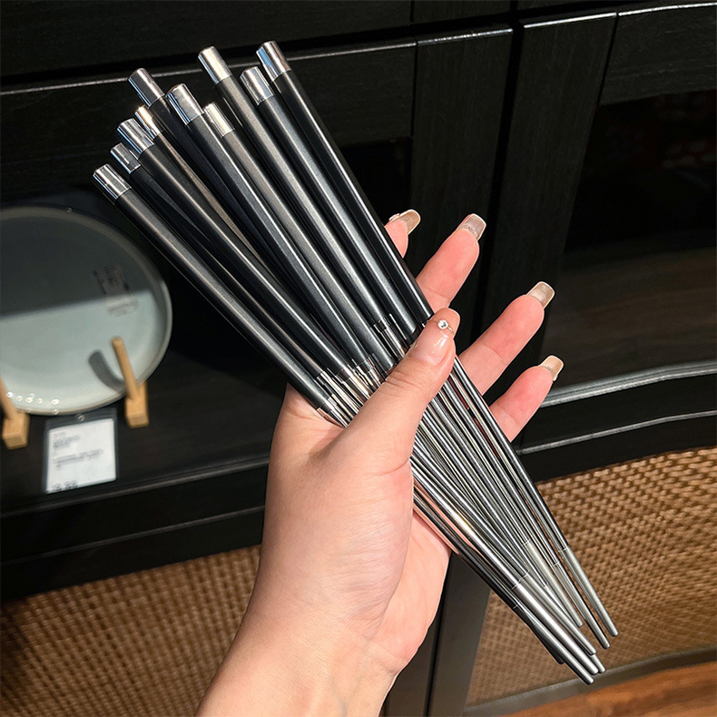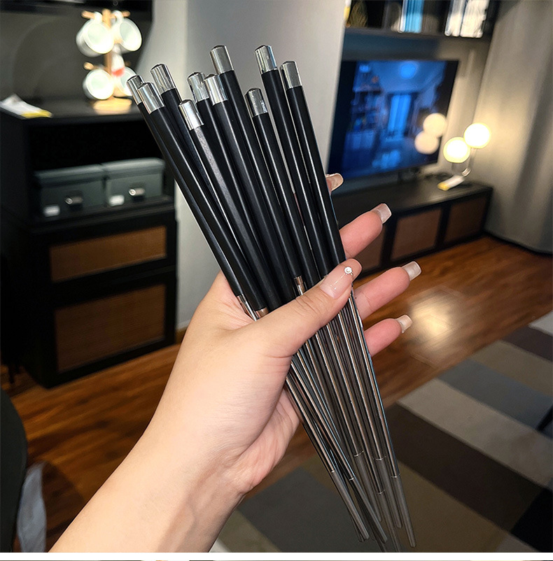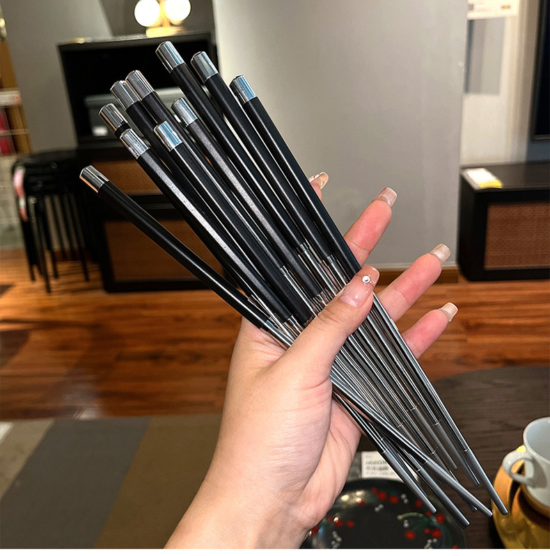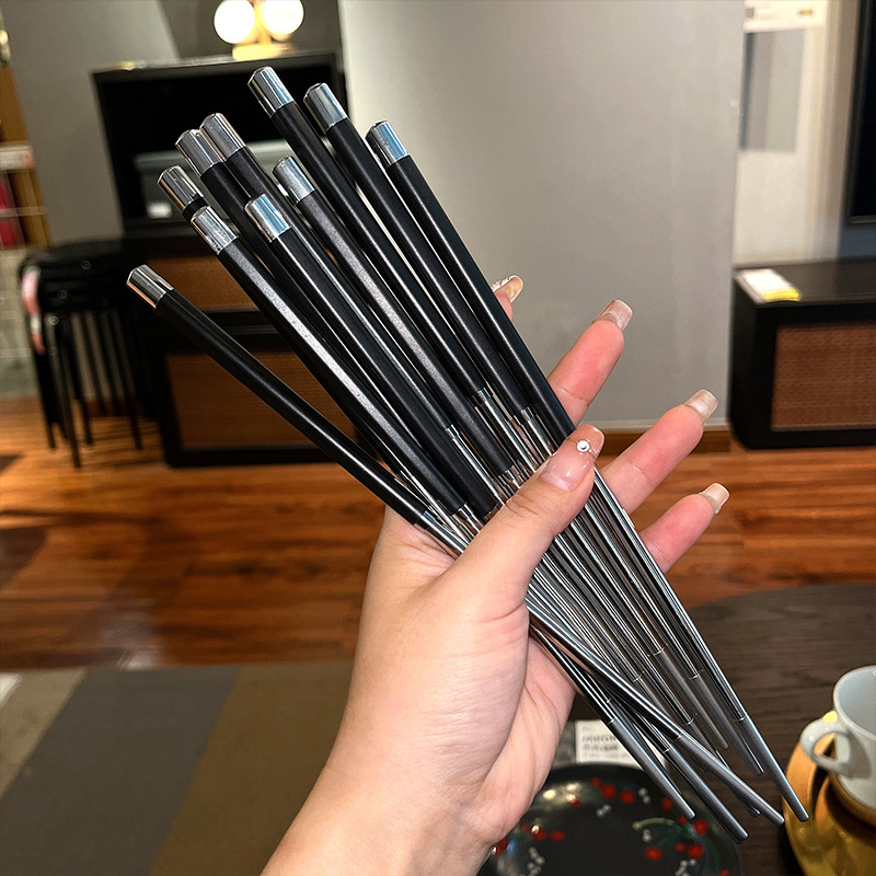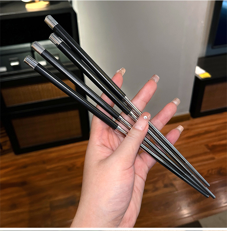 공장 직접 스테인레스 스틸 젓가락 합금 젓가락 가정용 식기 미끄럼 방지 금속 스티칭 실버 젓가락
