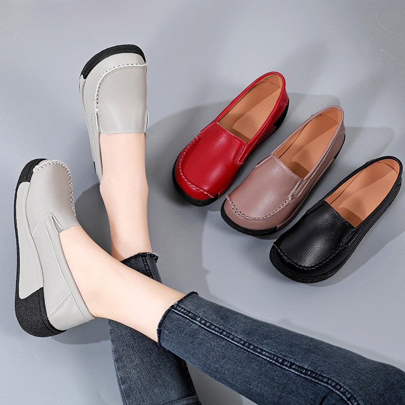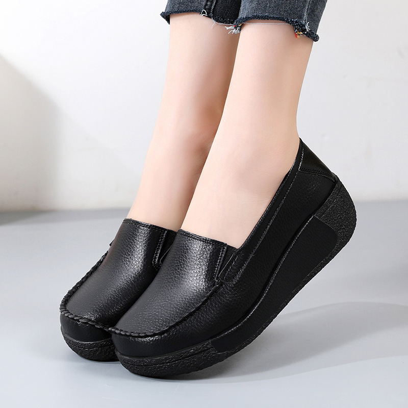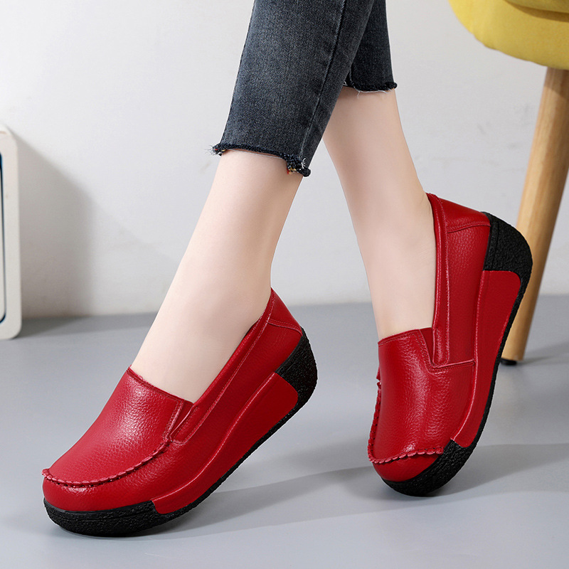 여성을위한 정품 가죽 스니커즈 봄 새로운 플랫폼 어머니 신발 소 가죽 캐주얼 락 신발 슬립 온 여성을위한 작은 가죽 신발