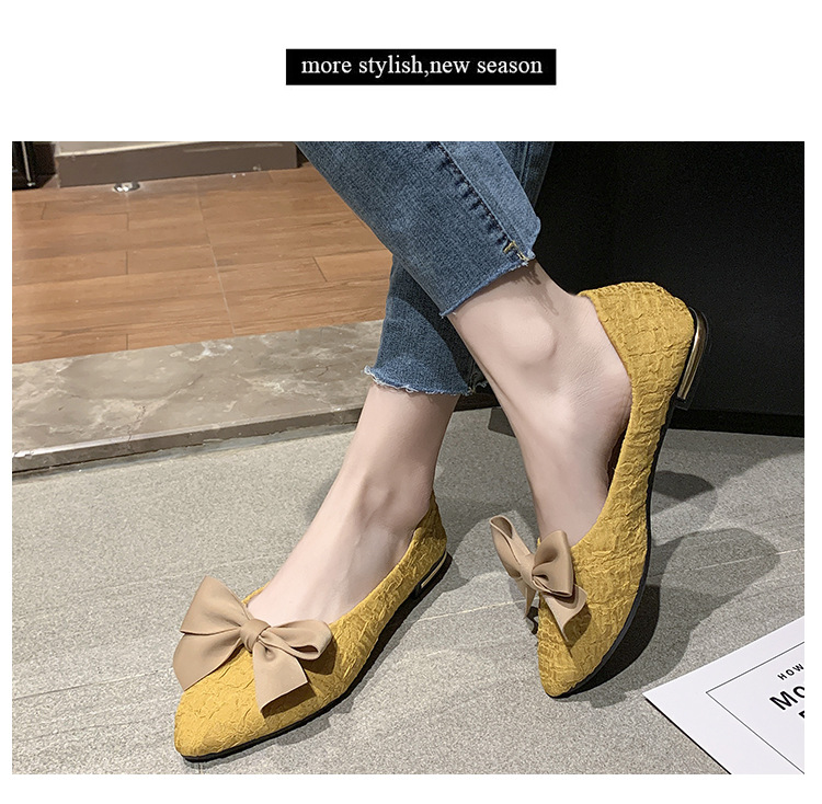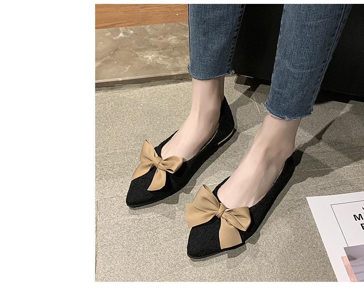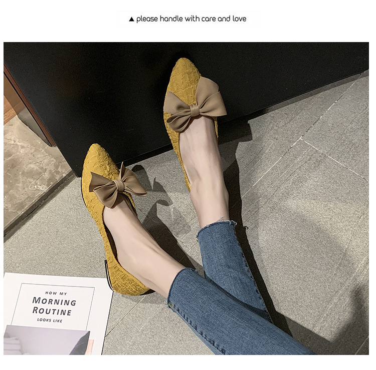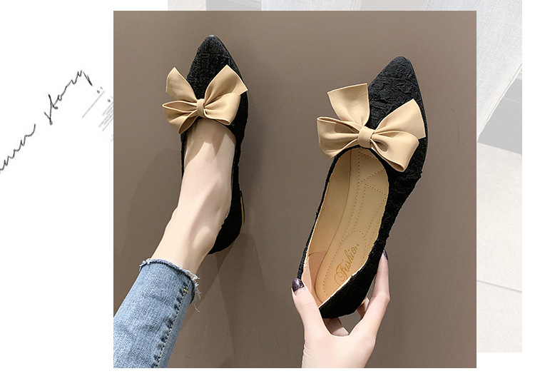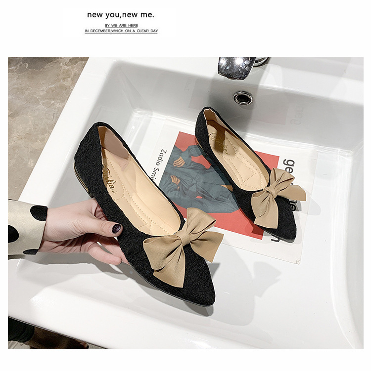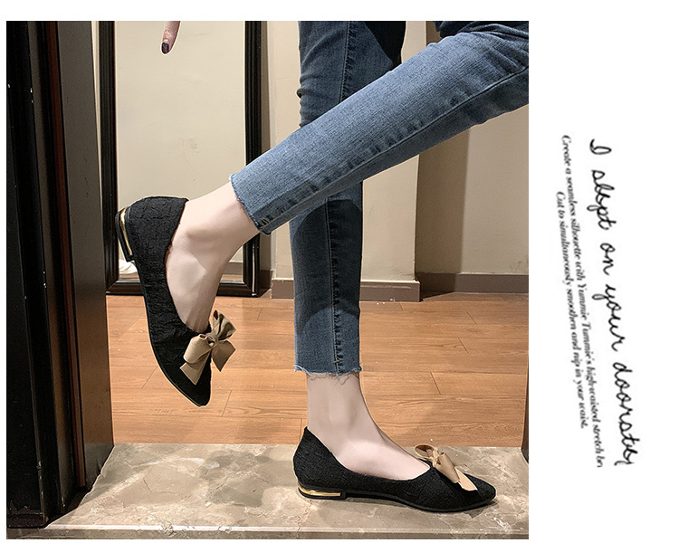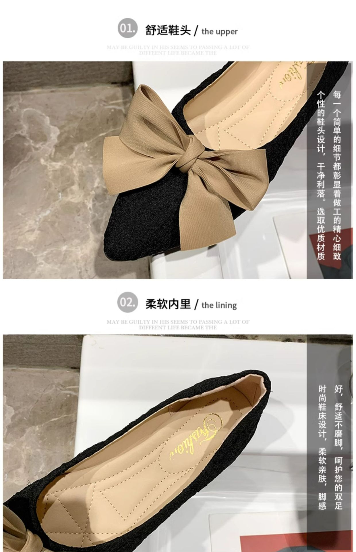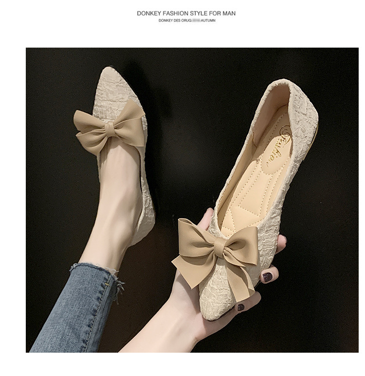 싱글 레이어 신발 여성의 새로운 콩 줄기 신발 2024 봄 뾰족한 봄과 가을 올 매치 플랫 보우 플랫 힐 싱글 레이어 신발 여성용
