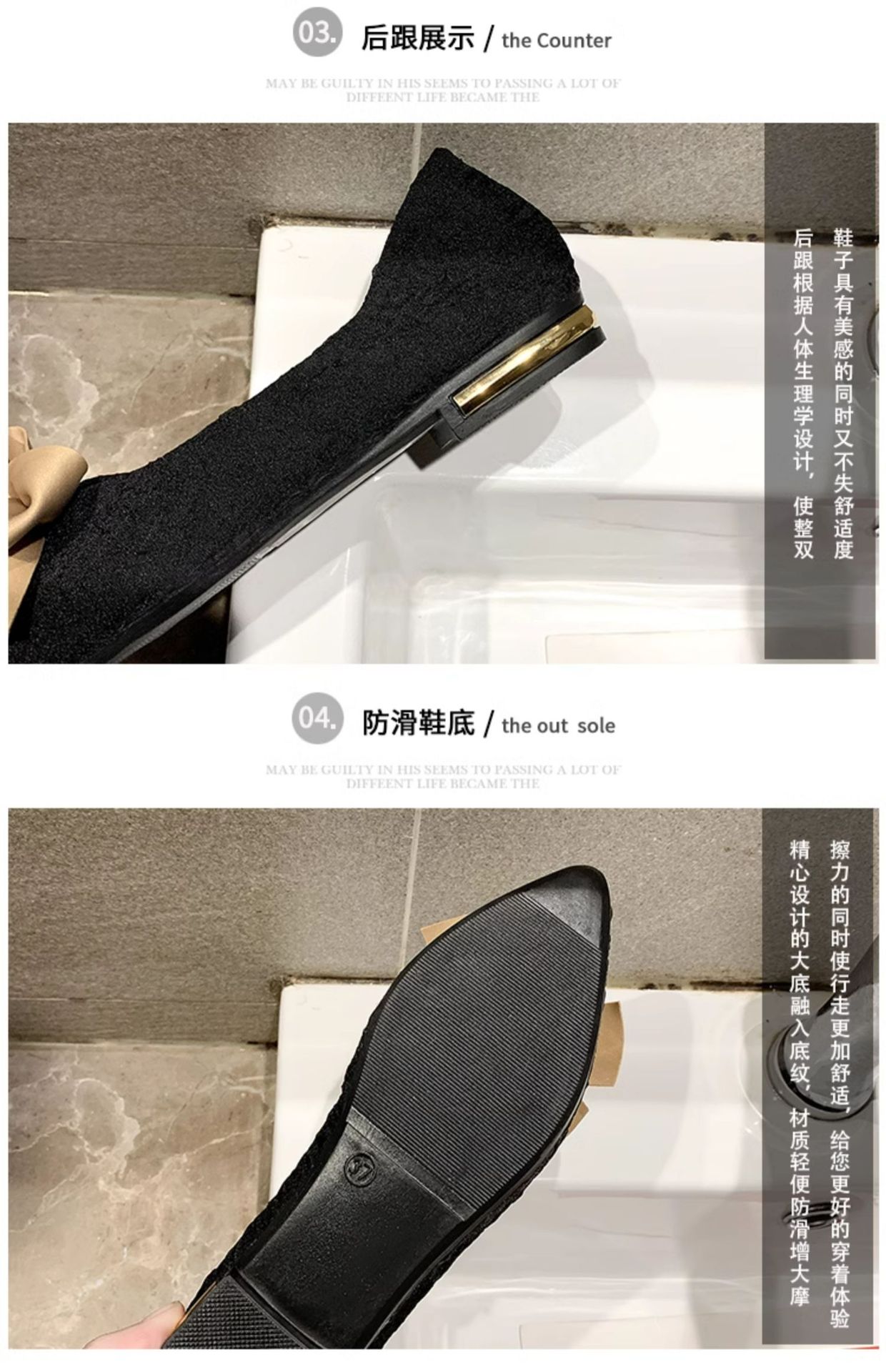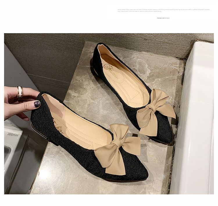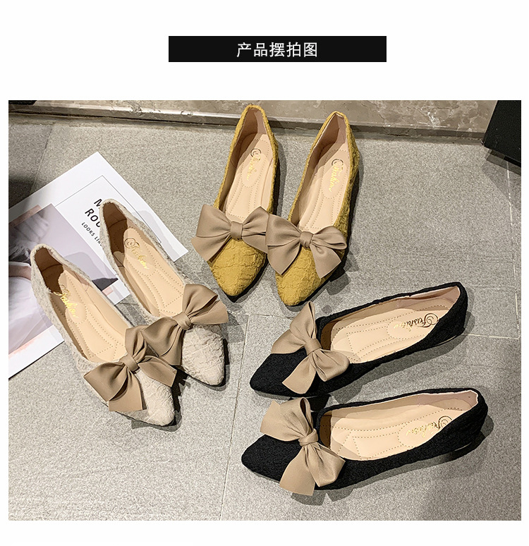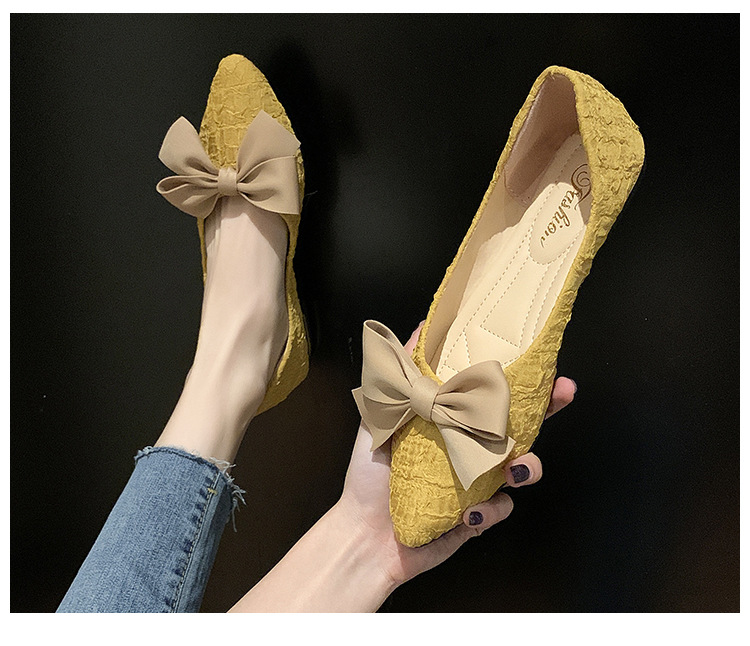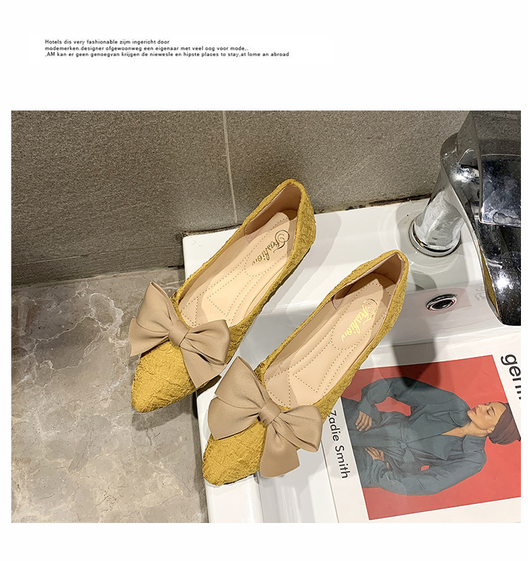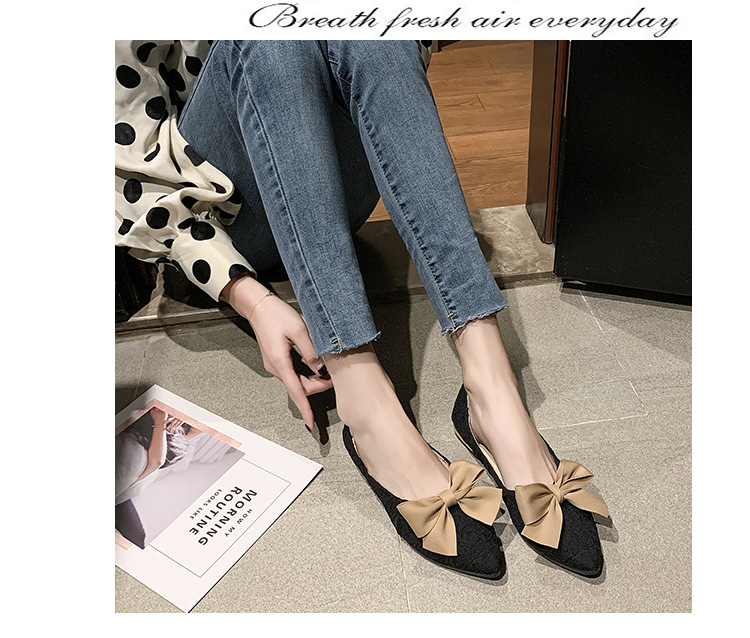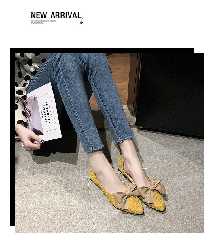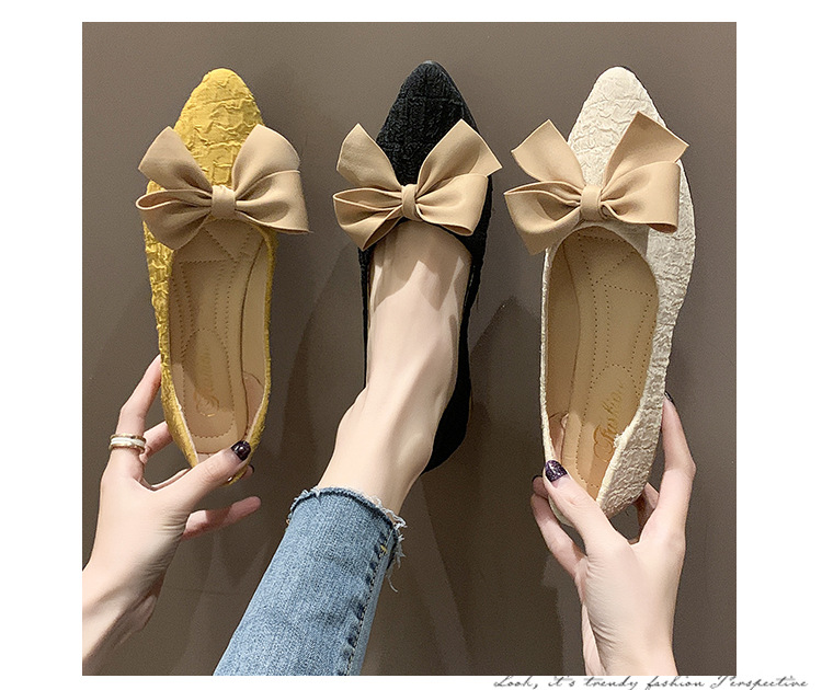 싱글 레이어 신발 여성의 새로운 콩 줄기 신발 2024 봄 뾰족한 봄과 가을 올 매치 플랫 보우 플랫 힐 싱글 레이어 신발 여성용