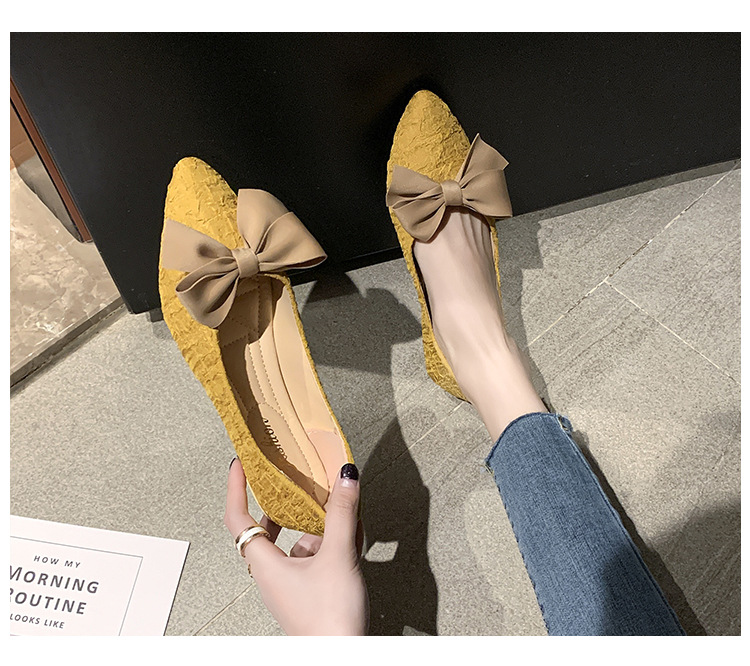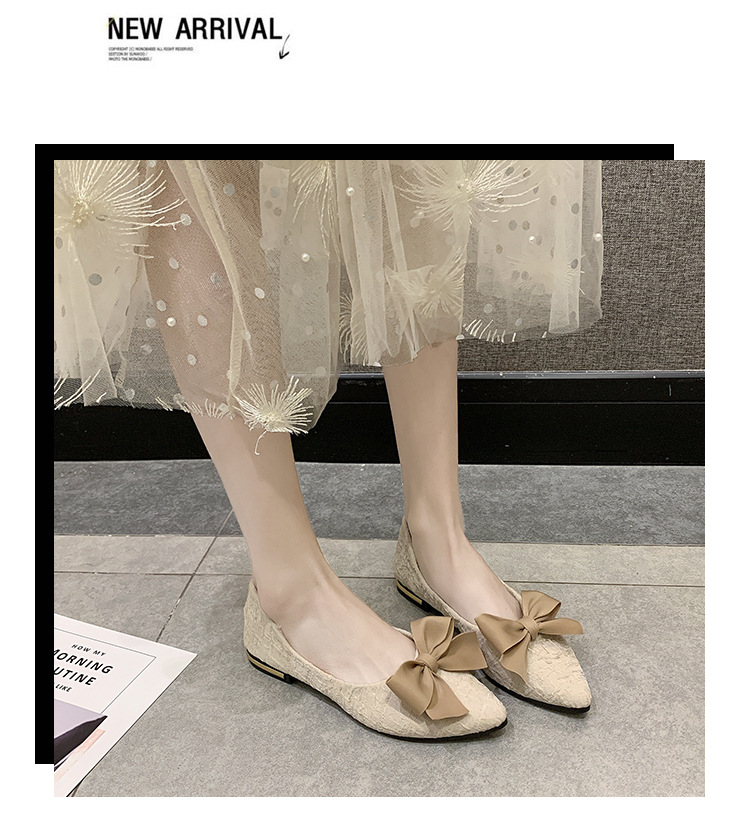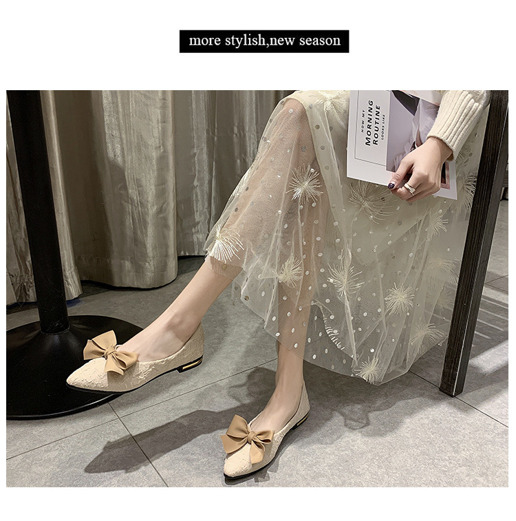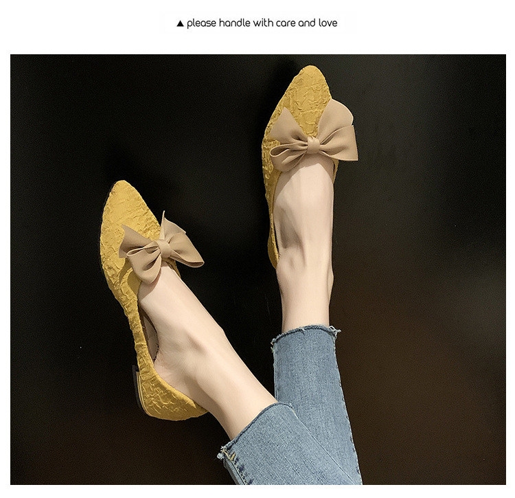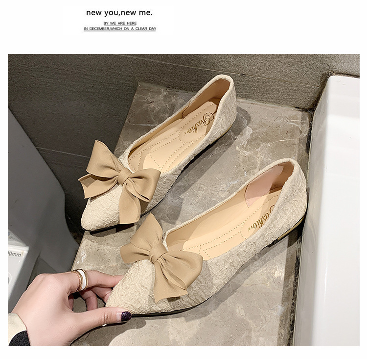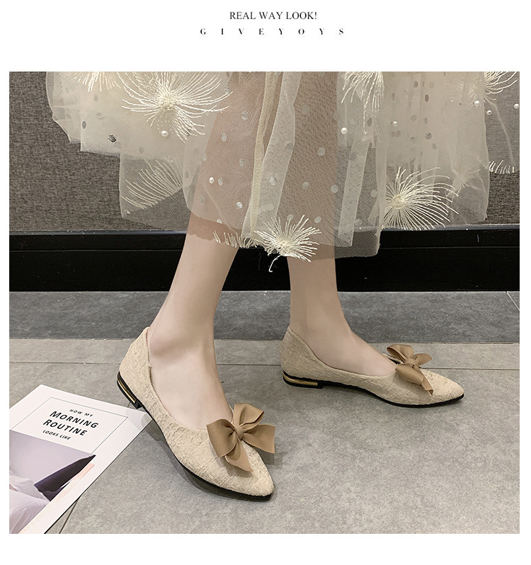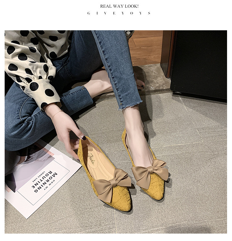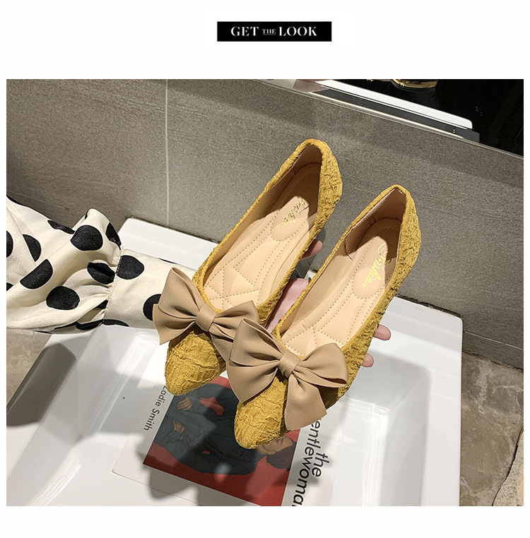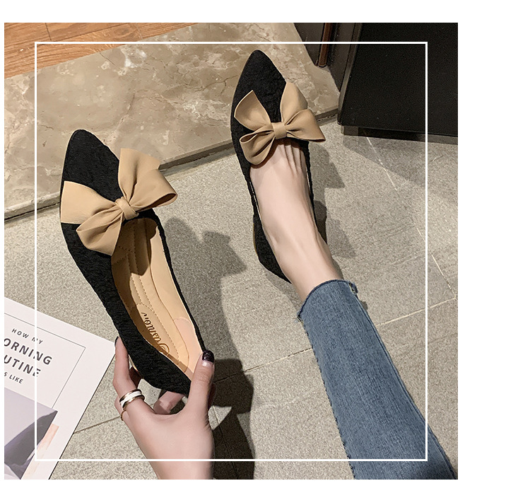 싱글 레이어 신발 여성의 새로운 콩 줄기 신발 2024 봄 뾰족한 봄과 가을 올 매치 플랫 보우 플랫 힐 싱글 레이어 신발 여성용