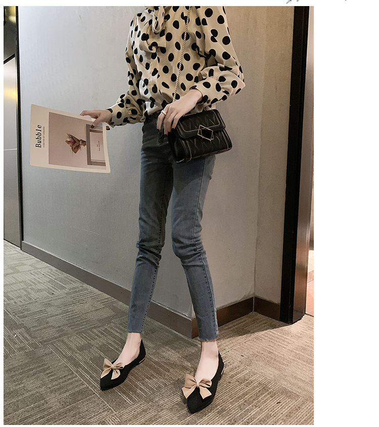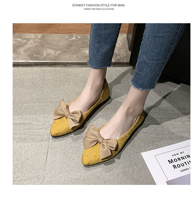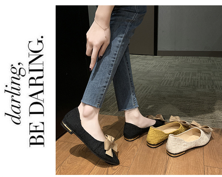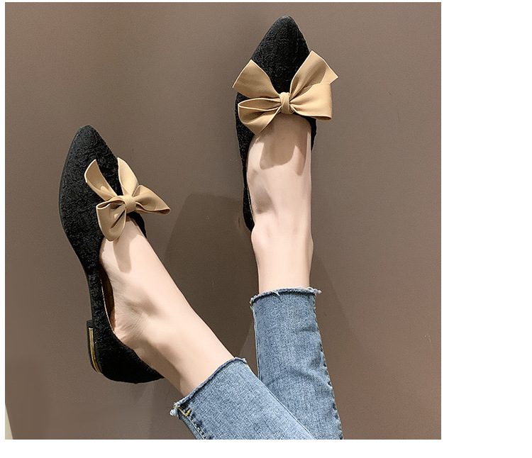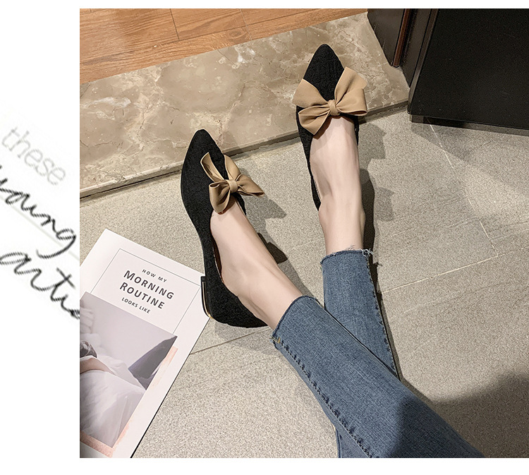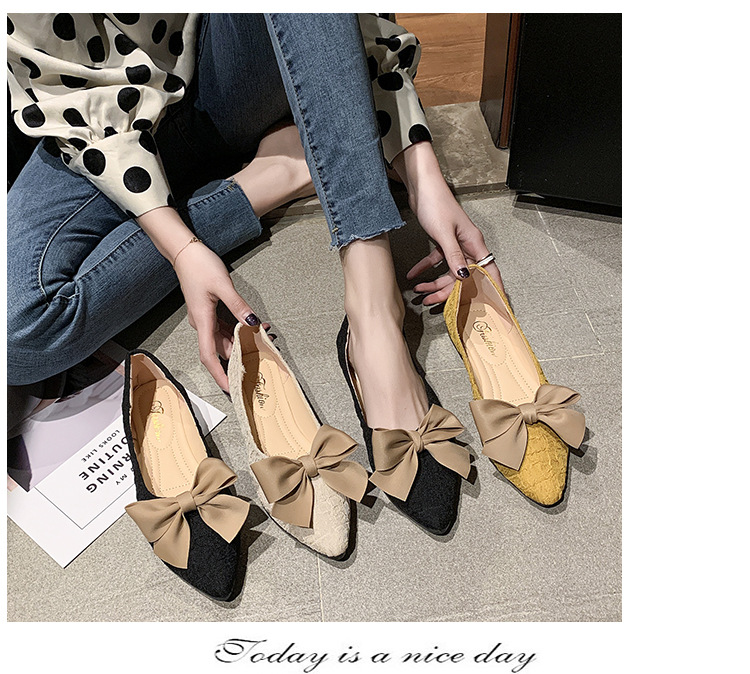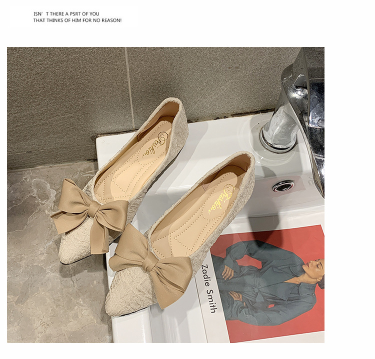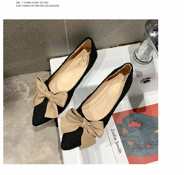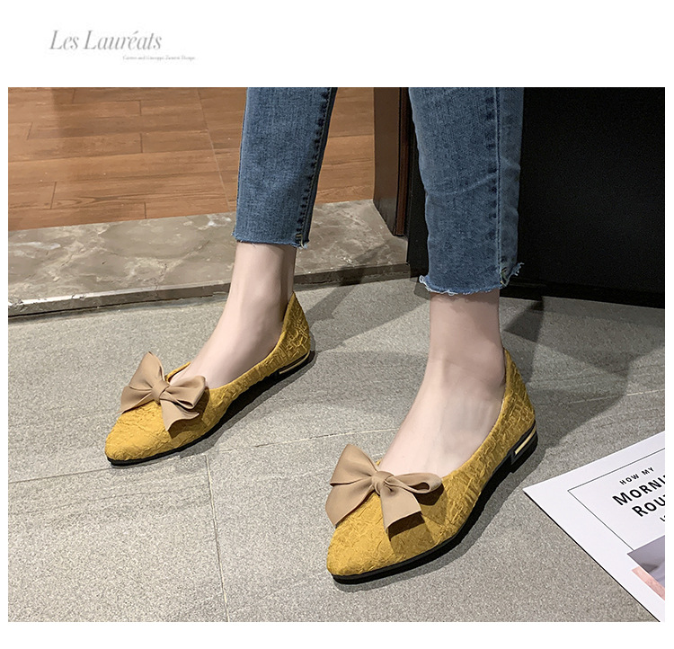 싱글 레이어 신발 여성의 새로운 콩 줄기 신발 2024 봄 뾰족한 봄과 가을 올 매치 플랫 보우 플랫 힐 싱글 레이어 신발 여성용