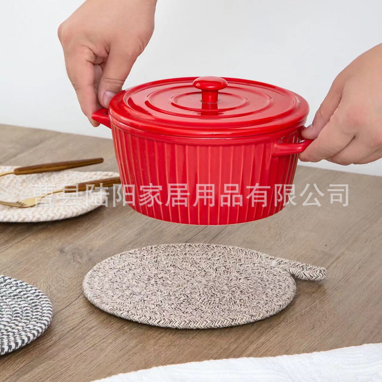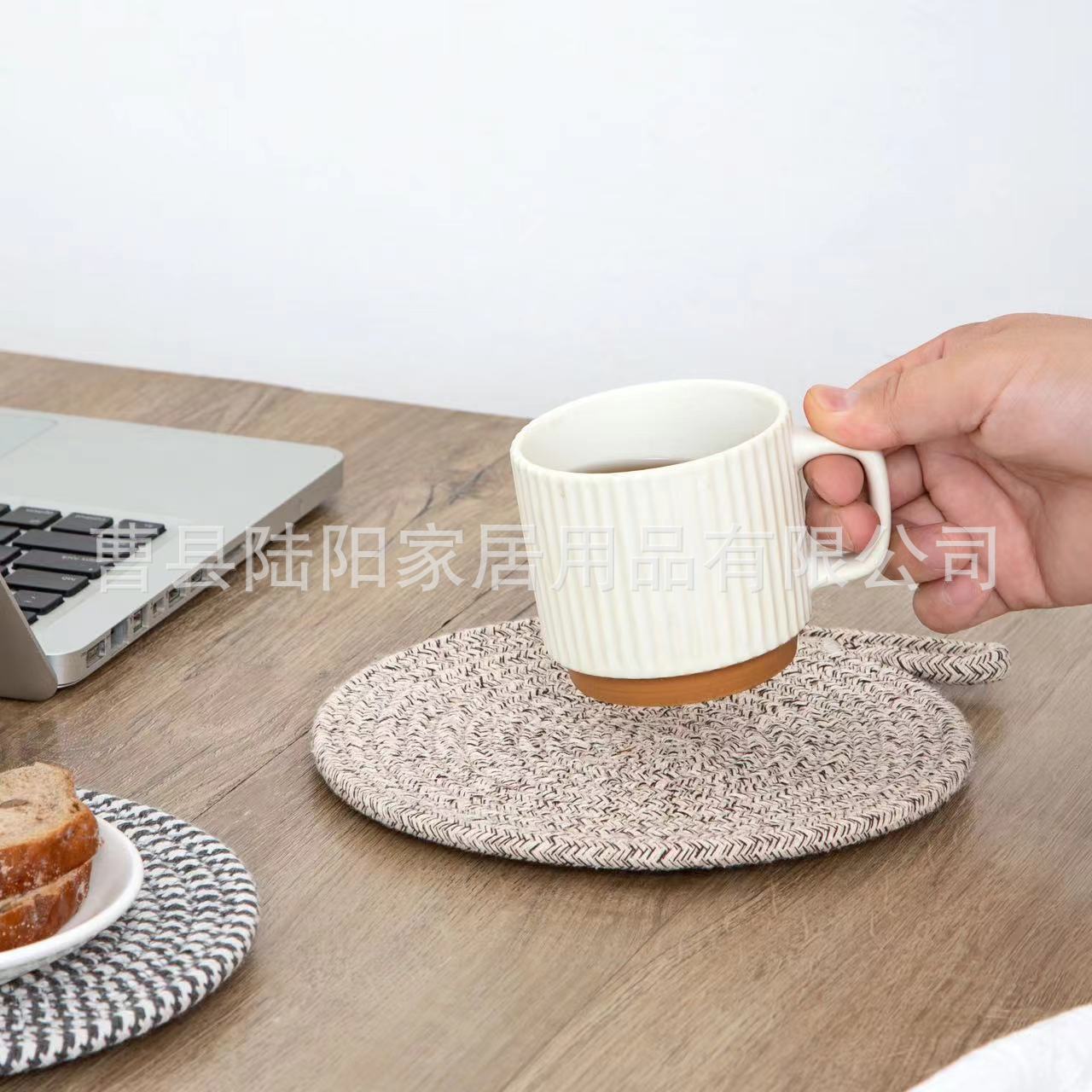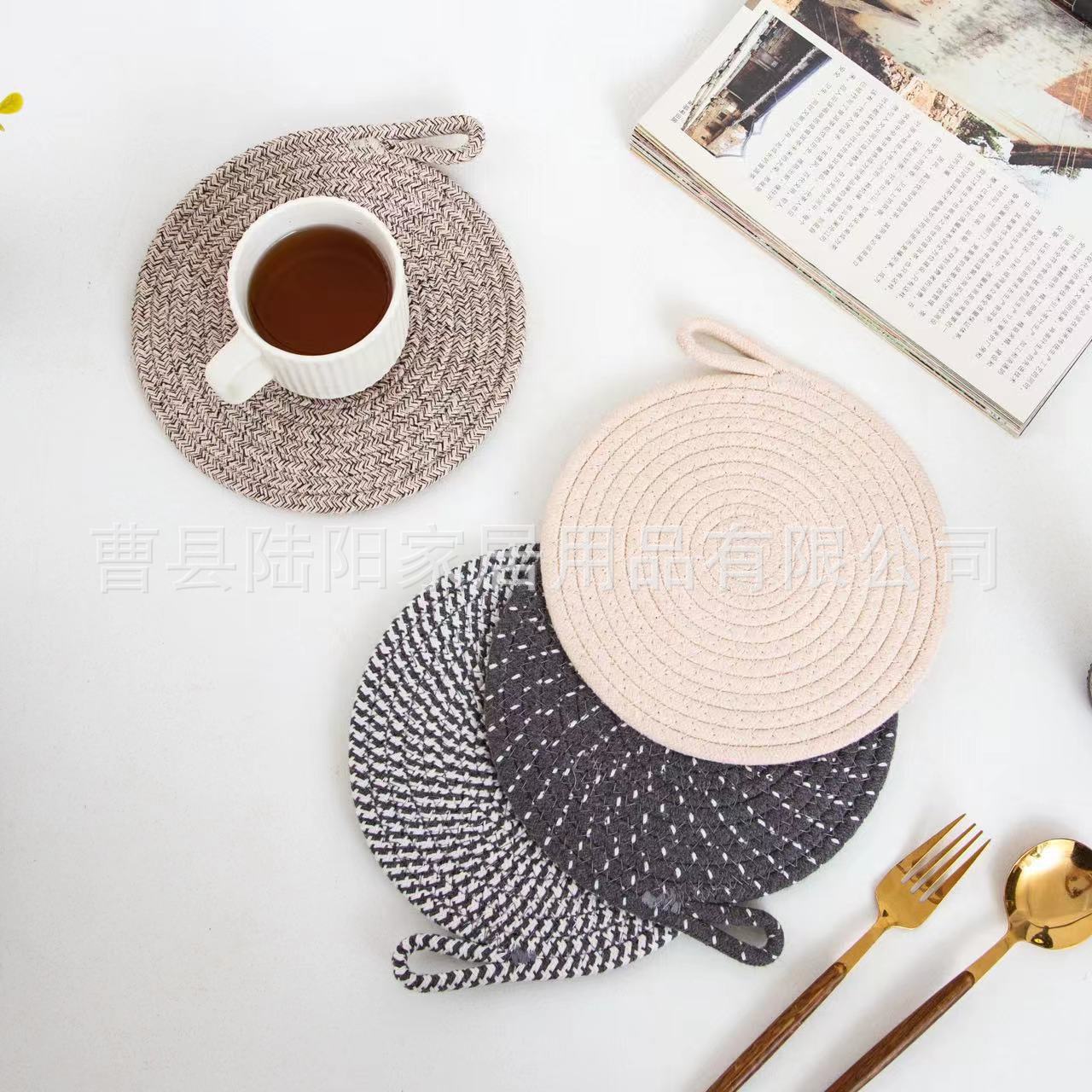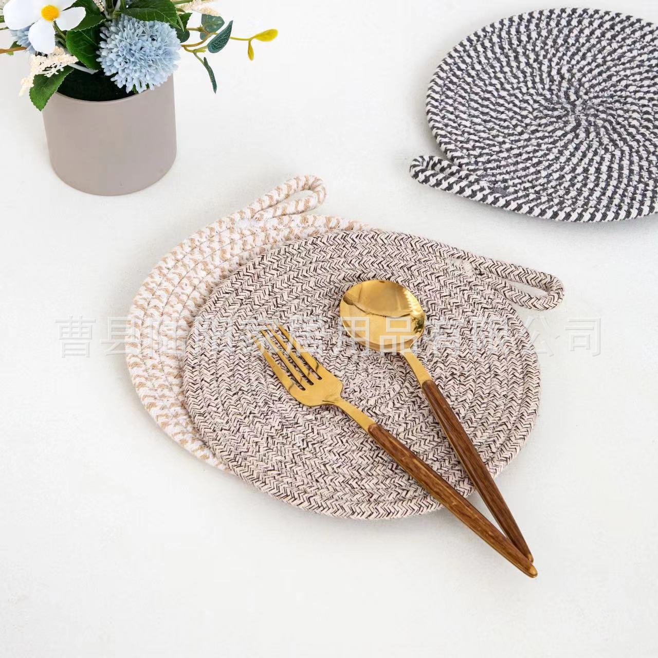 북유럽 면 로프 꼰 장소 매트 라운드 코튼 짠 코스터 모래 냄비 매트 주방 식탁 두꺼운 꼰 단열 매트