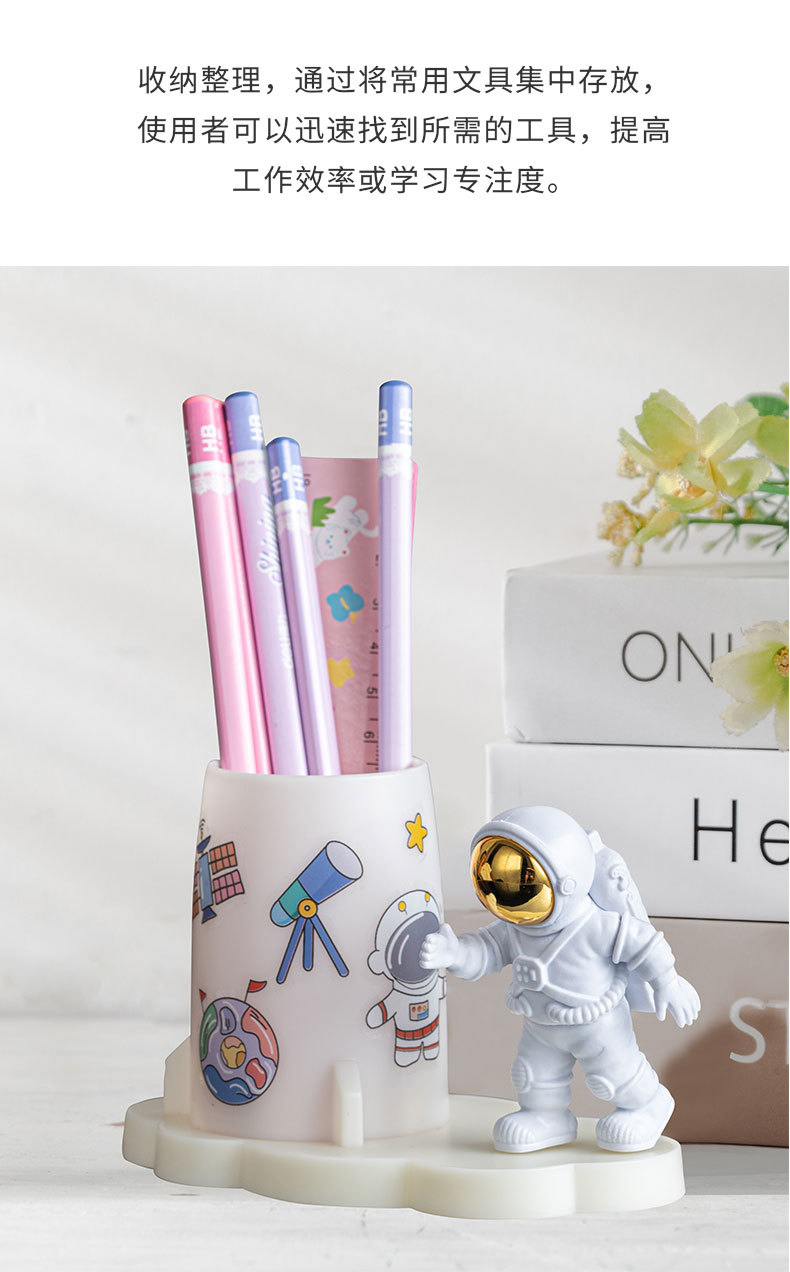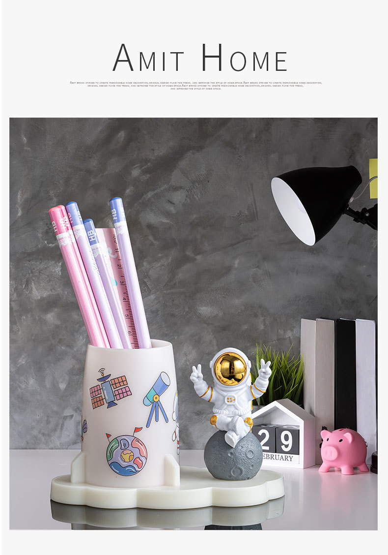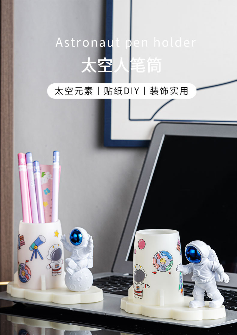 창조적 인 만화 귀여운 우주인 장식품 사무실 데스크탑 저장 어린이 방 학생 문구 우주 비행사 펜