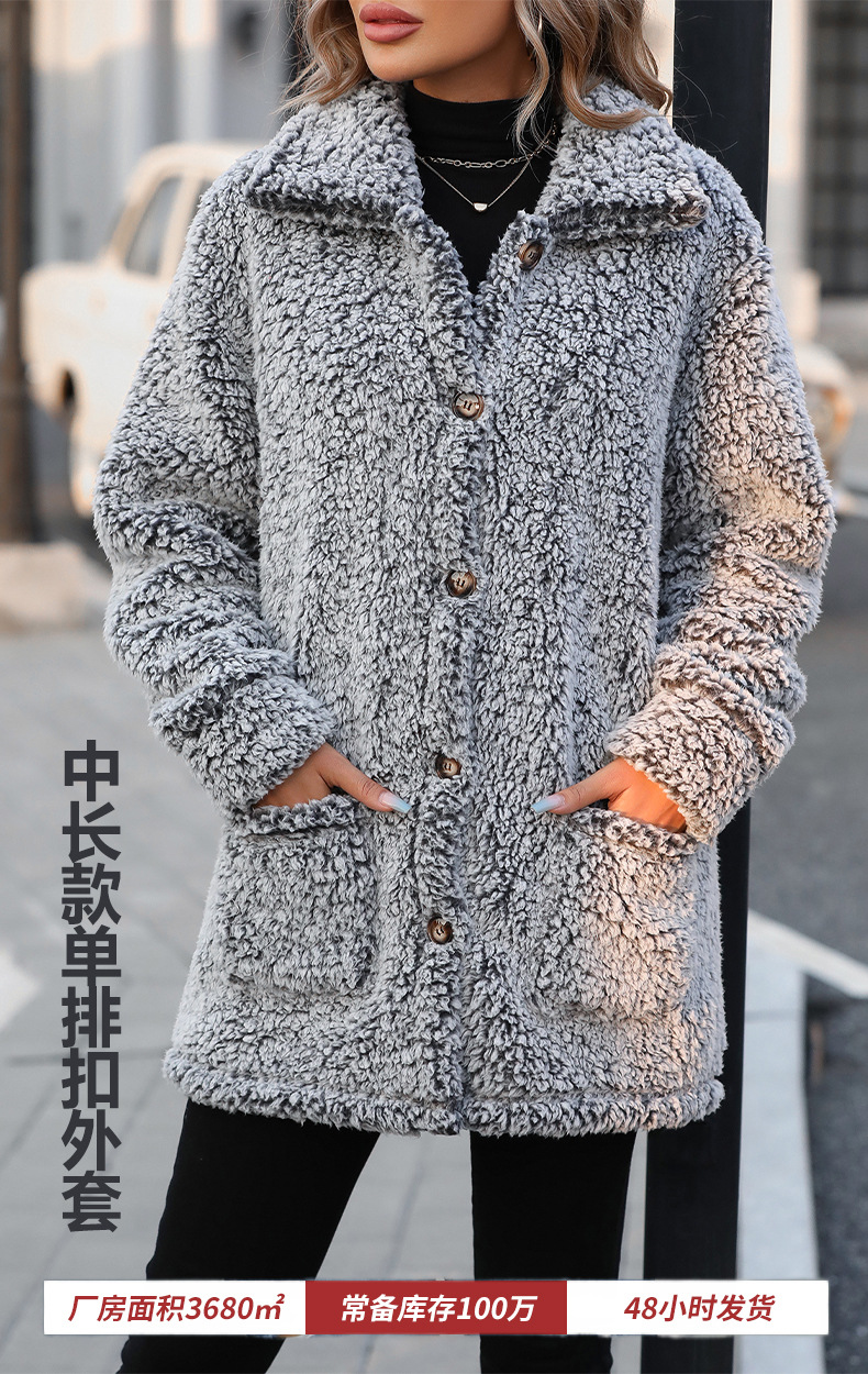 플래시 2024 가을과 겨울 새로운 국경 여성 유럽과 미국의 캐주얼 루즈 옷깃 싱글 브레스트 미드 길이 카디건 재킷