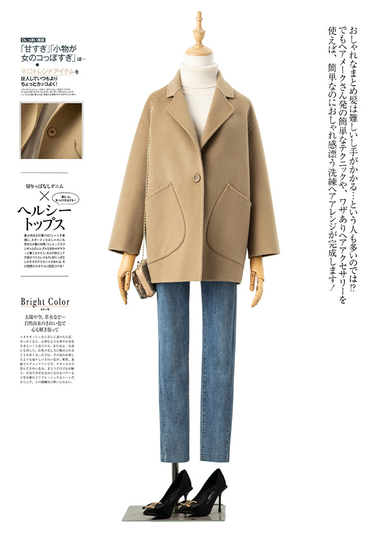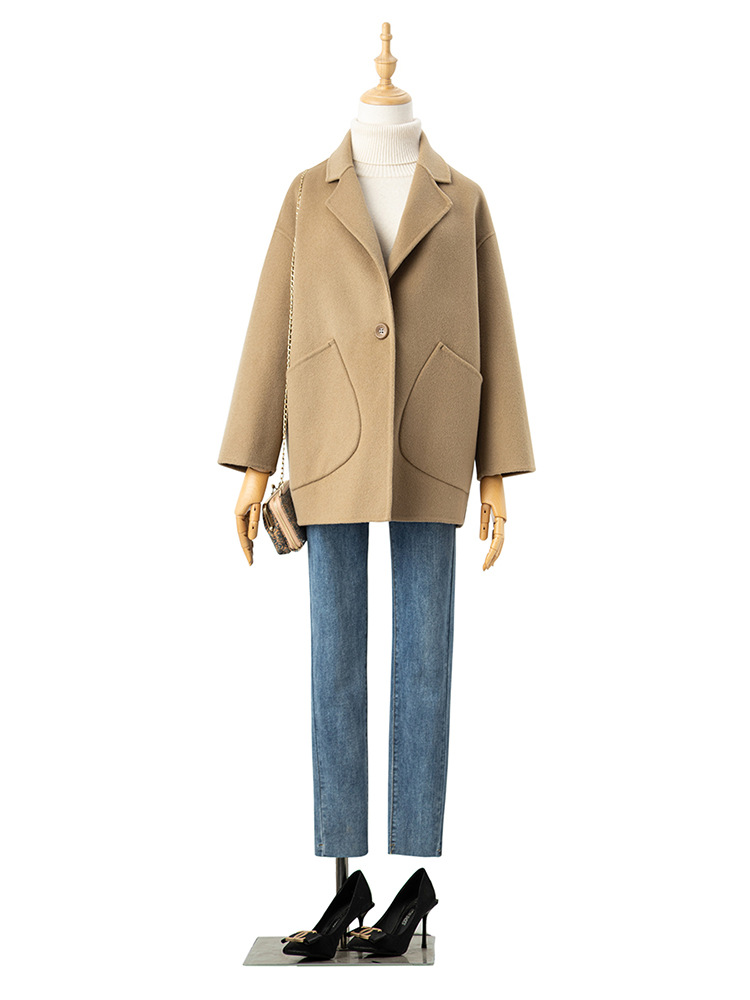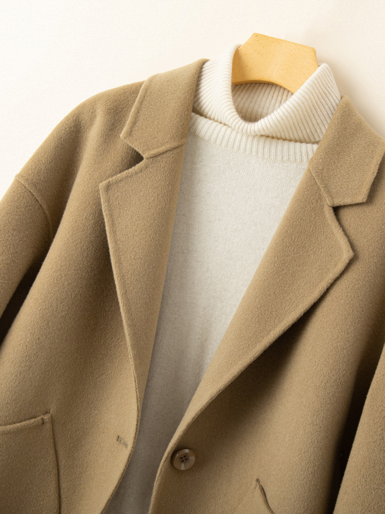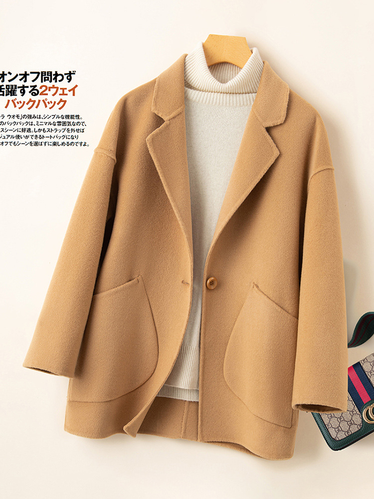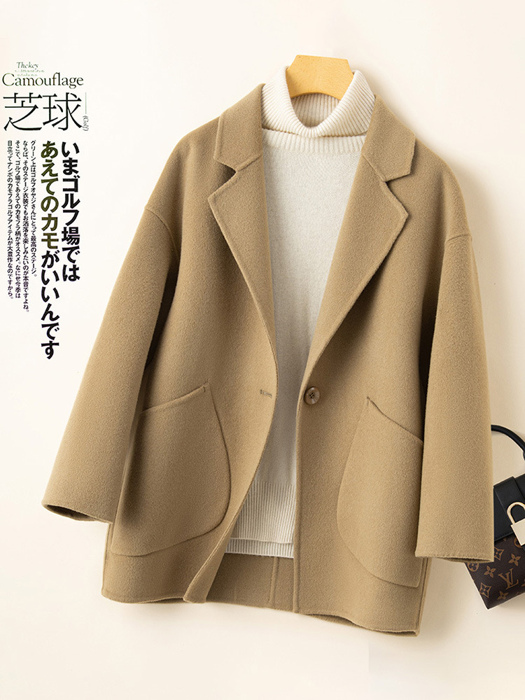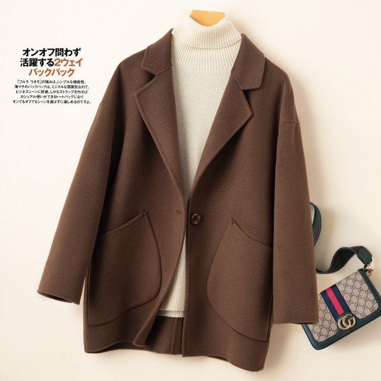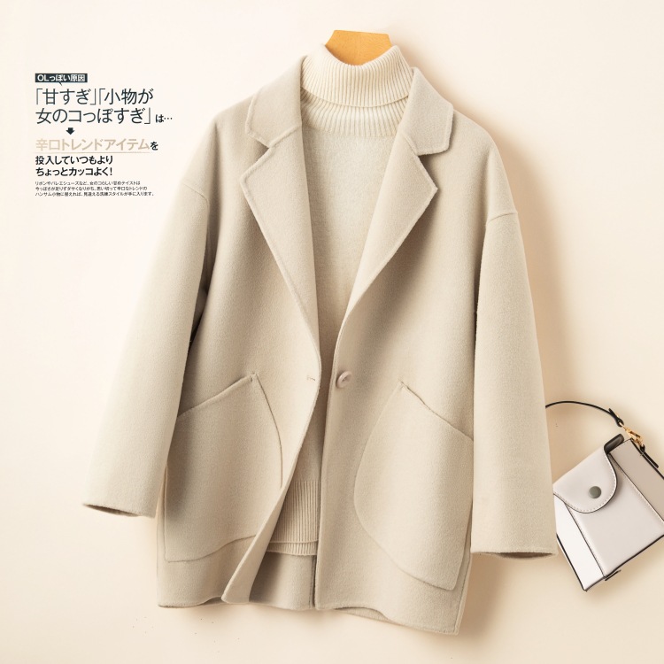 코순형 양면 양면 외투 여성용 쇼트 24 가을 · 겨울 한국식 새 도착 작은 남자를위한 느슨한 와이드 와이드 울 코트