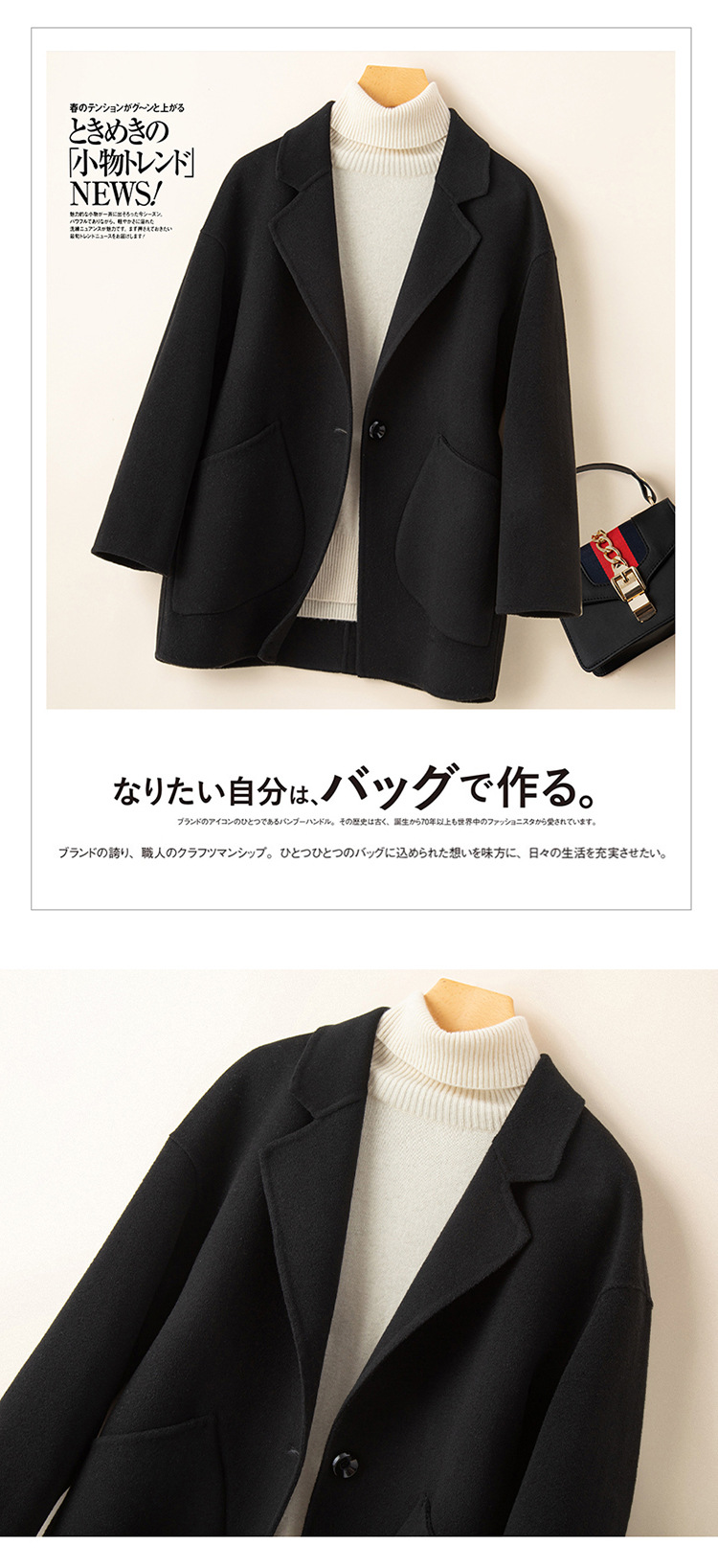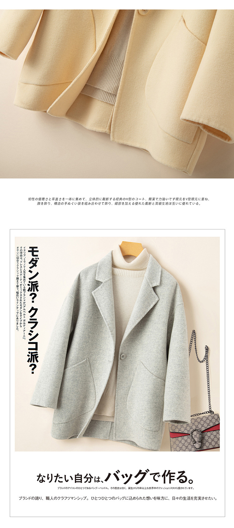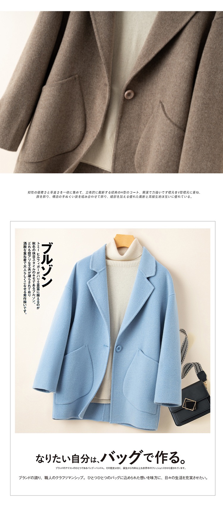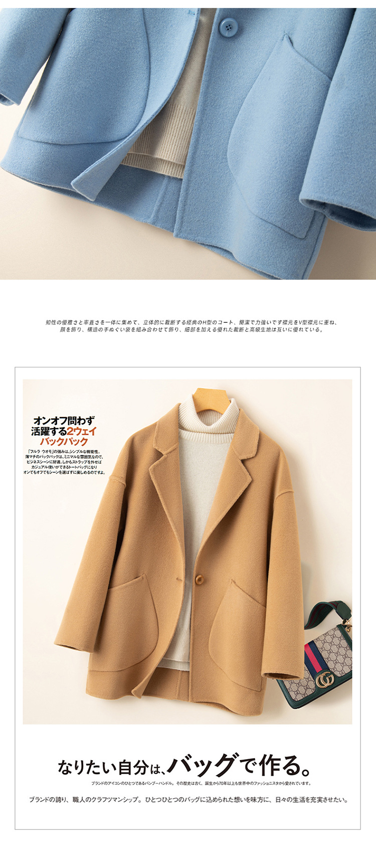 코순형 양면 양면 외투 여성용 쇼트 24 가을 · 겨울 한국식 새 도착 작은 남자를위한 느슨한 와이드 와이드 울 코트