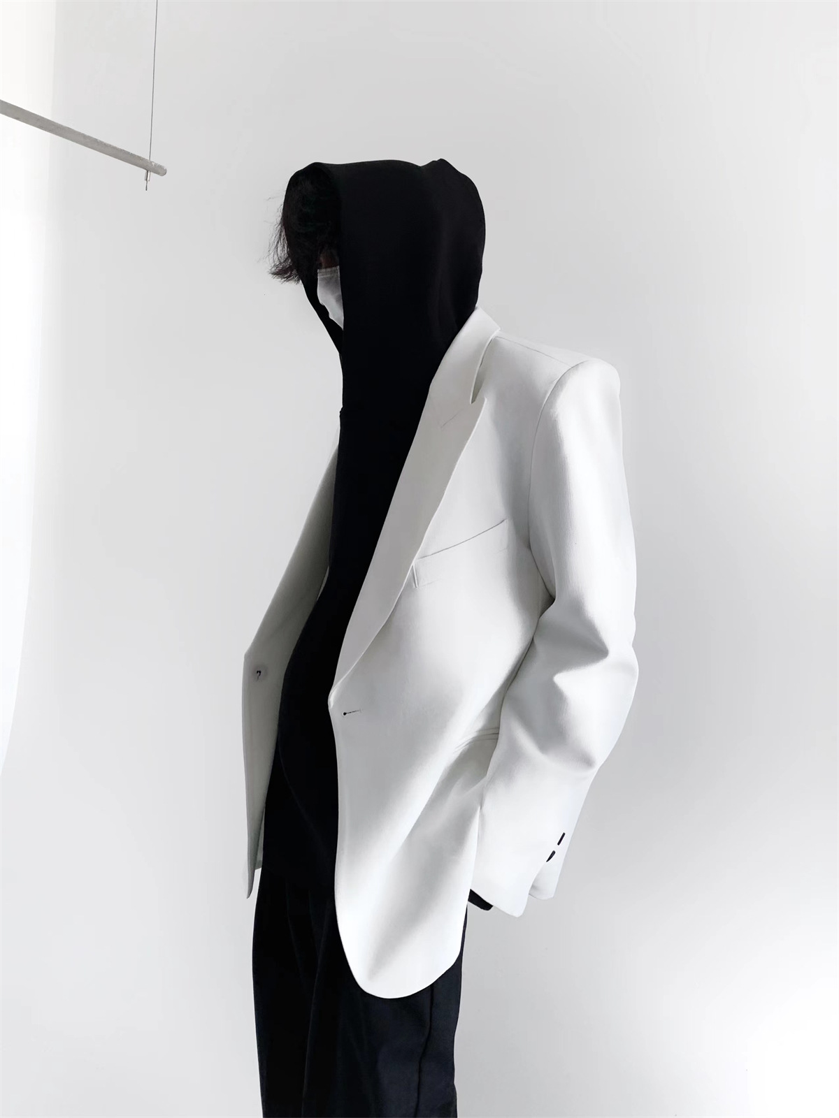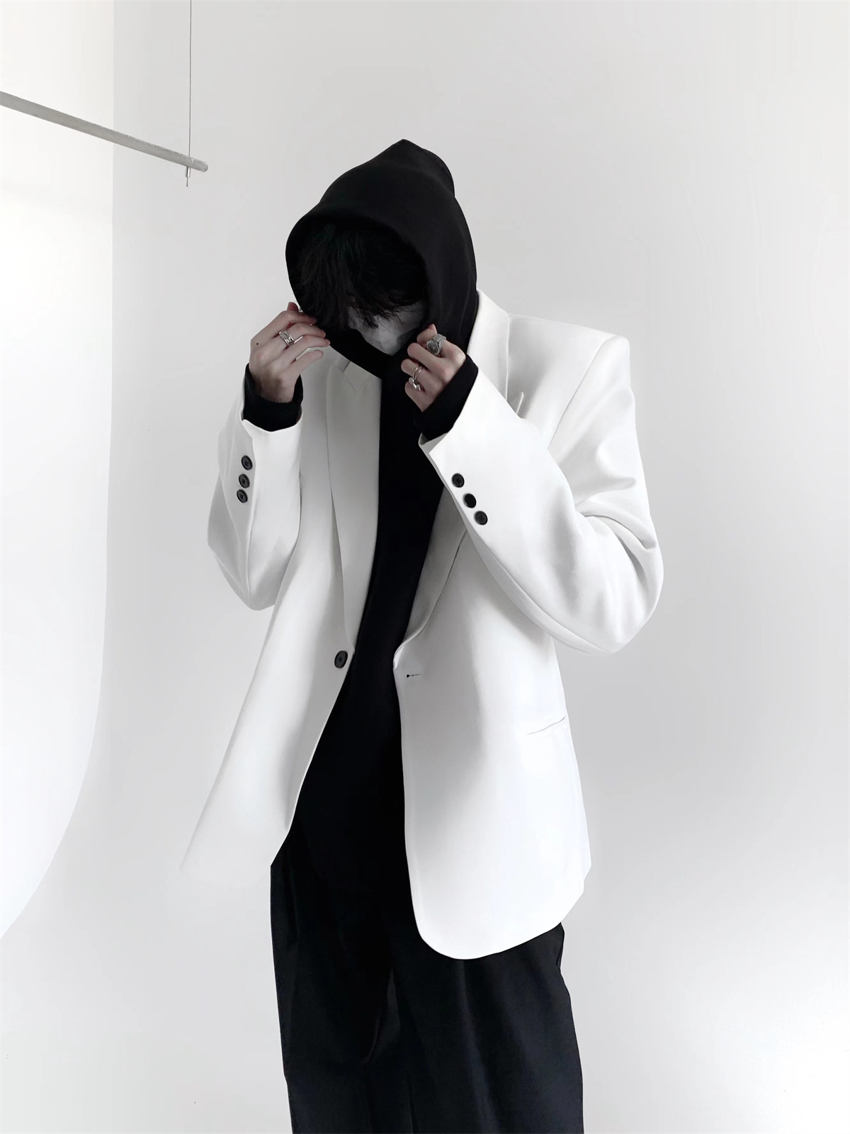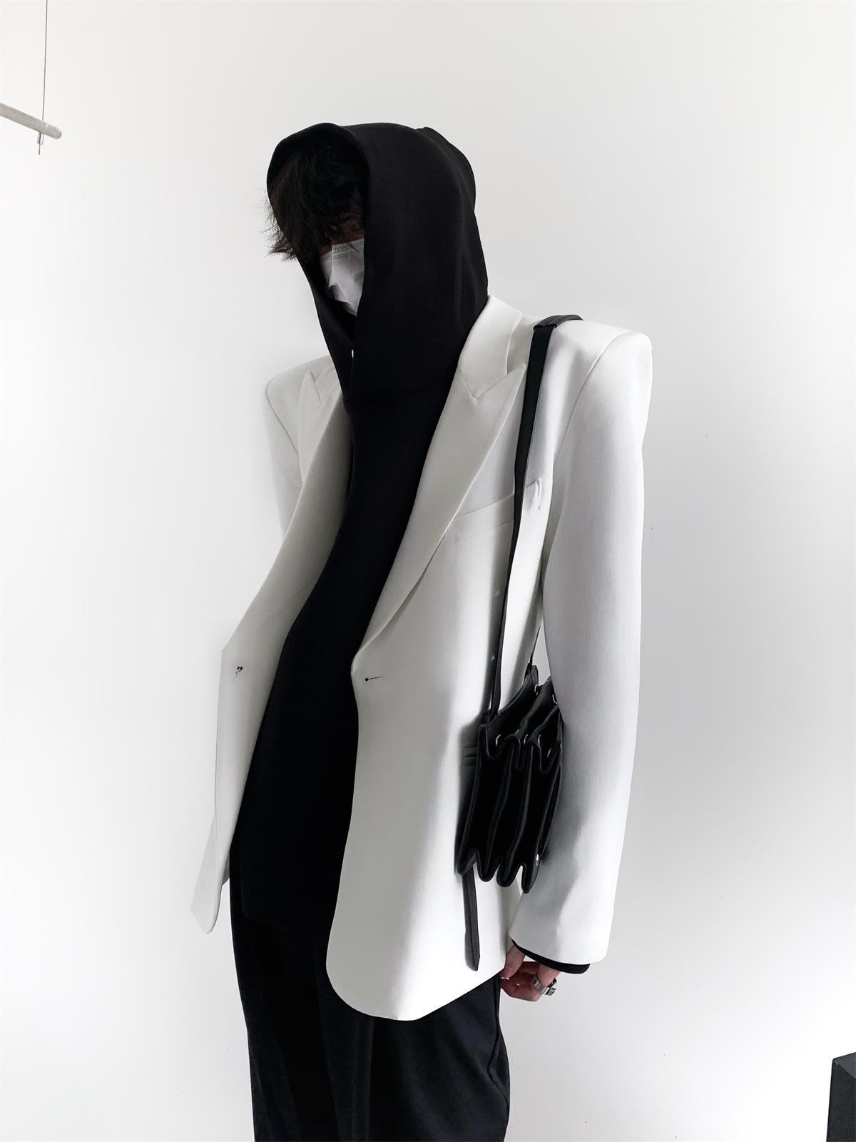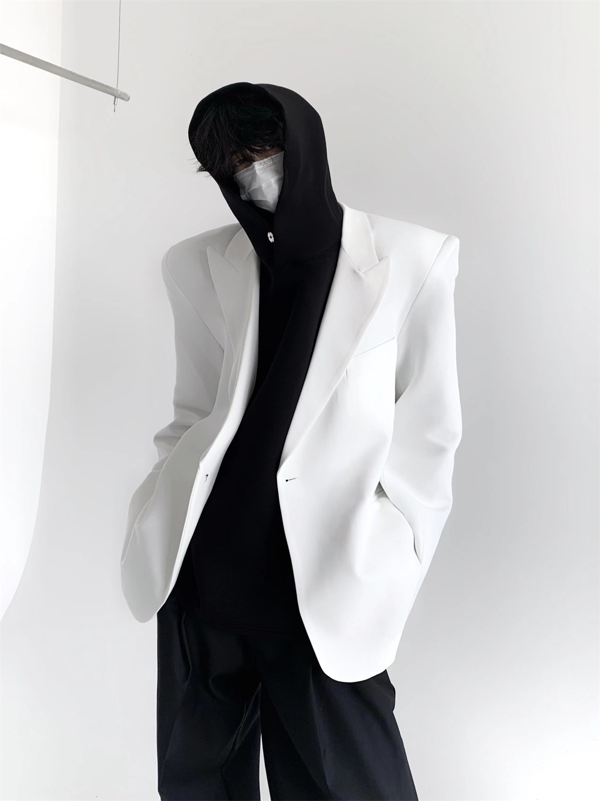 하이 엔드 느낌 ruffian 잘 생긴 거북 칼라 화이트 패딩 숄더패드 세트 재킷 남자 한국 트렌드 캐주얼 편안한 드레이프 싱글 세트