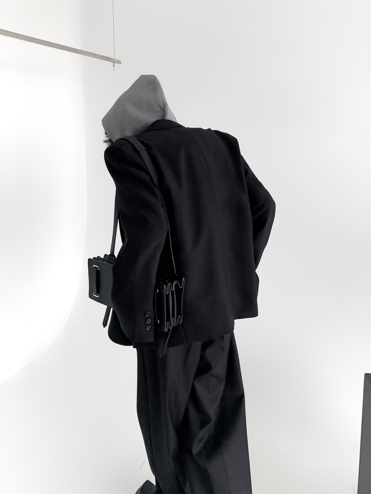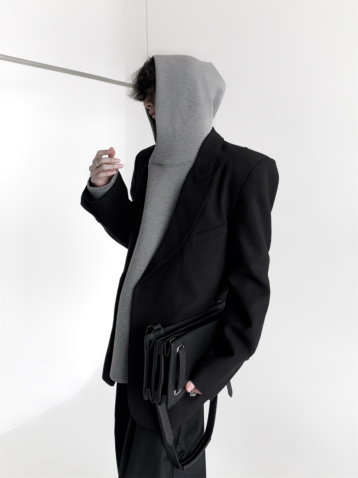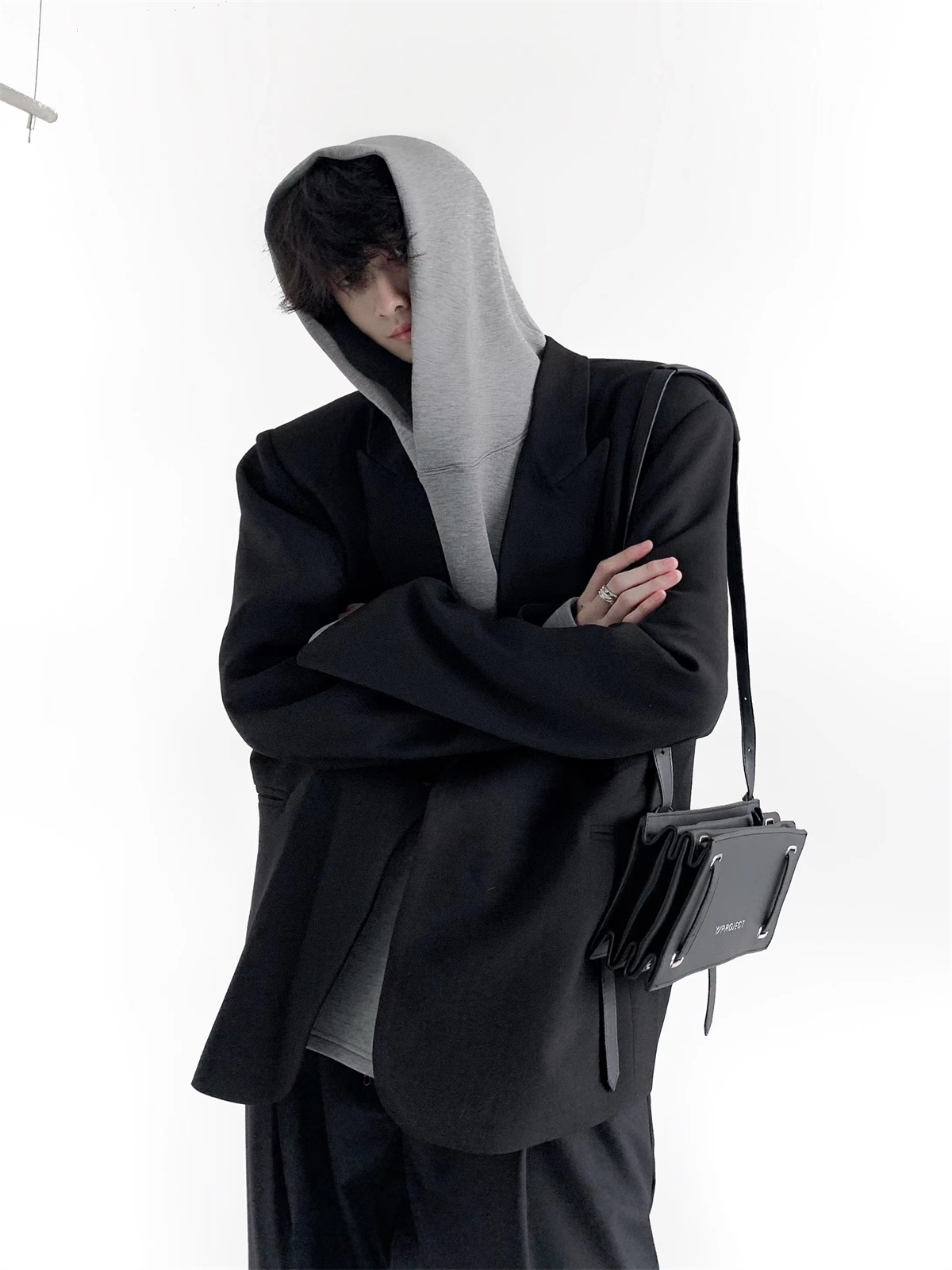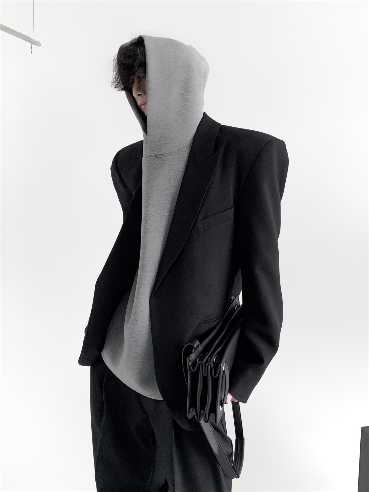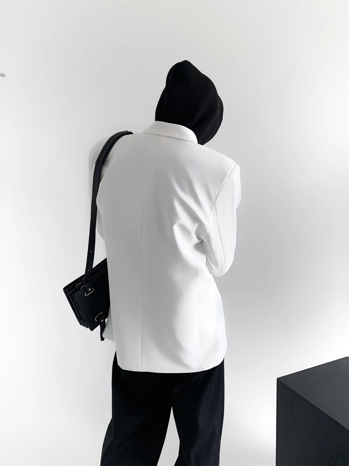 하이 엔드 느낌 ruffian 잘 생긴 거북 칼라 화이트 패딩 숄더패드 세트 재킷 남자 한국 트렌드 캐주얼 편안한 드레이프 싱글 세트