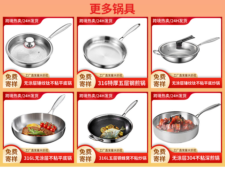 엄밀히 선정 316 스테인레스 스틸 팬 가정용 벌집 비 스틱 팬 튀긴 계란 스테이크 팬 유니버설 프라이팬 팬 팬