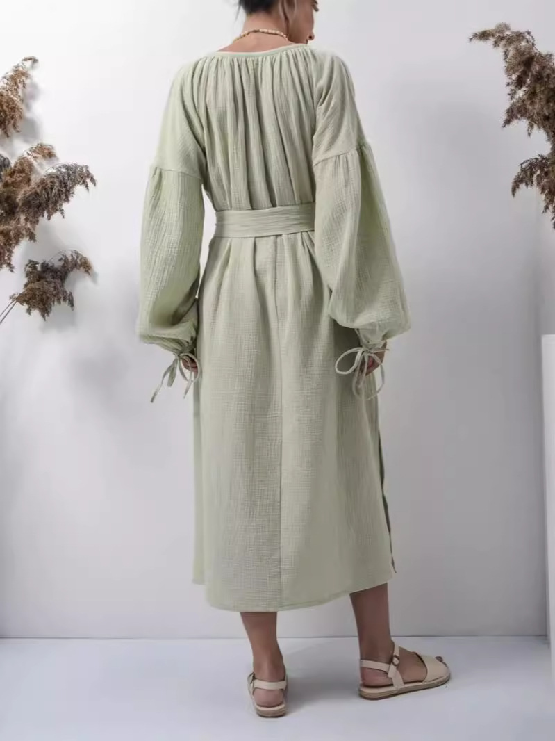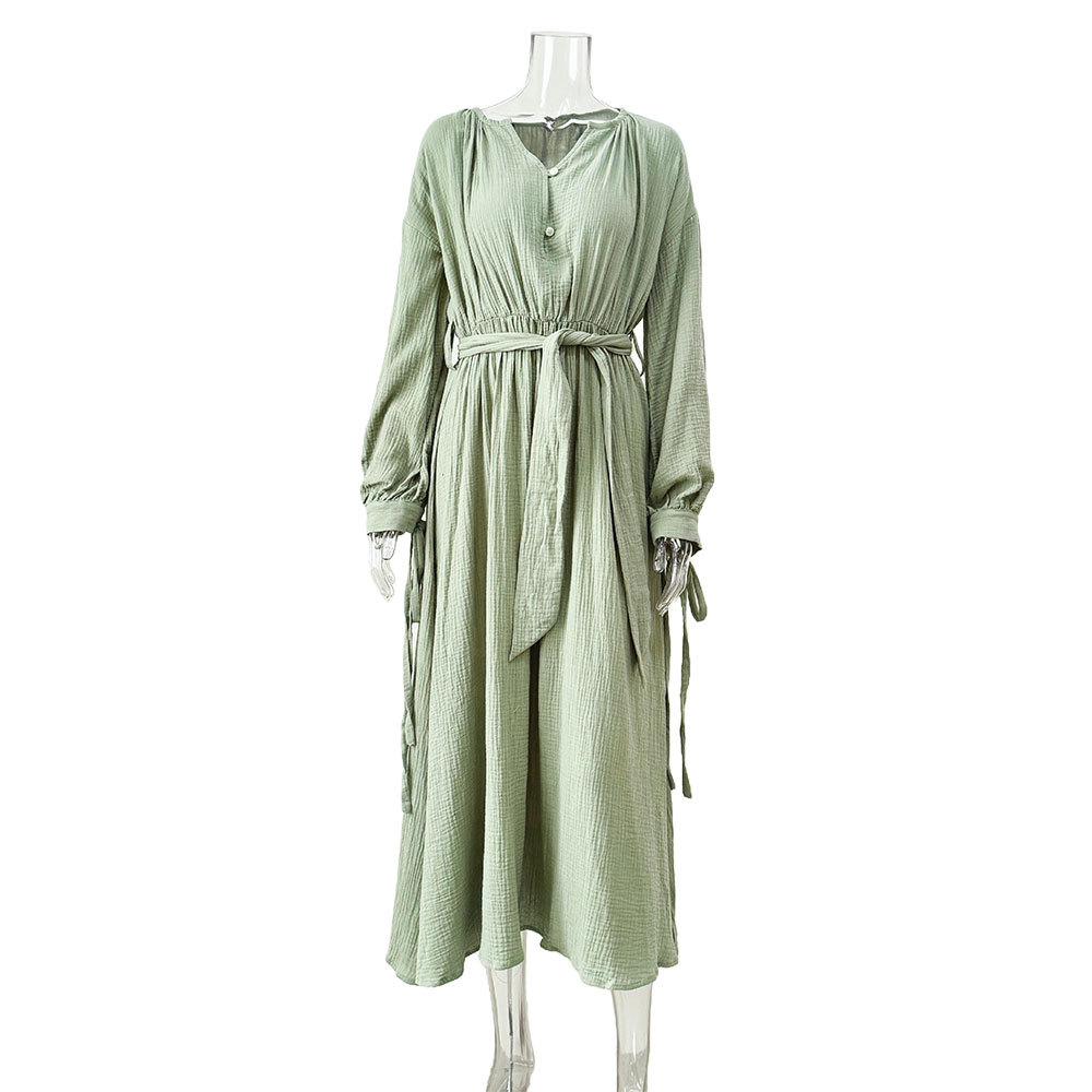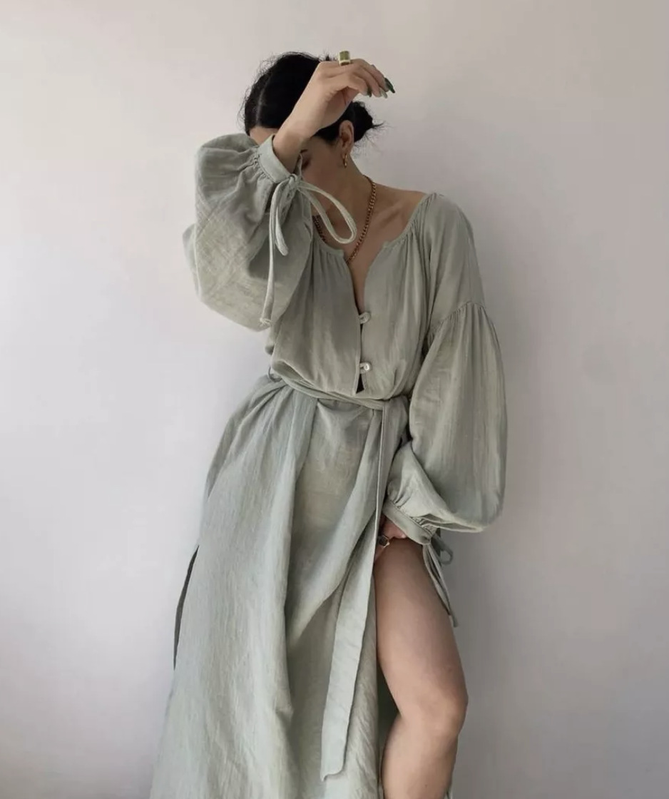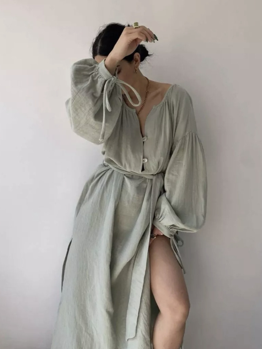 Платье 프랑스 스타일 게으른 느슨한 미디 원피스 유럽과 미국 여성의 우아한 디자인 긴 소매 원피스