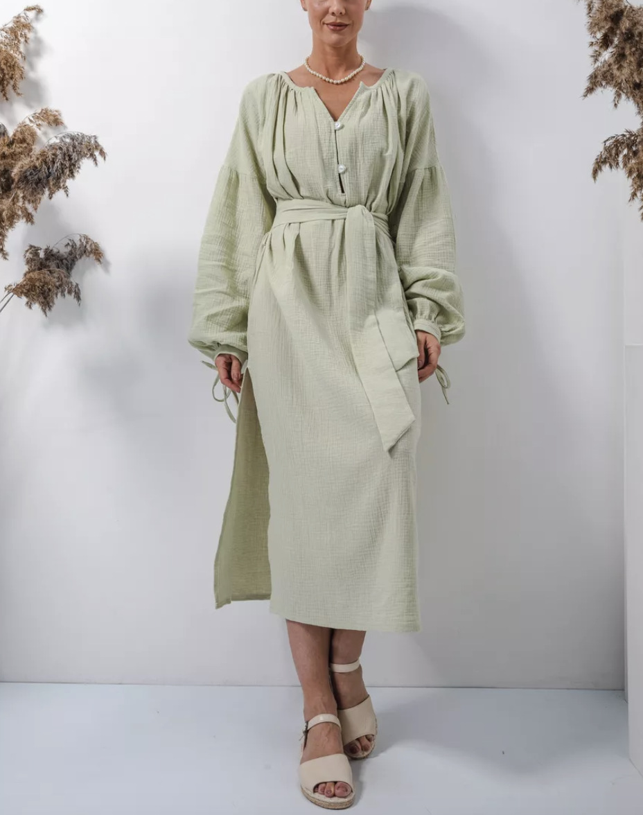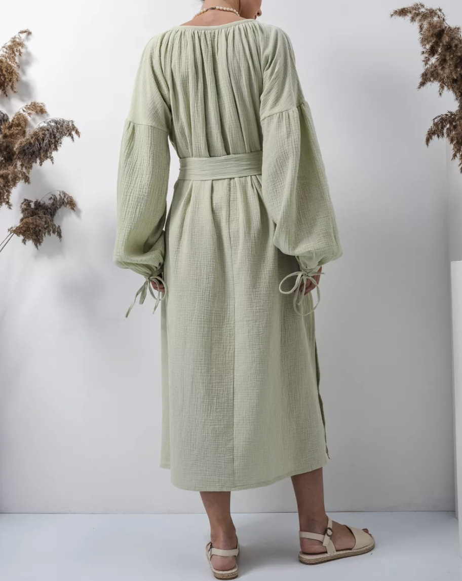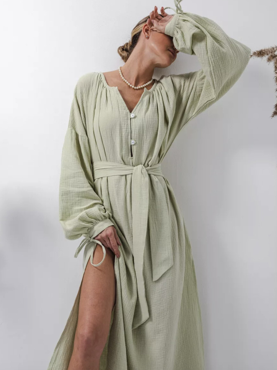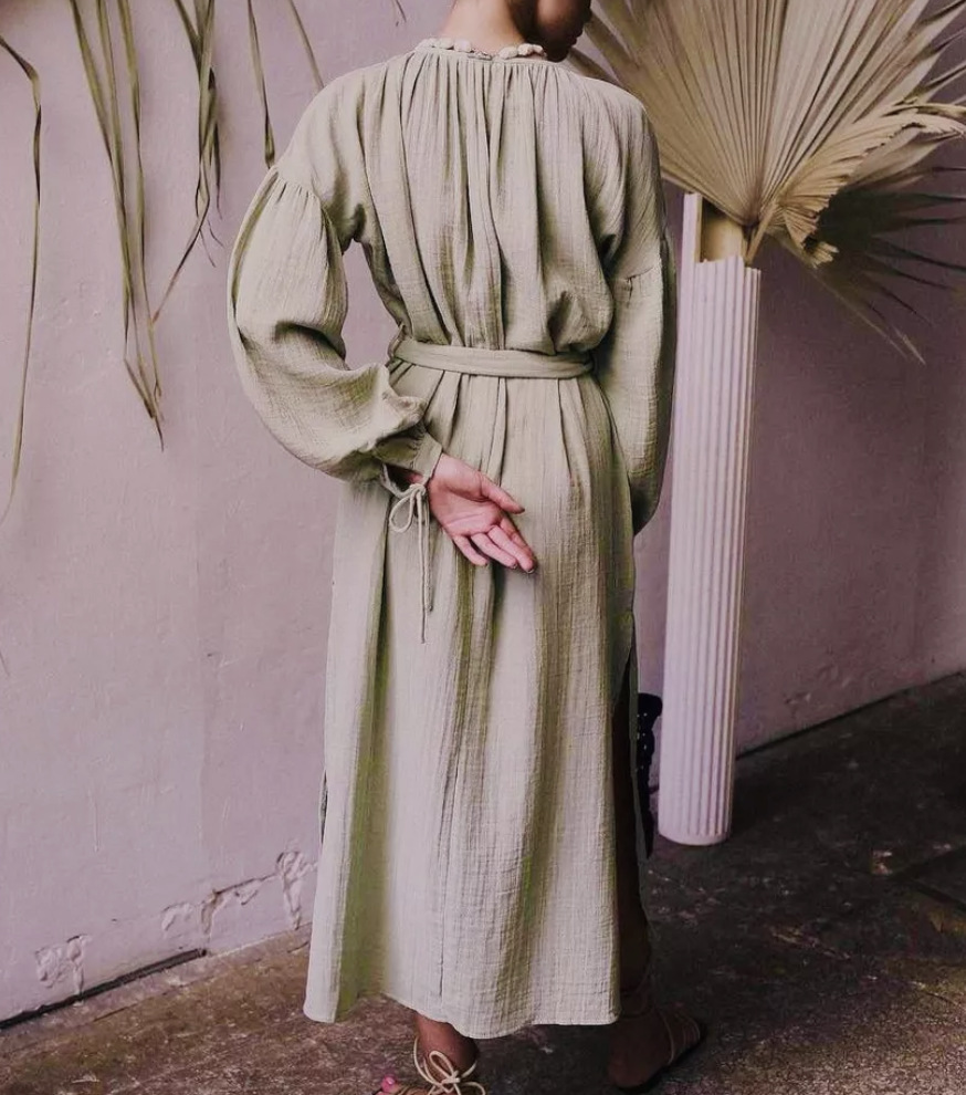 Платье 프랑스 스타일 게으른 느슨한 미디 원피스 유럽과 미국 여성의 우아한 디자인 긴 소매 원피스