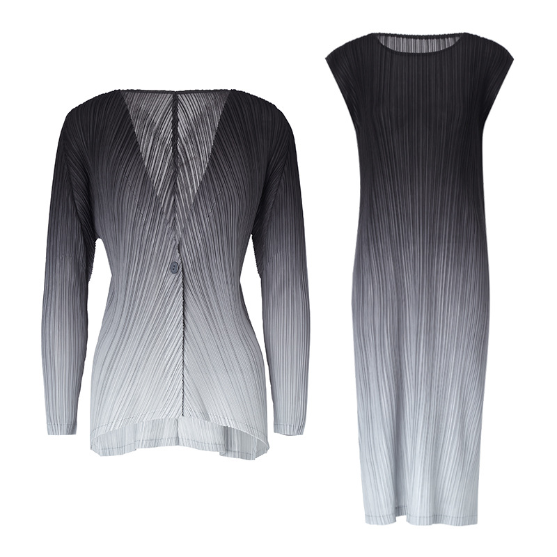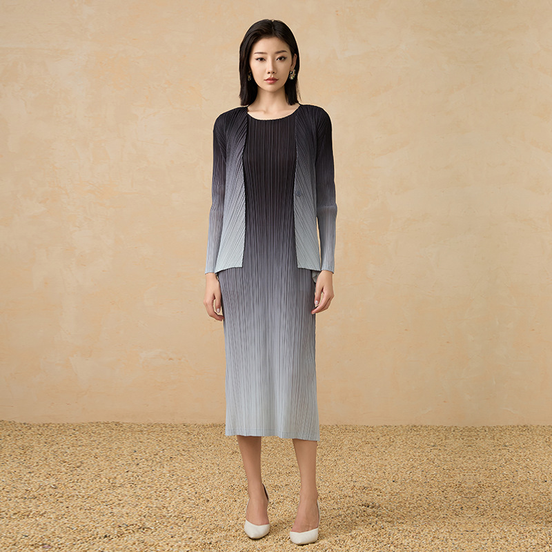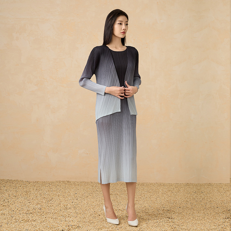 그라데이션 컬러 투피스 세트 2025 플리츠 숏 가디건 재킷 새로운 슬리밍 하이엔드 스타일리쉬 여성 다용도 조끼 스커트