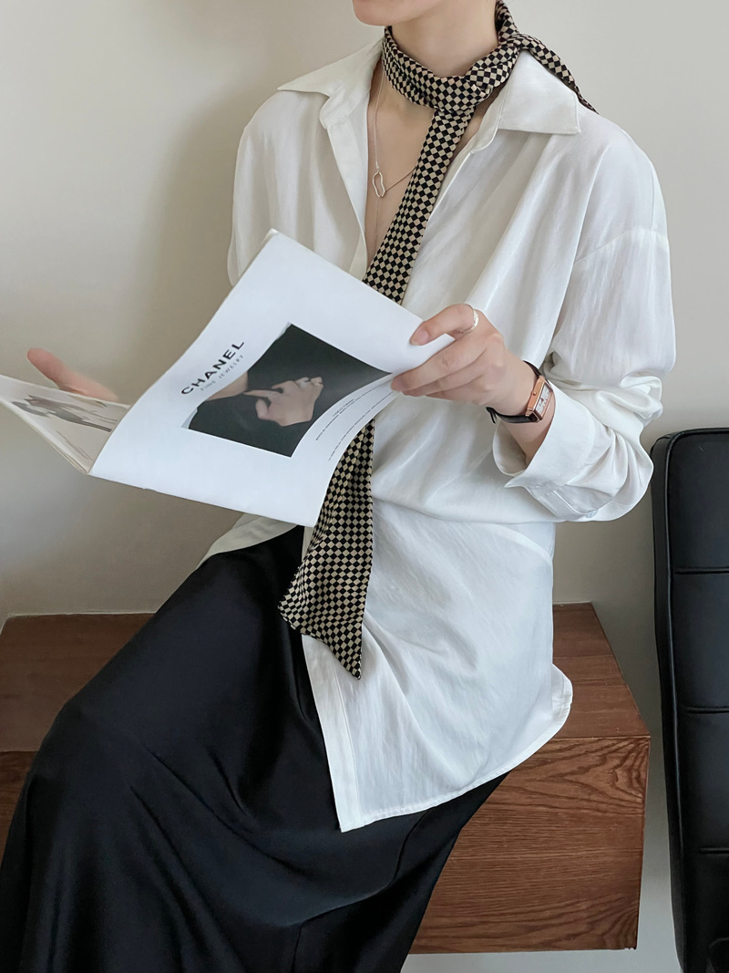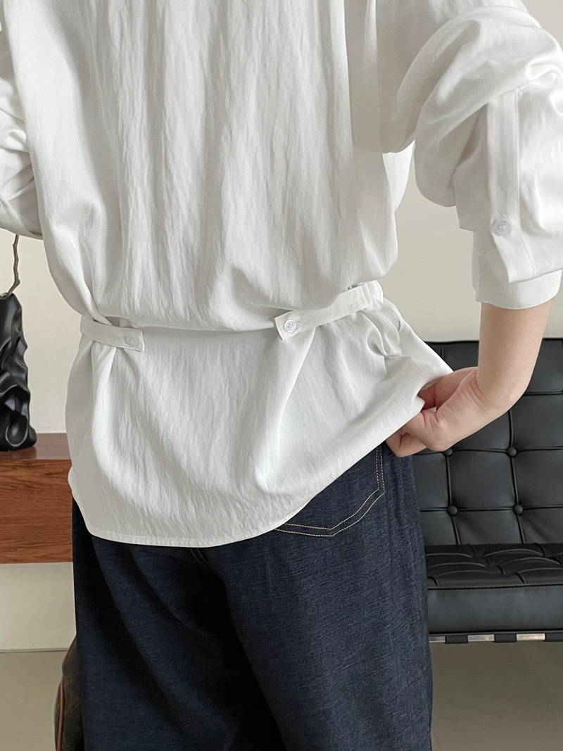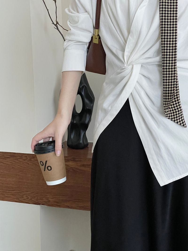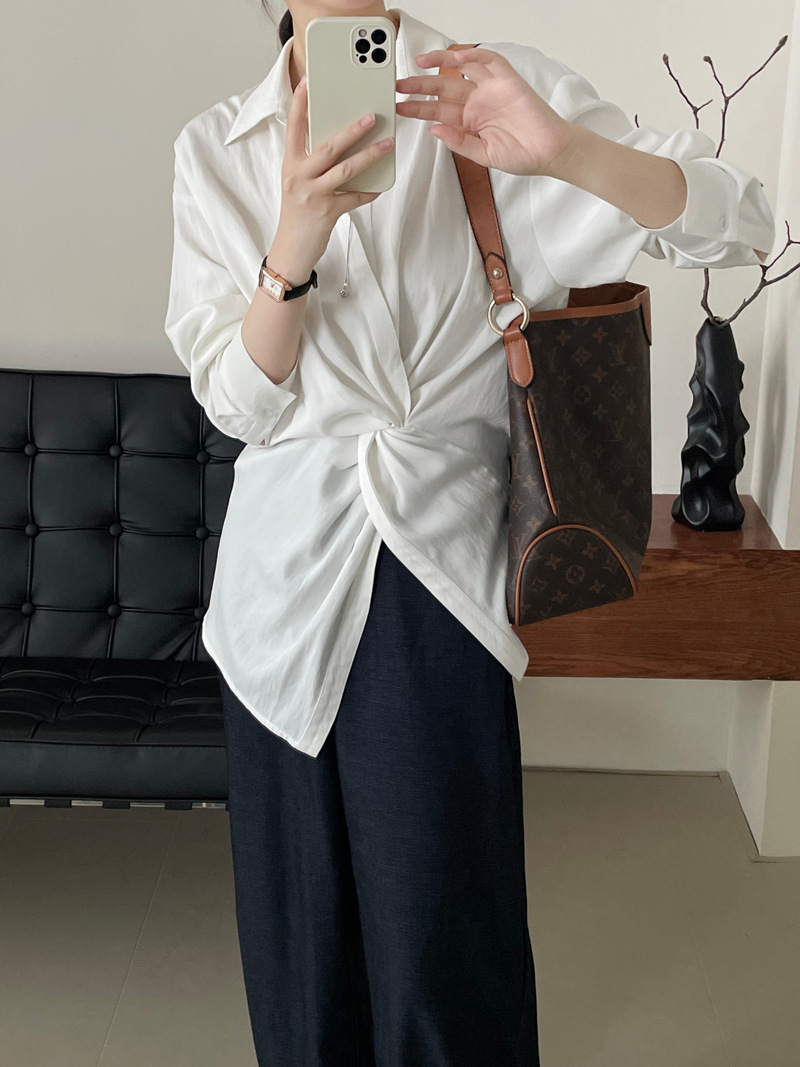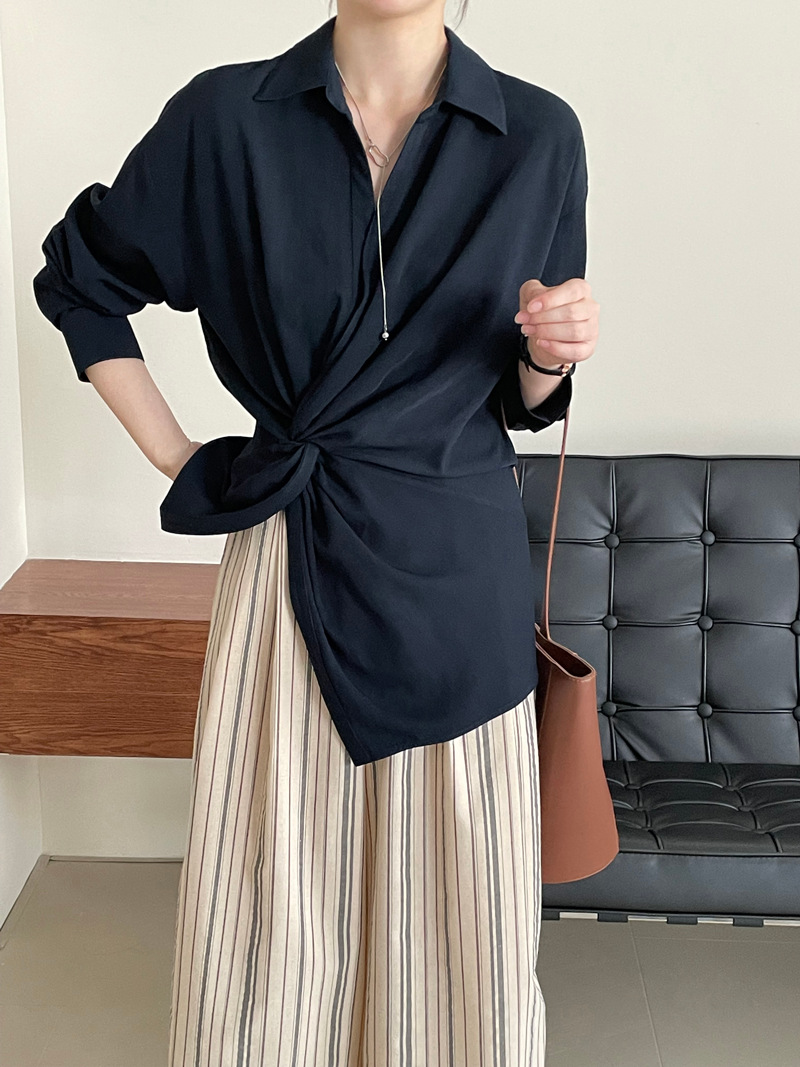 아오카와 디자인 센스 허리 꼬임 조정 가능한 셔츠 여성의 프랑스 스타일 세련된 불규칙한 긴 소매 2589 셔츠