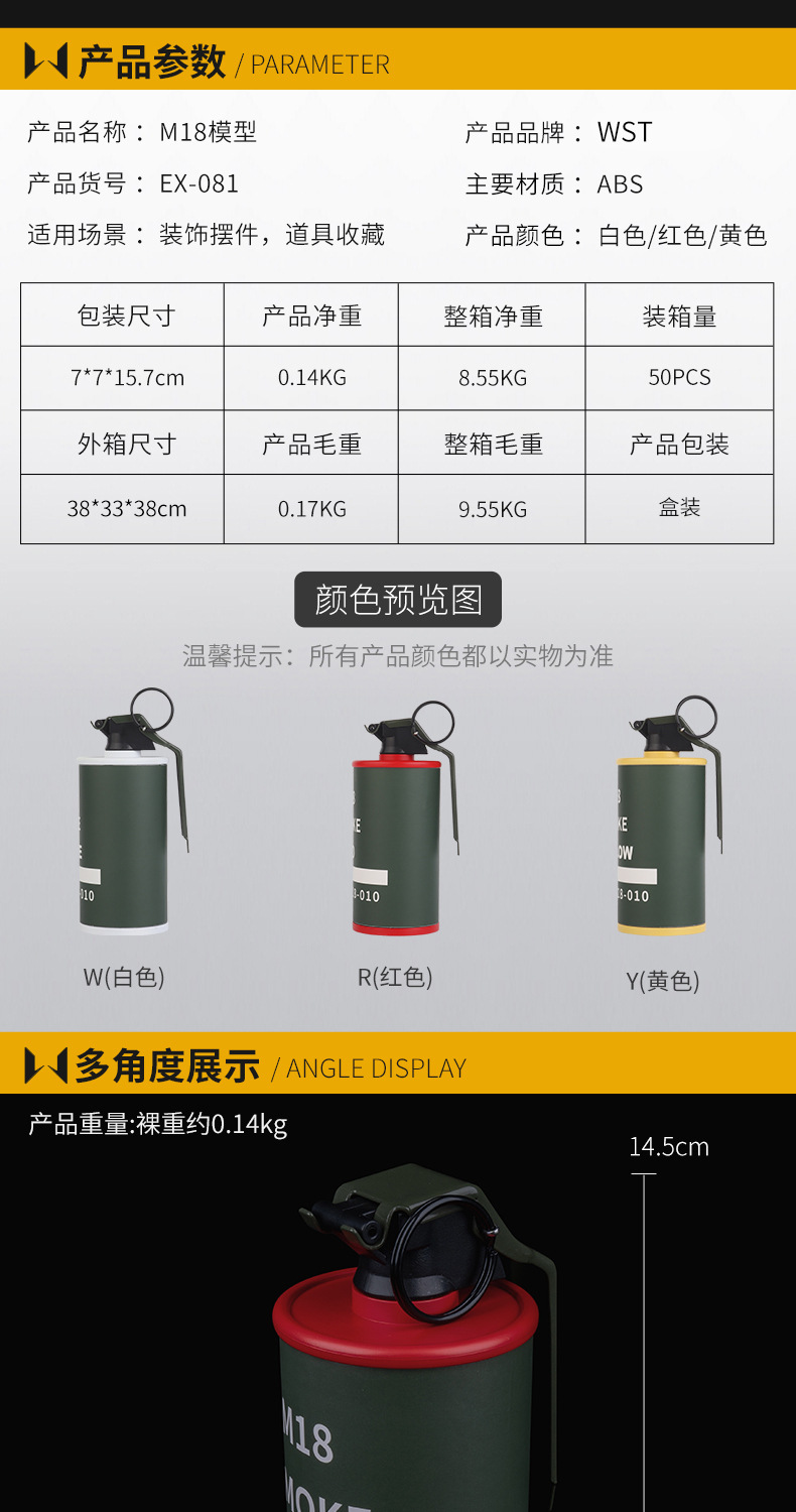 M18 연기 수류탄 당김 링은 영화 및 TV 소품 COD 전술 COSPLAY 모델 창조적 인 저장 탱크를 재생할 수 있습니다