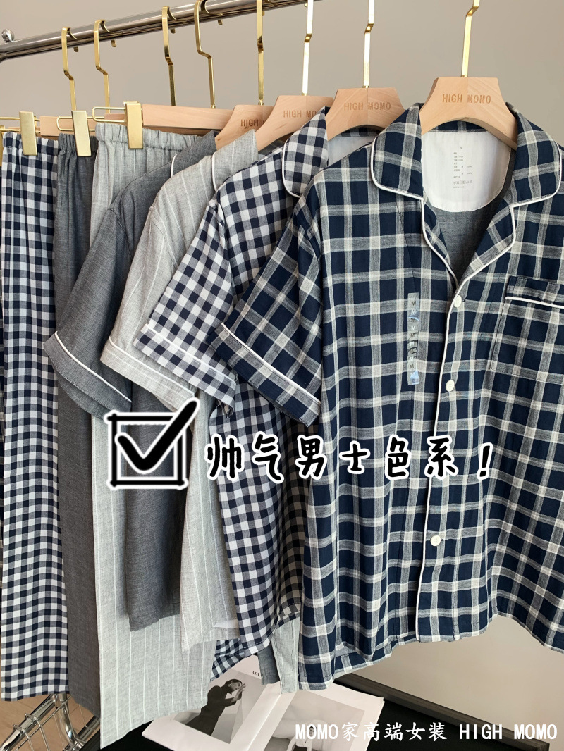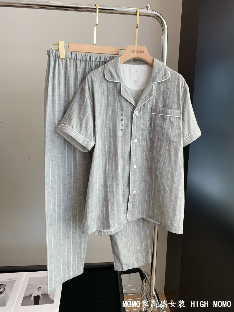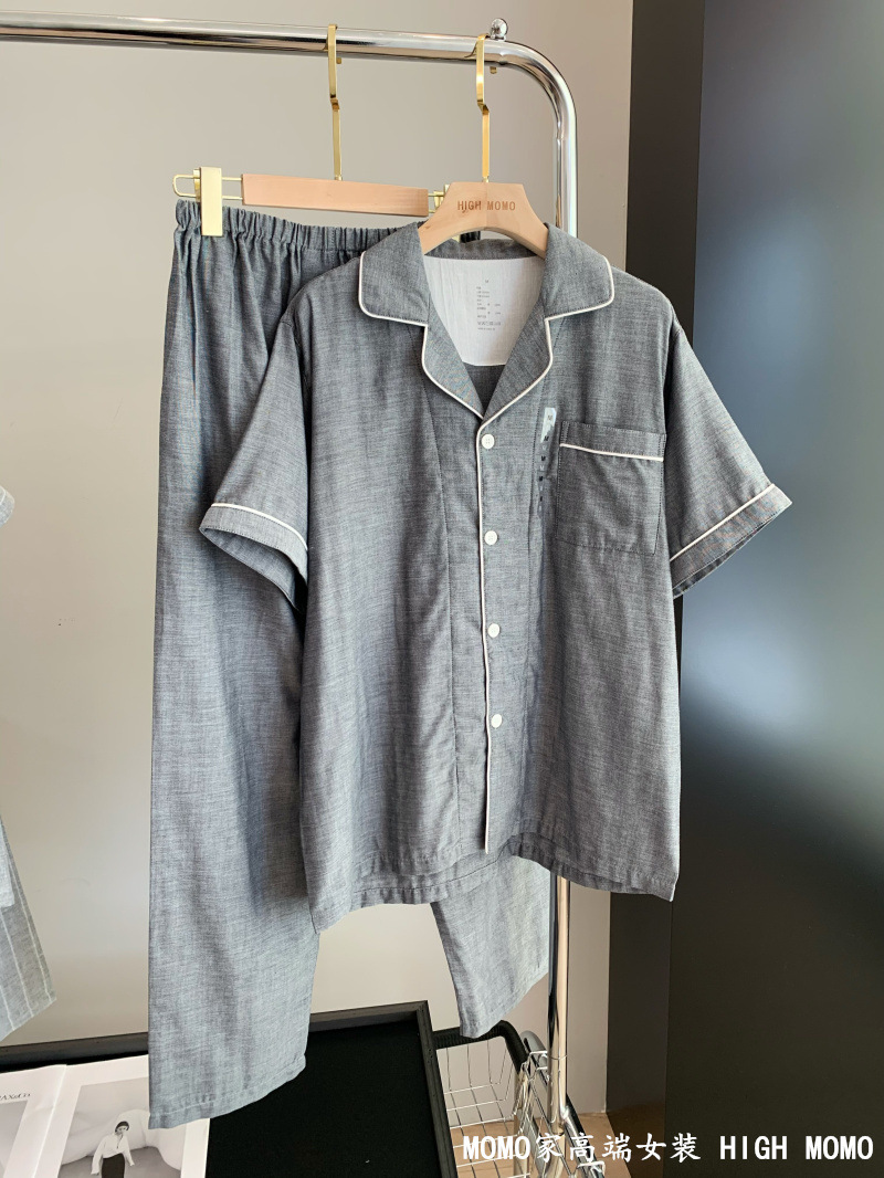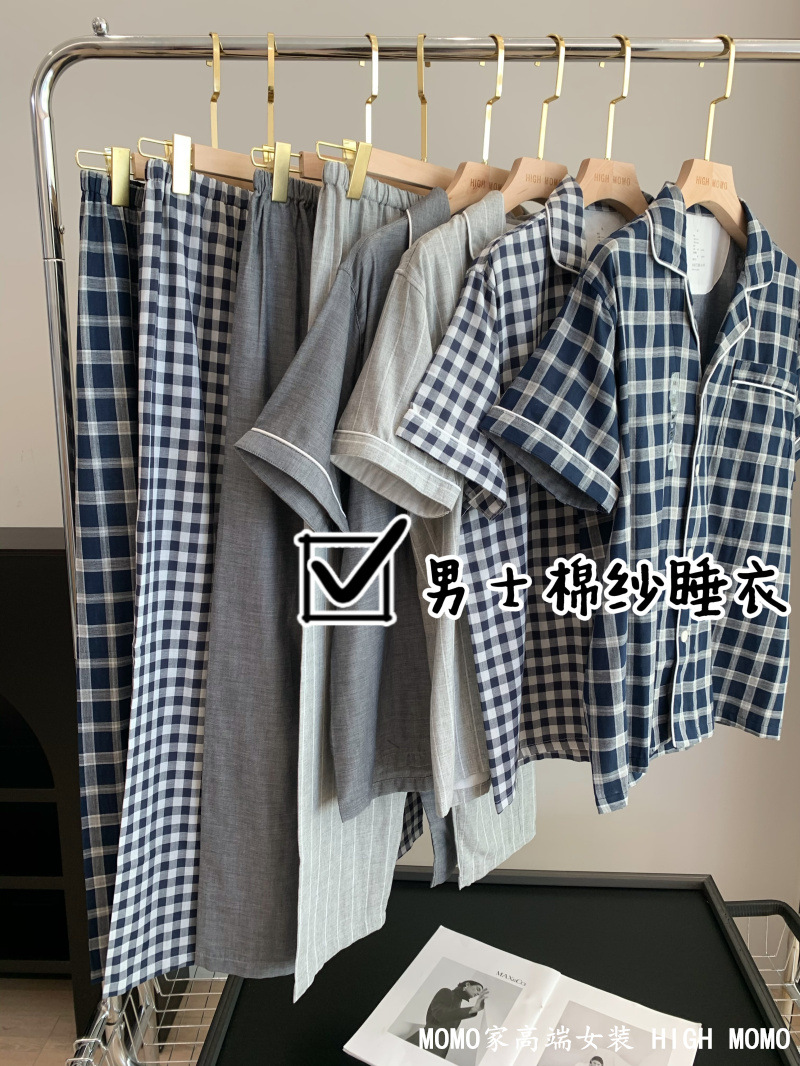 双层纱原面料 情侣款经典全棉双层纱无侧缝家居服套装