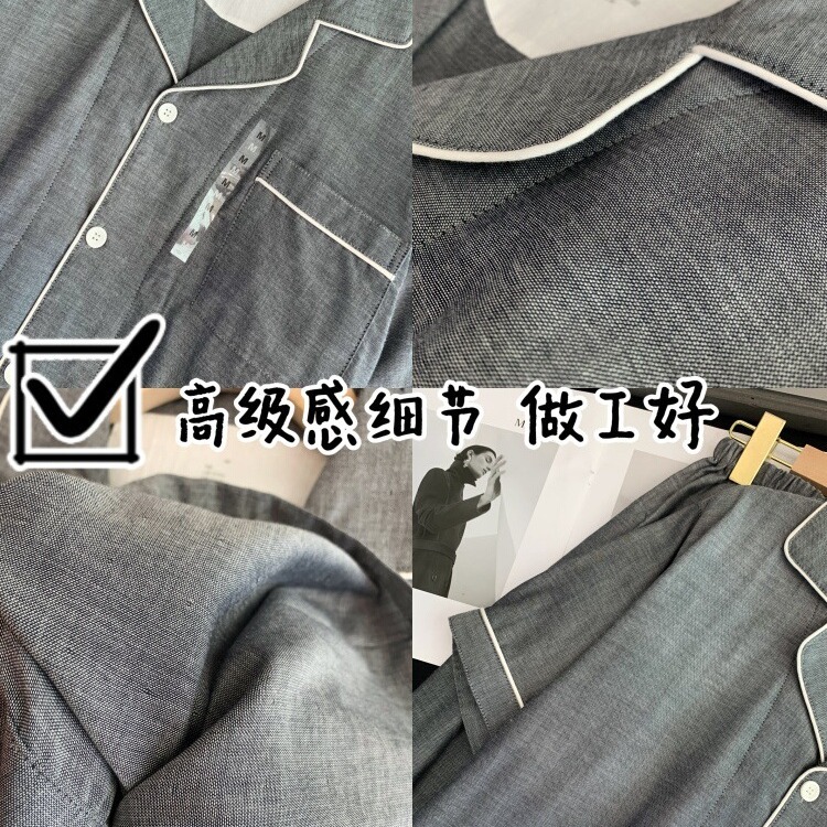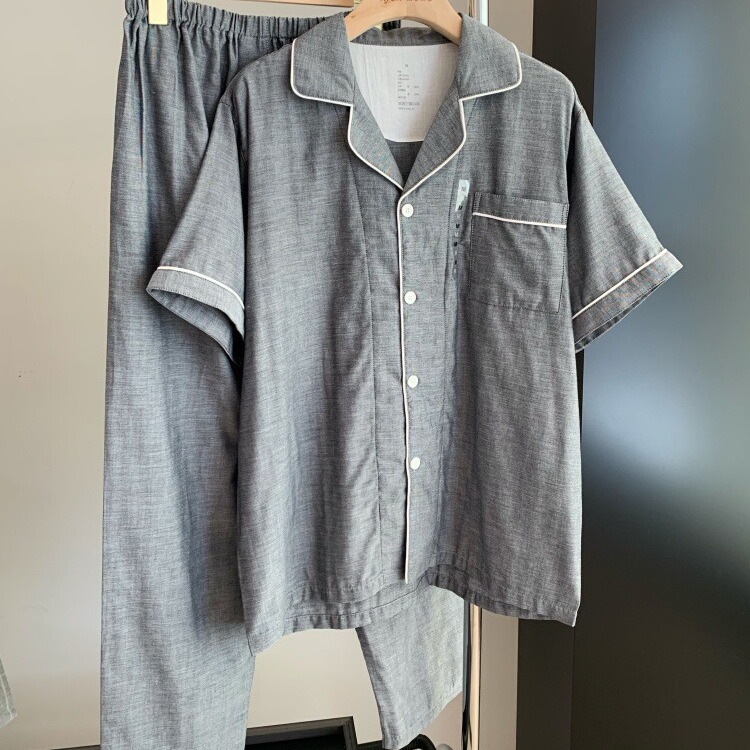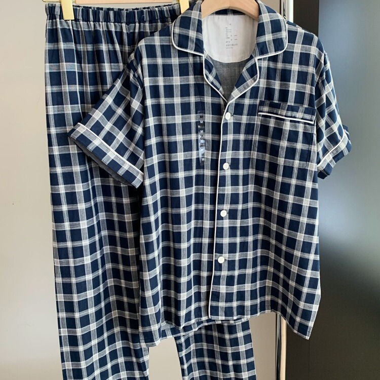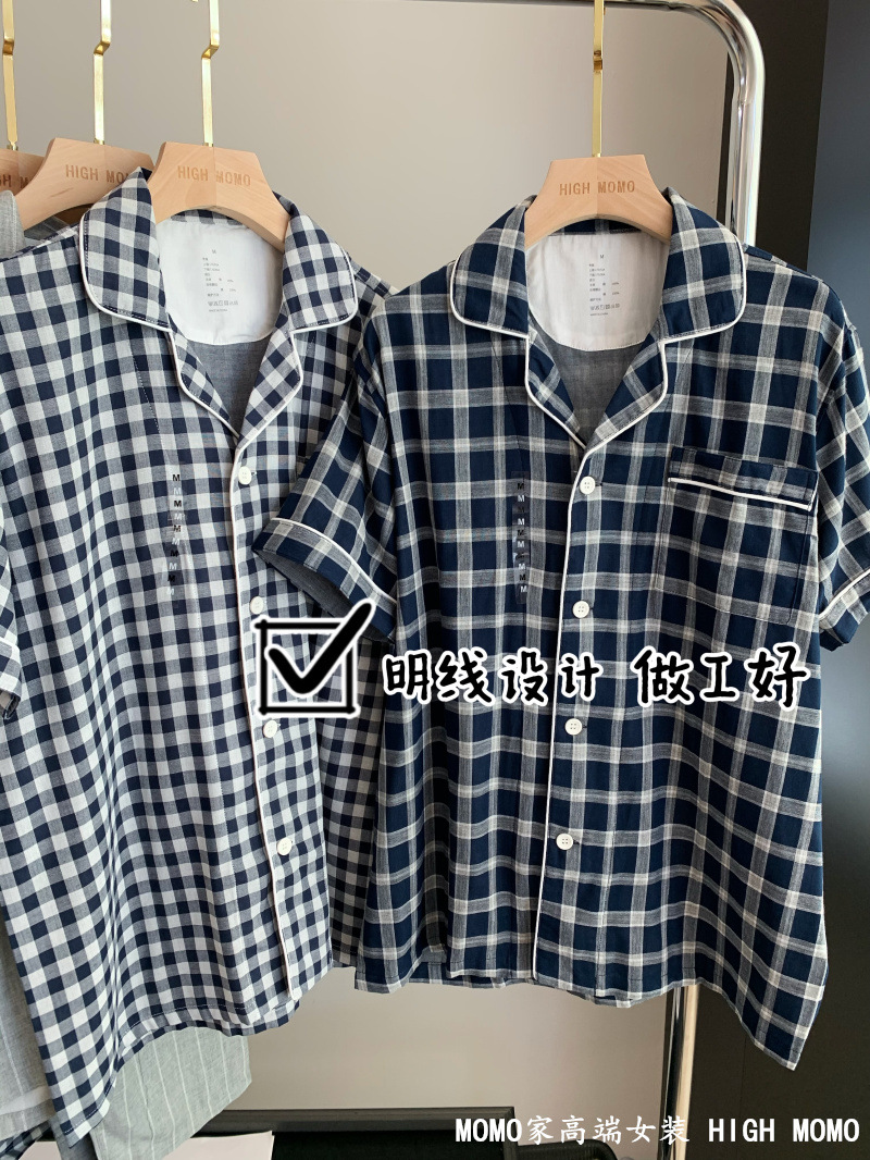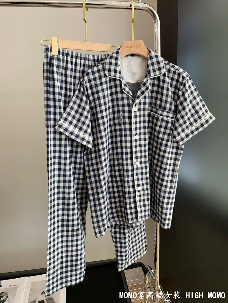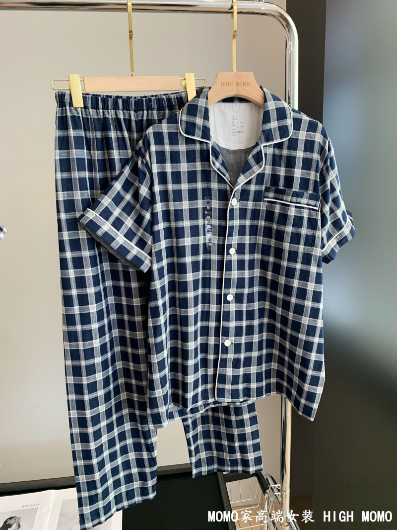 双层纱原面料 情侣款经典全棉双层纱无侧缝家居服套装
