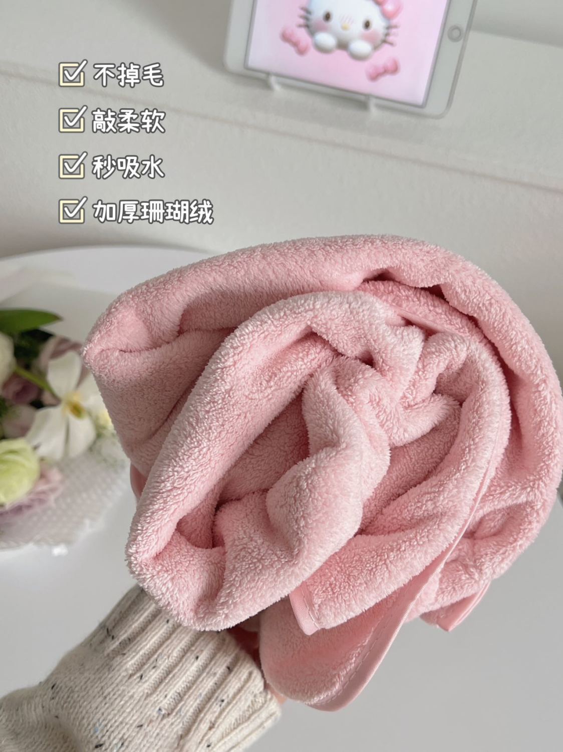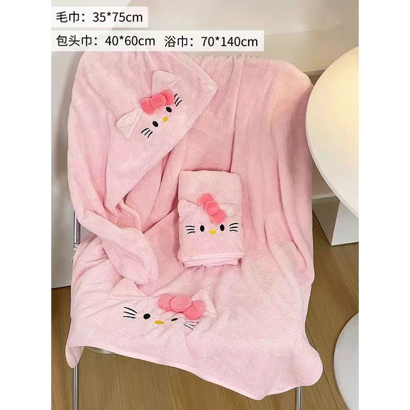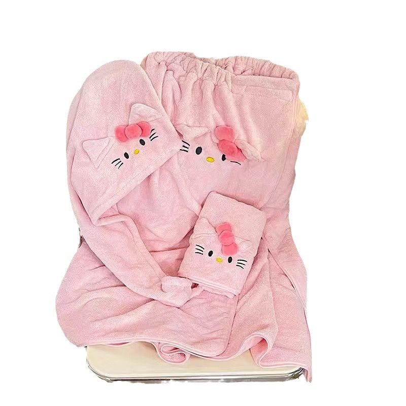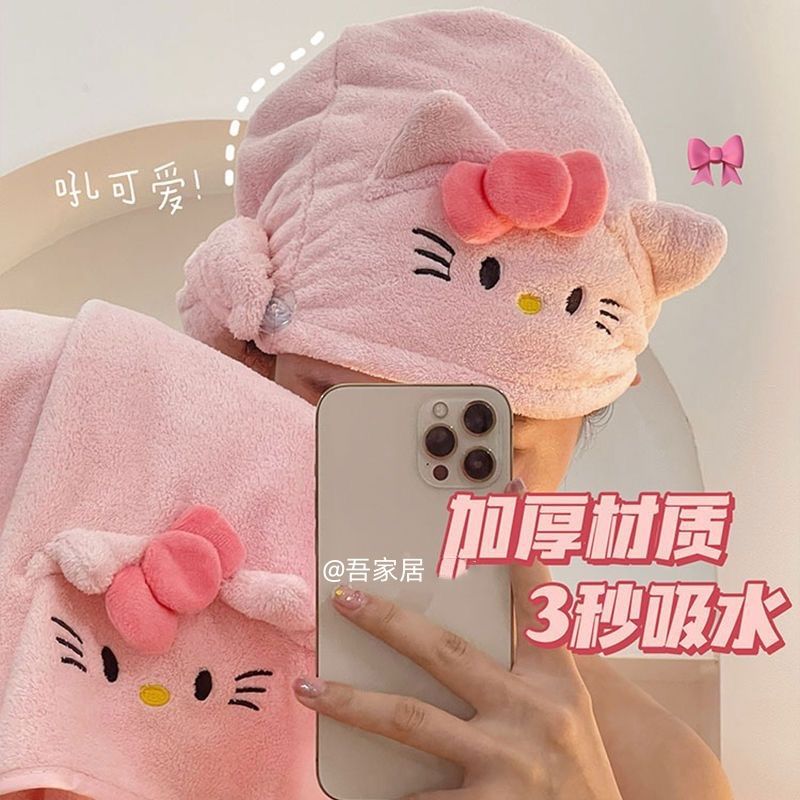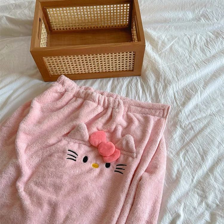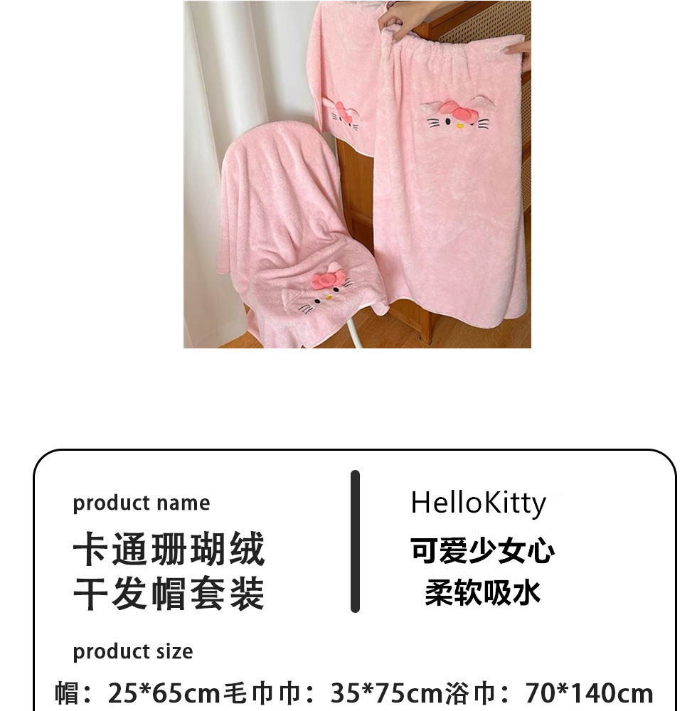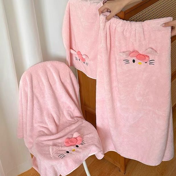 헬로 키티 헤어 말린 모자 귀여운 소녀 목욕 스커트 랩 수건 학생 기숙사 목욕 타월 산호 양털 수건 목욕 타월