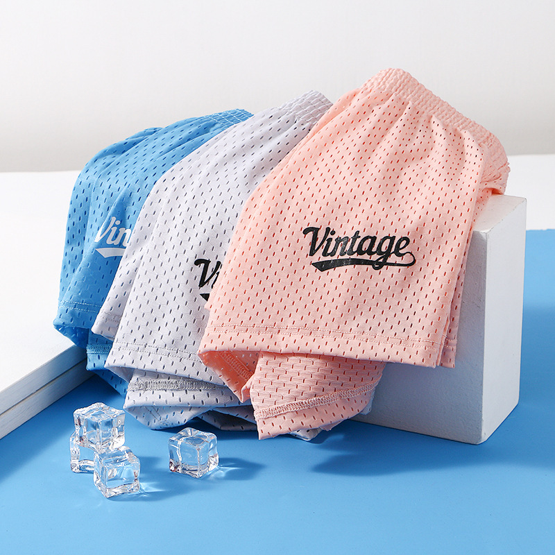 알로 바지 남자 속옷 중간 허리 아이스 실크 속옷 여름 복서 통기성 메쉬 초박형 빠른 건조 스포츠 반바지 파자마 바지