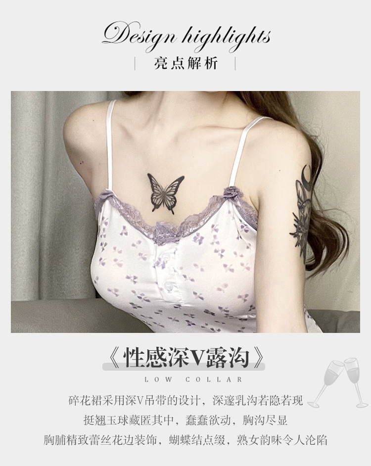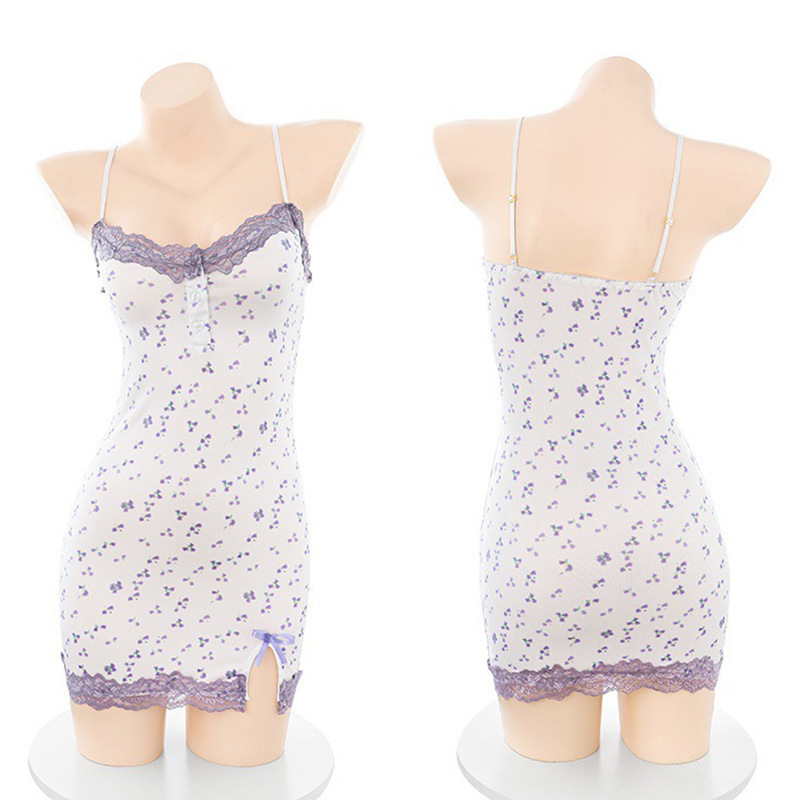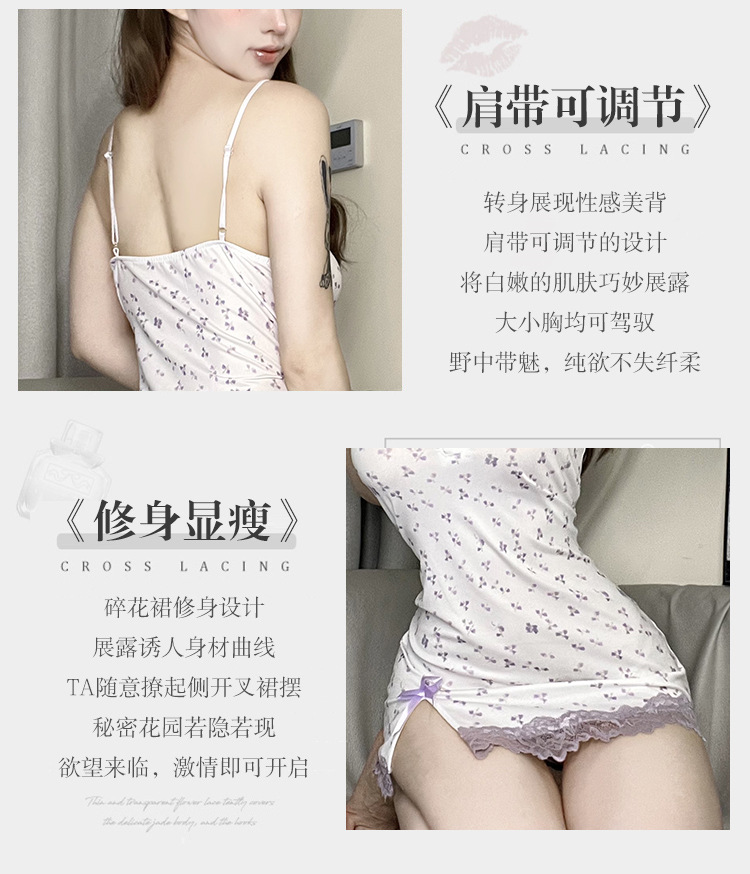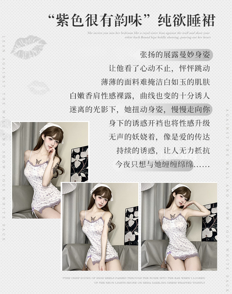 섹시한 란제리 여성 가방 엉덩이 순수한 섹스 섹시한 유혹 소녀의 나이트 드레스 보라색 레이스 슬링 꽃 원피스