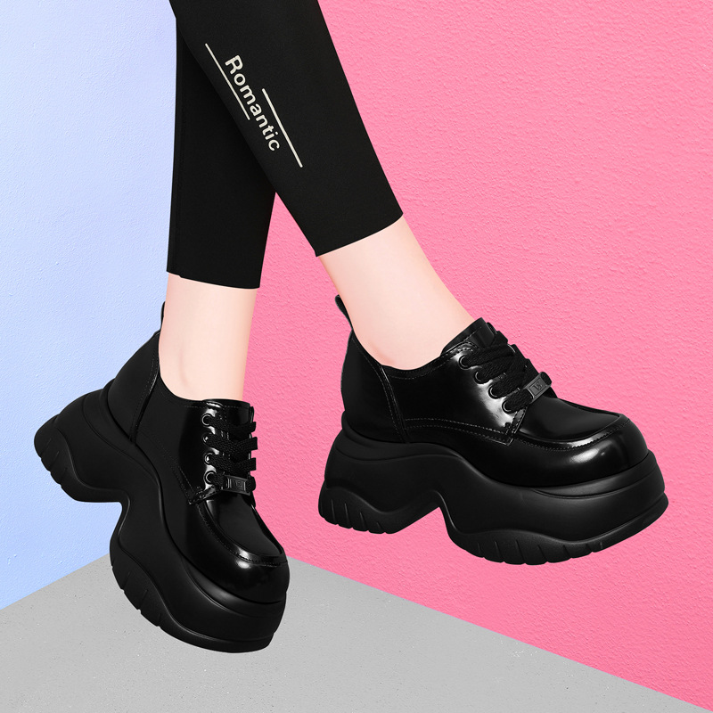 여성을위한 두꺼운 밑창 로퍼 2024 가을 새로운 스타일 키가 큰 여성 신발 세련된 플랫폼 다용도 검은 영국 작은 가죽 신발