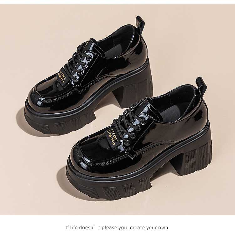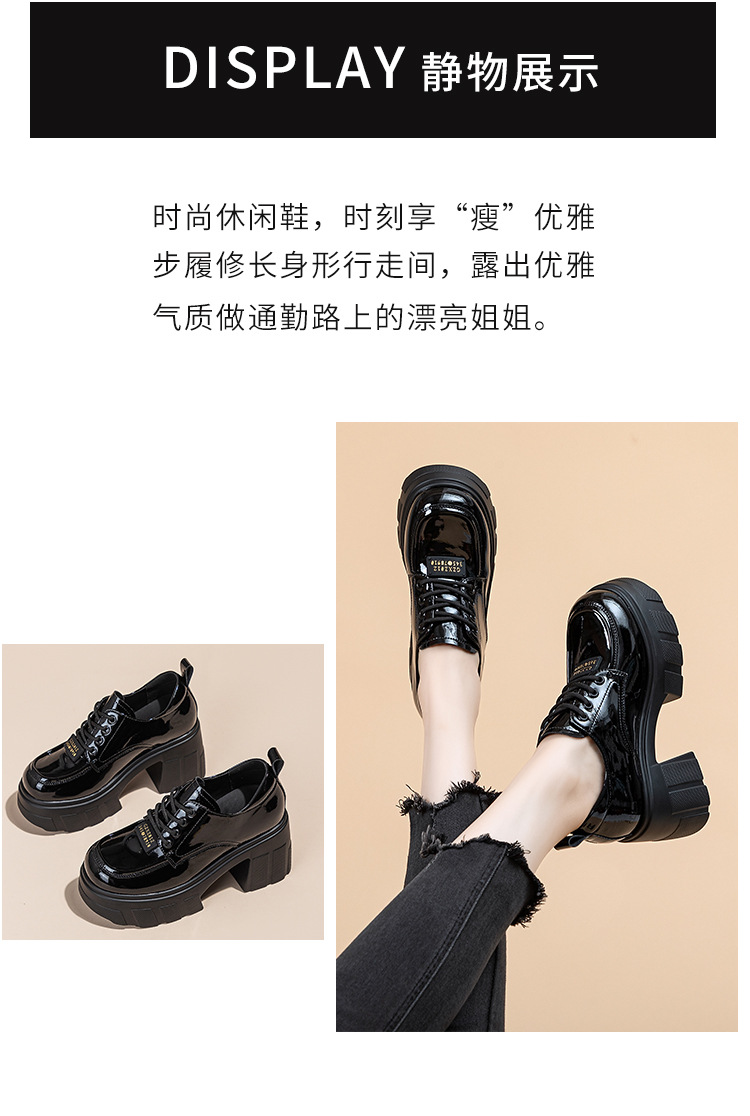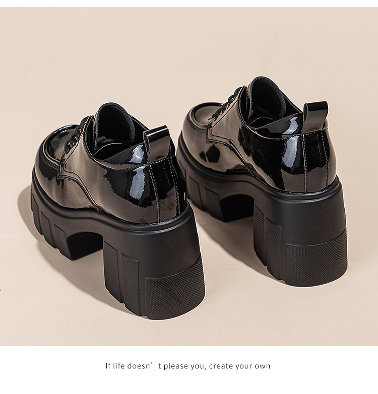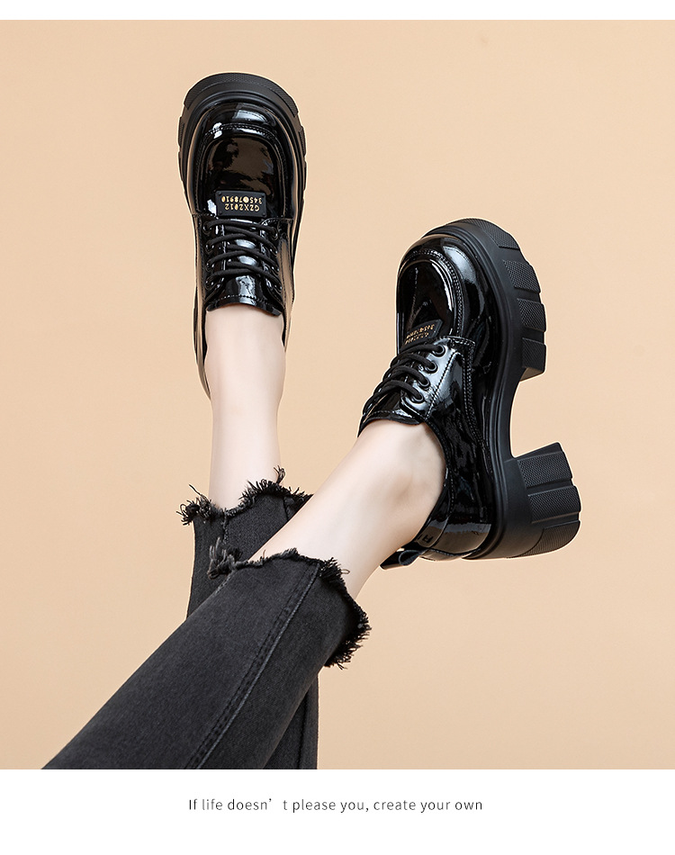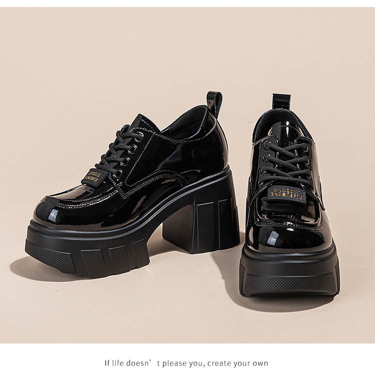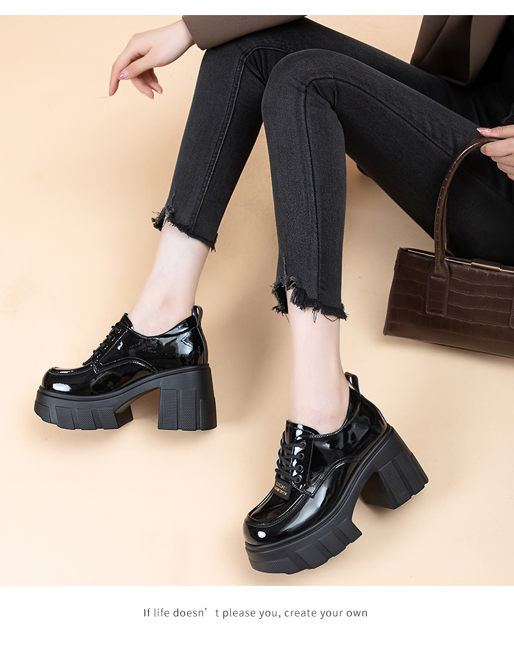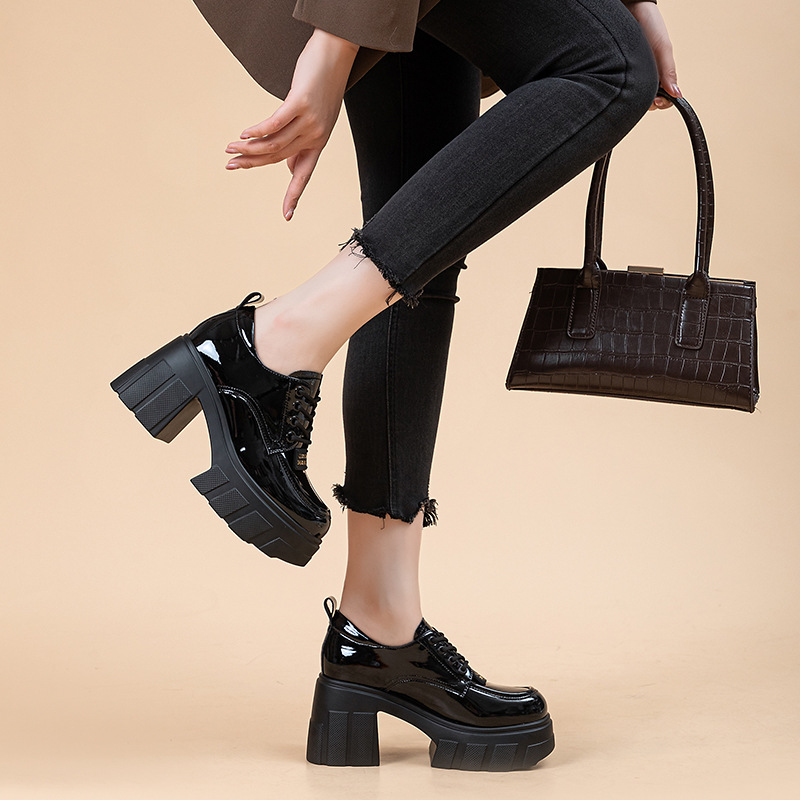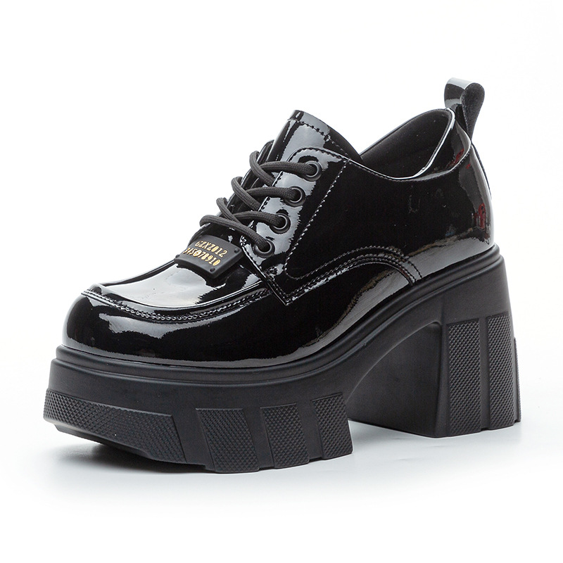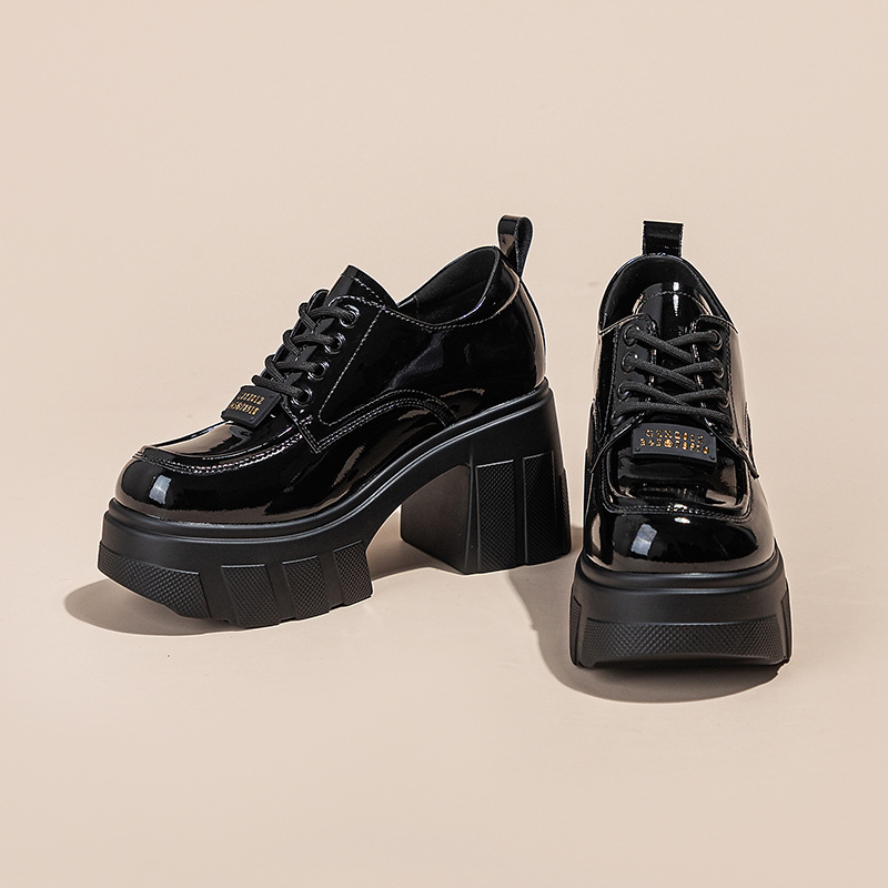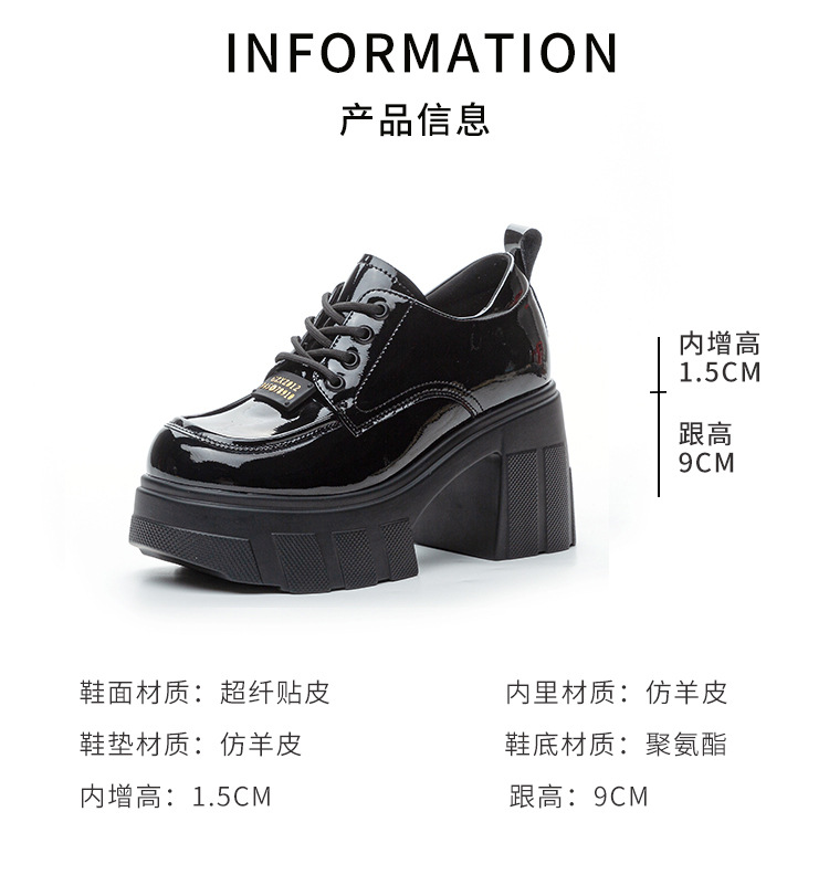 내부 높이 증가 로퍼 여성의 작은 새로운 하이힐 블랙 두꺼운 밑창 가죽 신발 두꺼운 힐 레이스 업 영국 스타일 올매치
