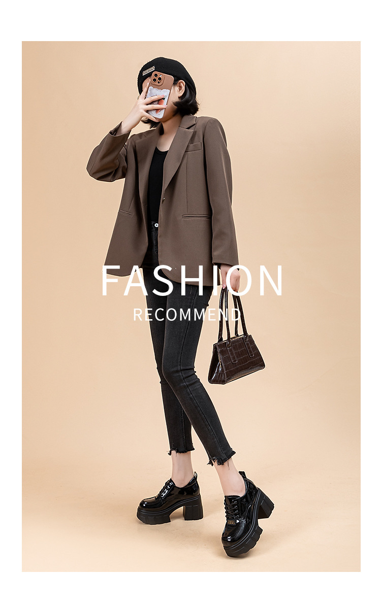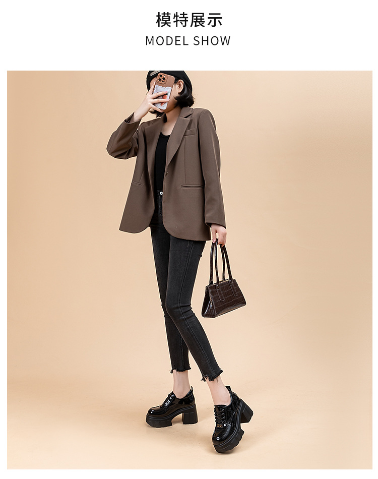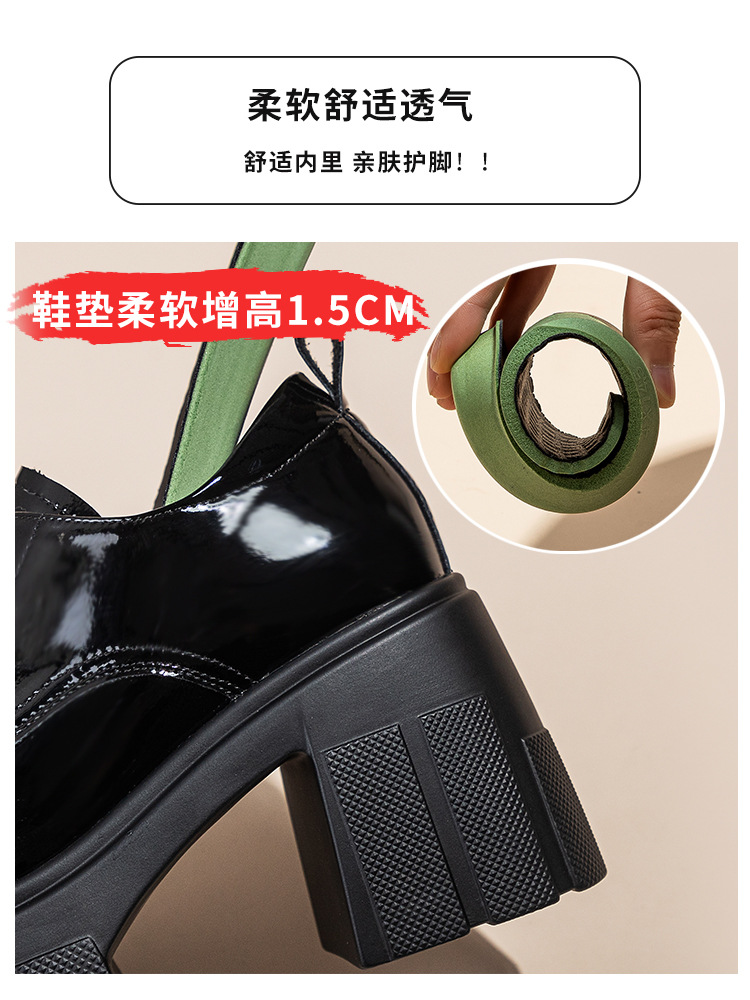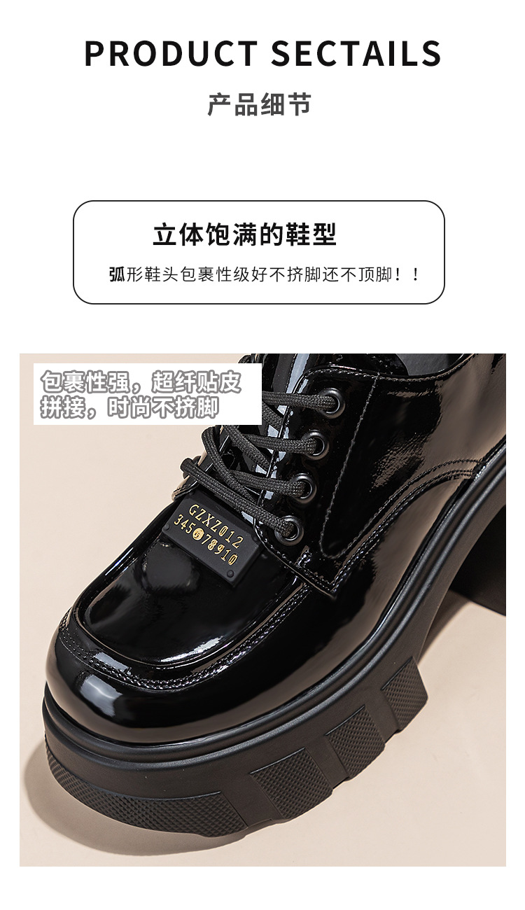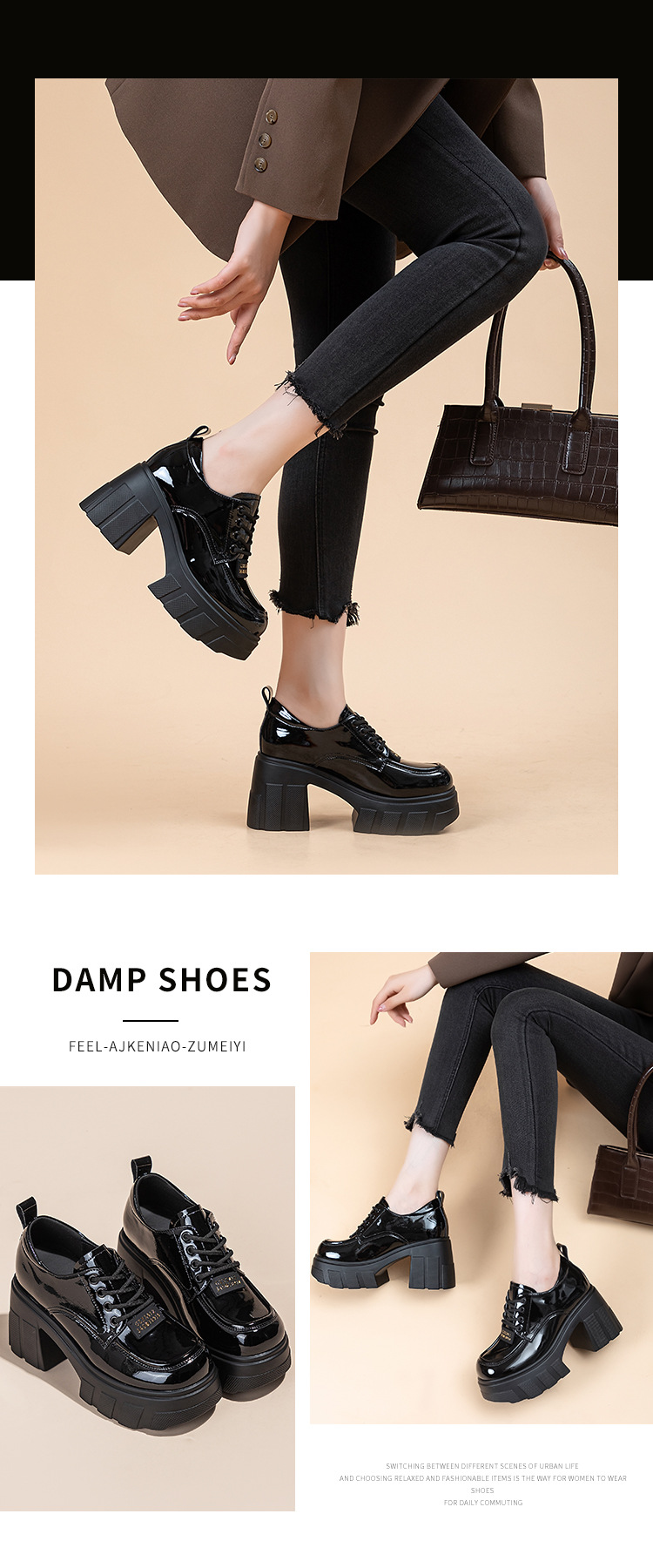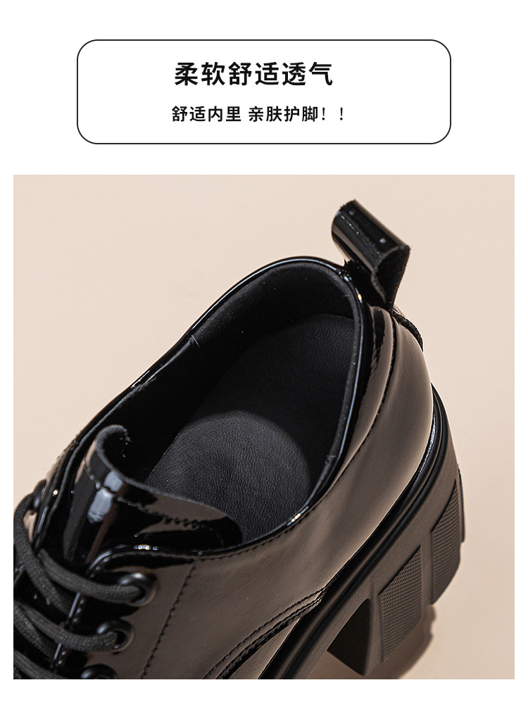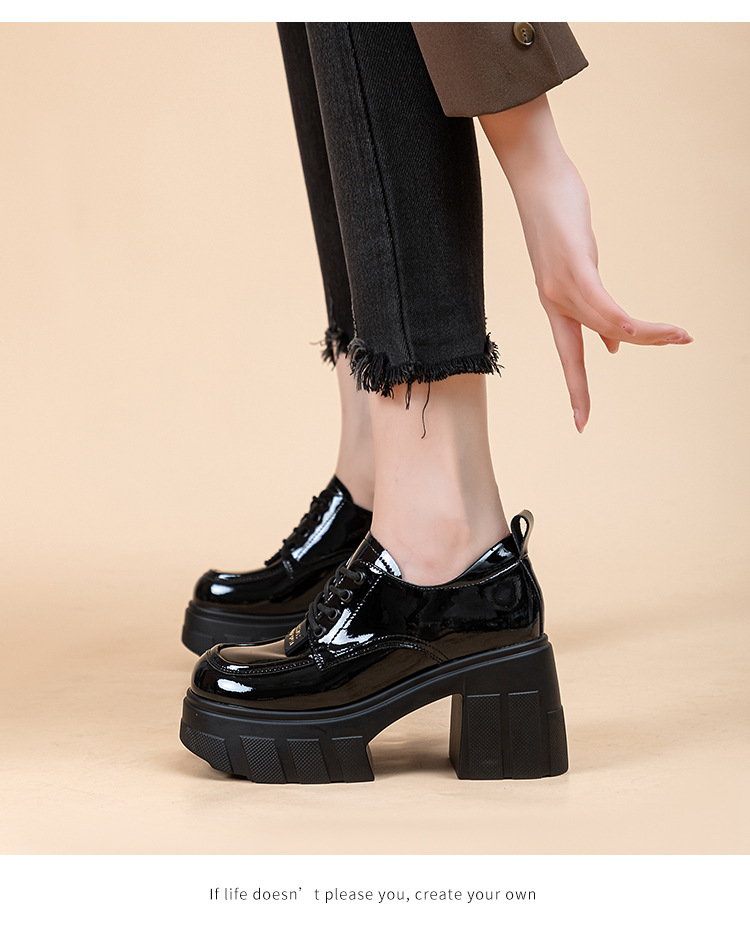 내부 높이 증가 로퍼 여성의 작은 새로운 하이힐 블랙 두꺼운 밑창 가죽 신발 두꺼운 힐 레이스 업 영국 스타일 올매치