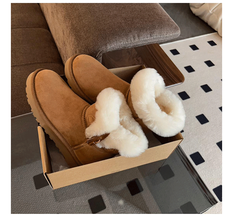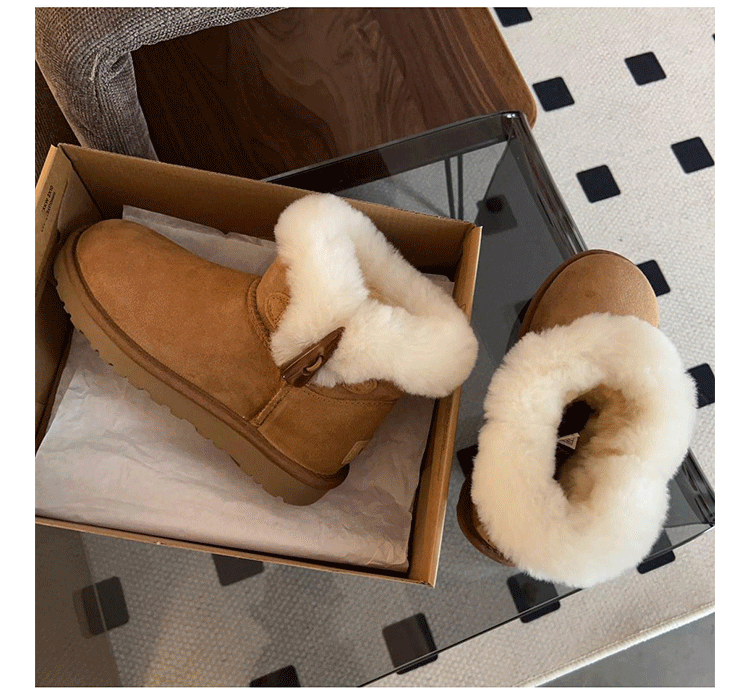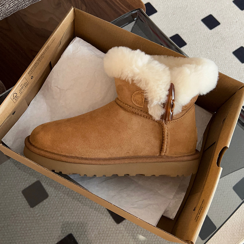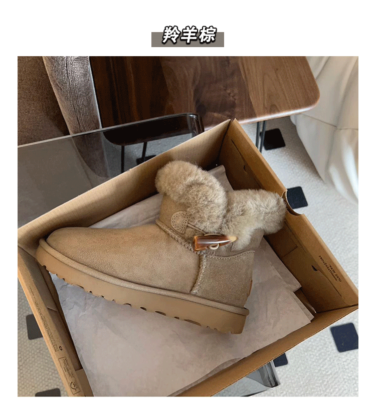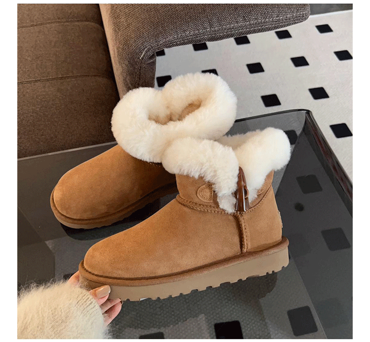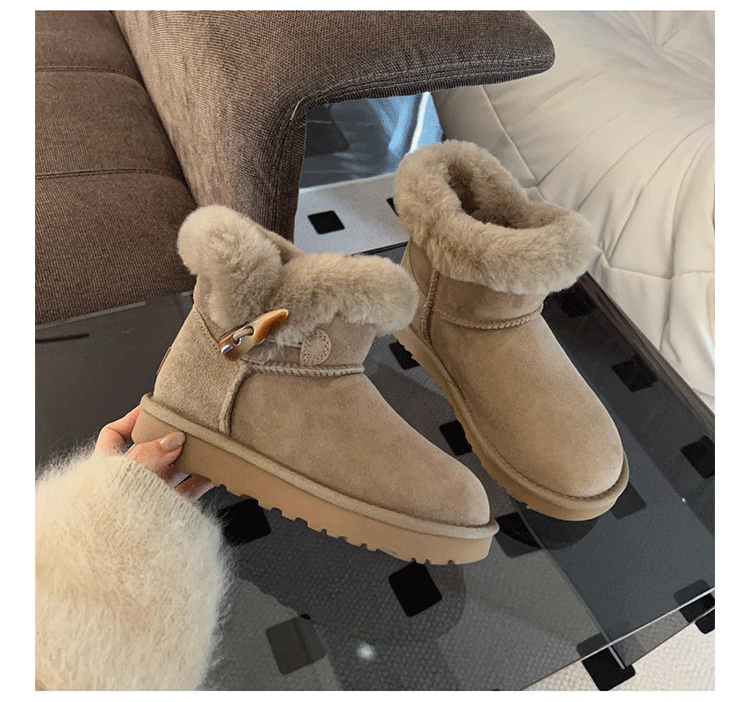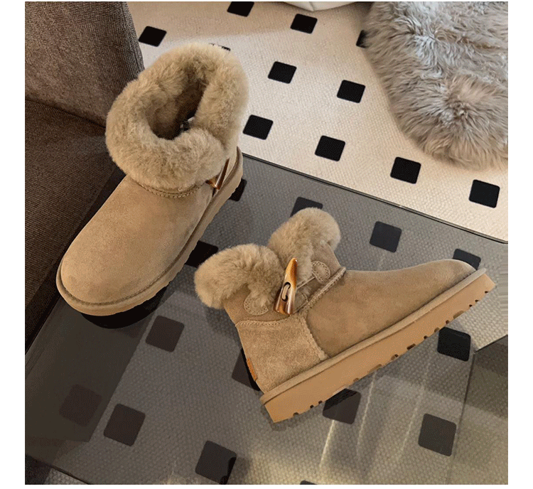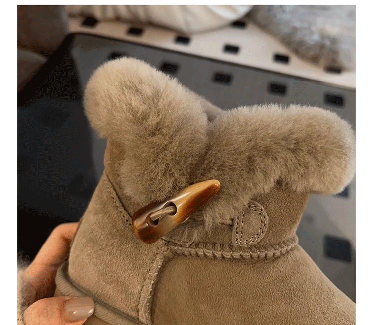 여성용 스노우 부츠 2025 새로운 겨울 올인원 하이힐 혼 버튼 짧은 부츠 면화 미끄럼 방지 따뜻하고 두꺼운