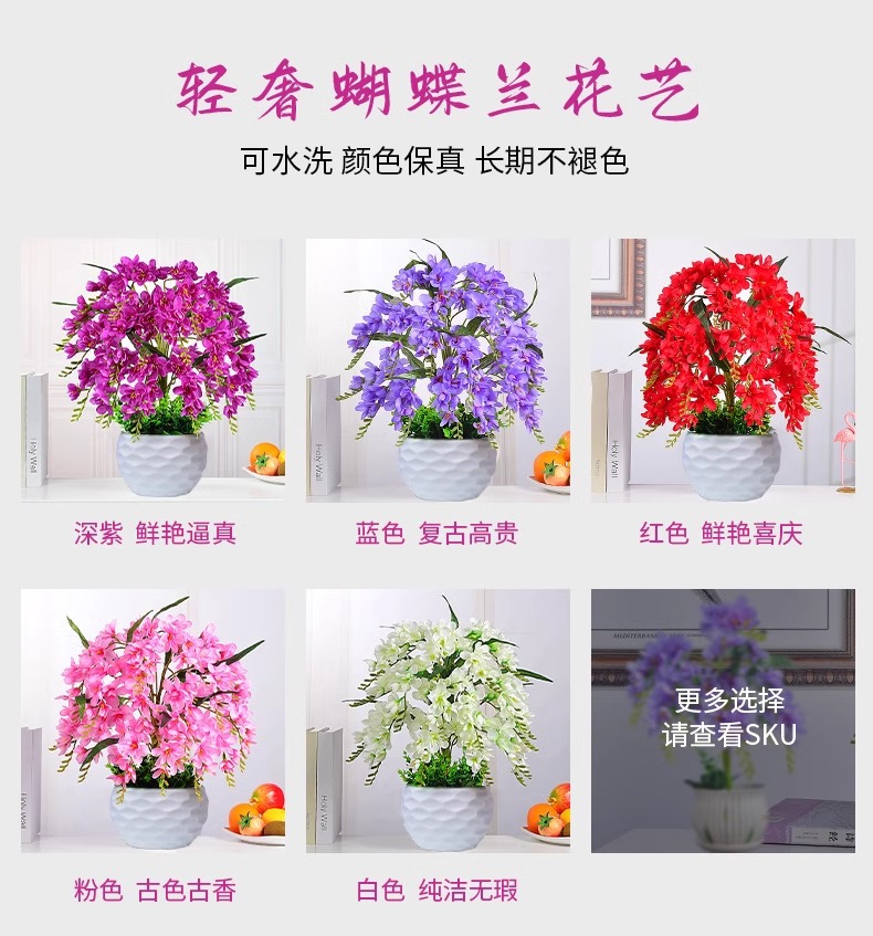 난초 조화, 정리 세일, 가짜 꽃 장식, 거실 식탁 꽃, 녹색 식물, 화분 장식